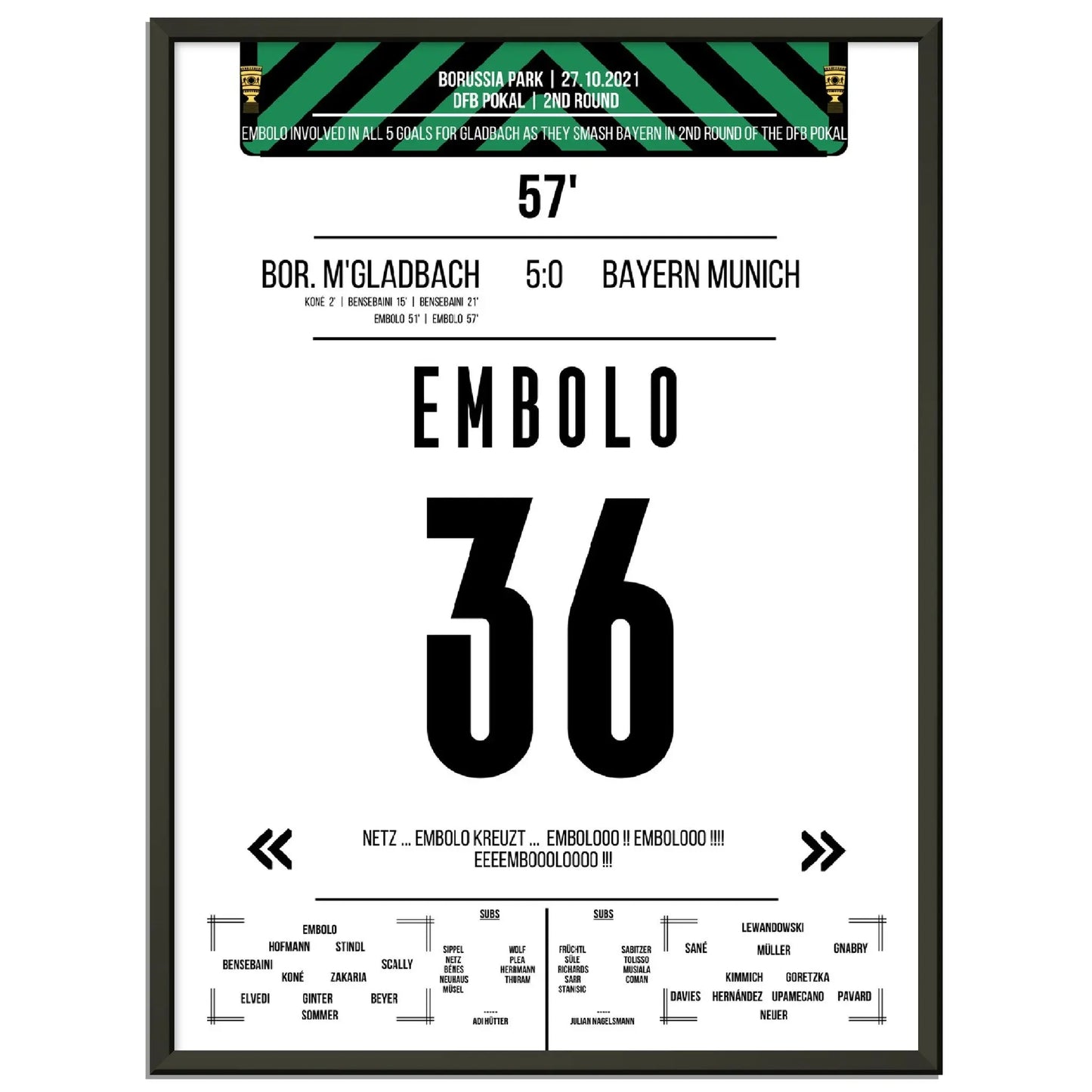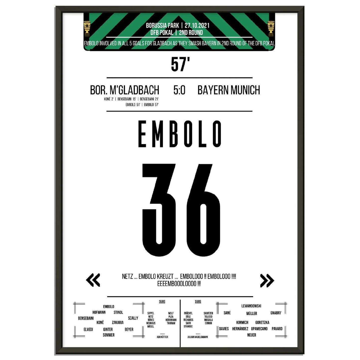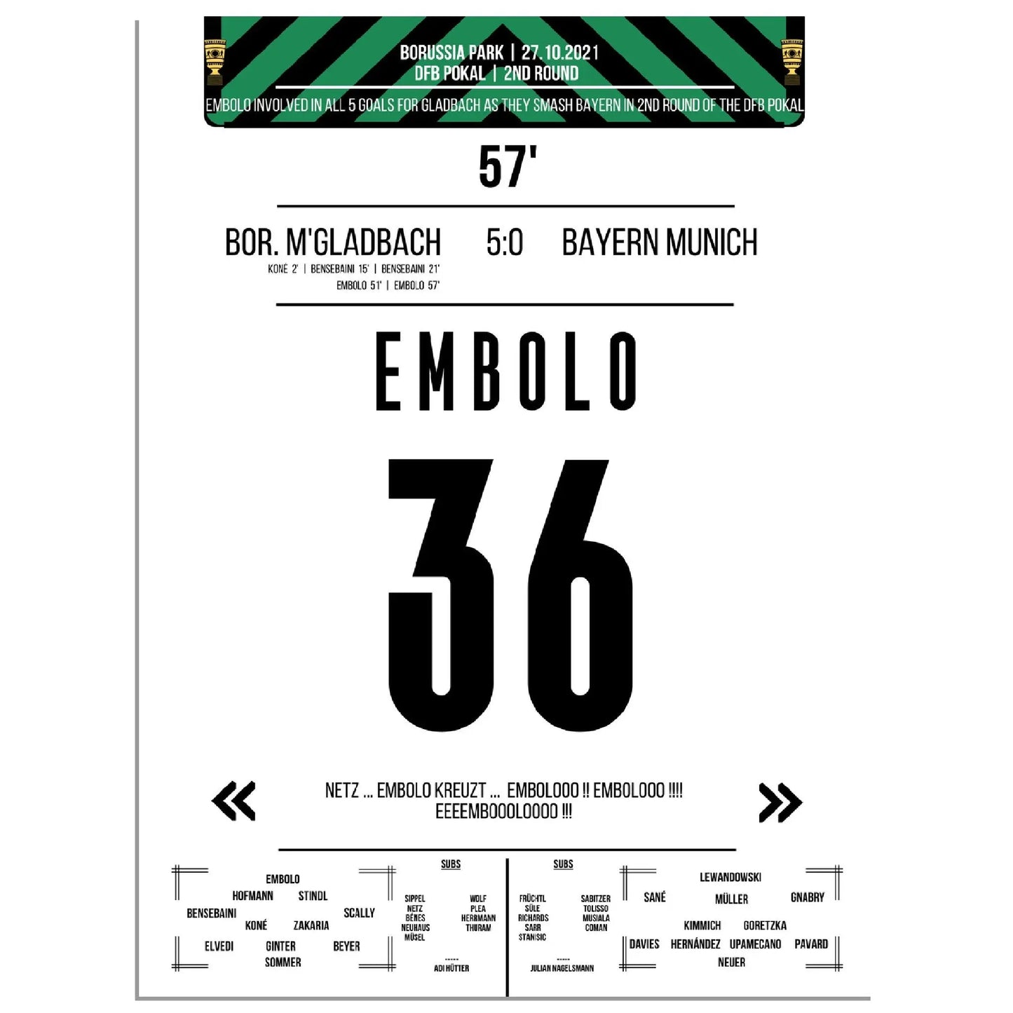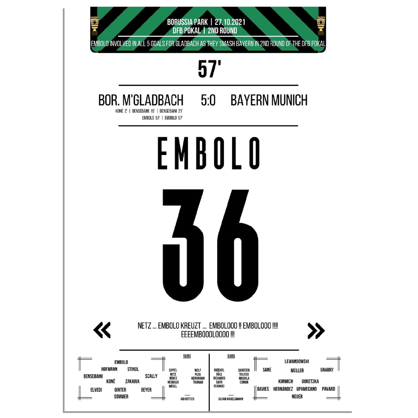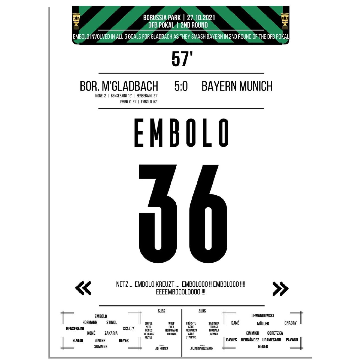 Ein Abend, der in die Vereinsgeschichte eingeht: Gladbach demontiert den Rekordmeister im Pokal mit 5:0. Breel Embolo trifft doppelt und ist Sinnbild einer entfesselten Fohlenelf, die dem Favoriten keine Chance lässt. Ein magischer Abend im Borussia-Park.