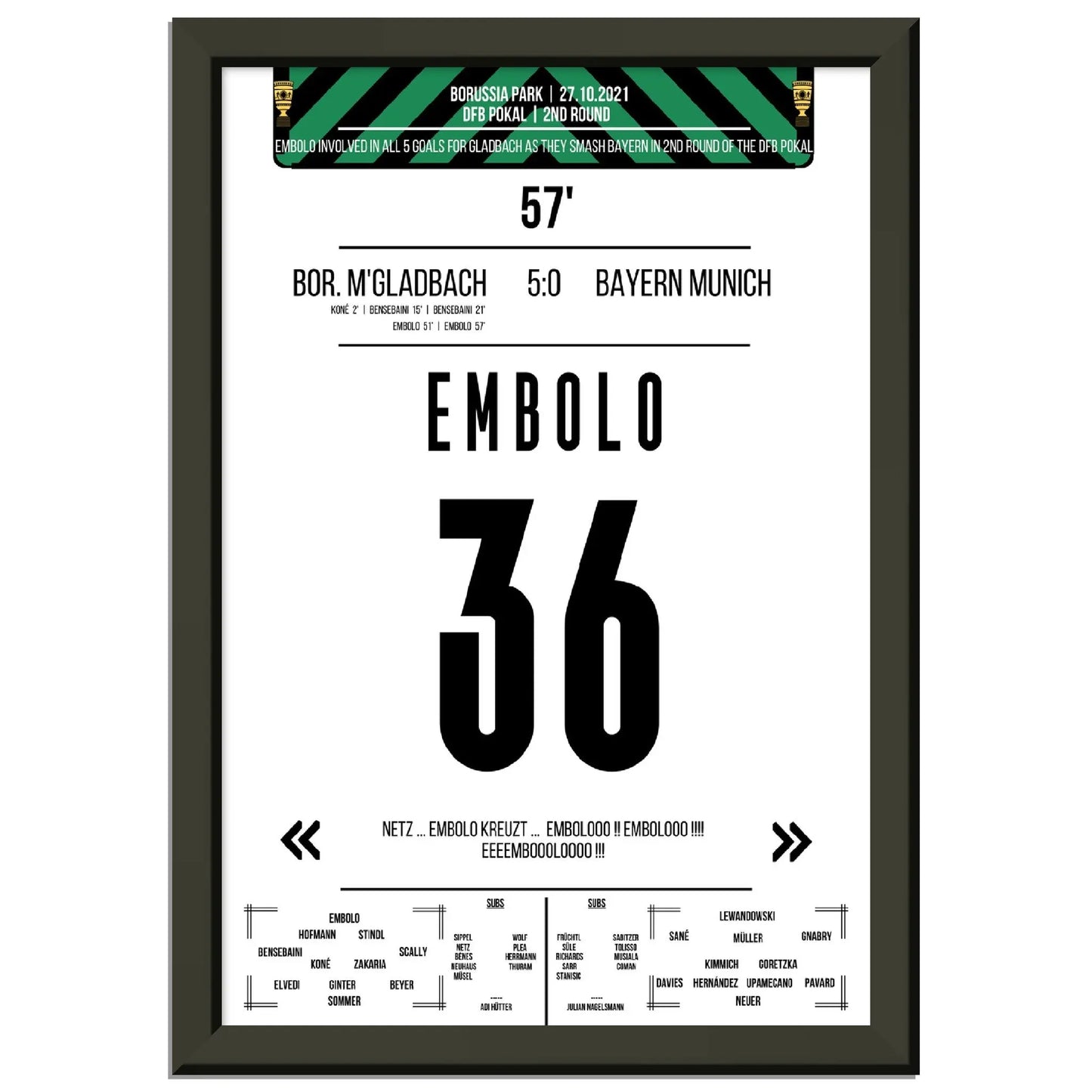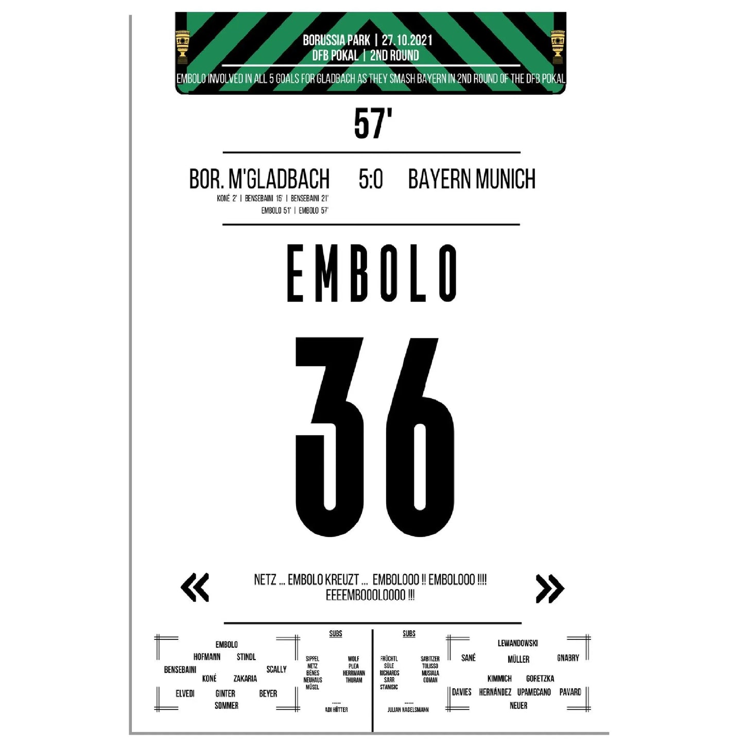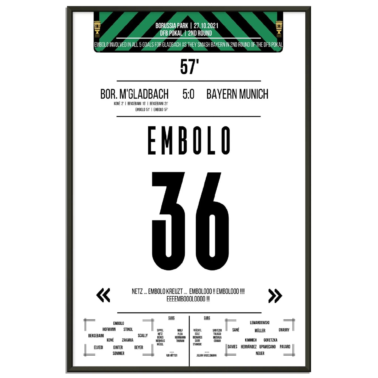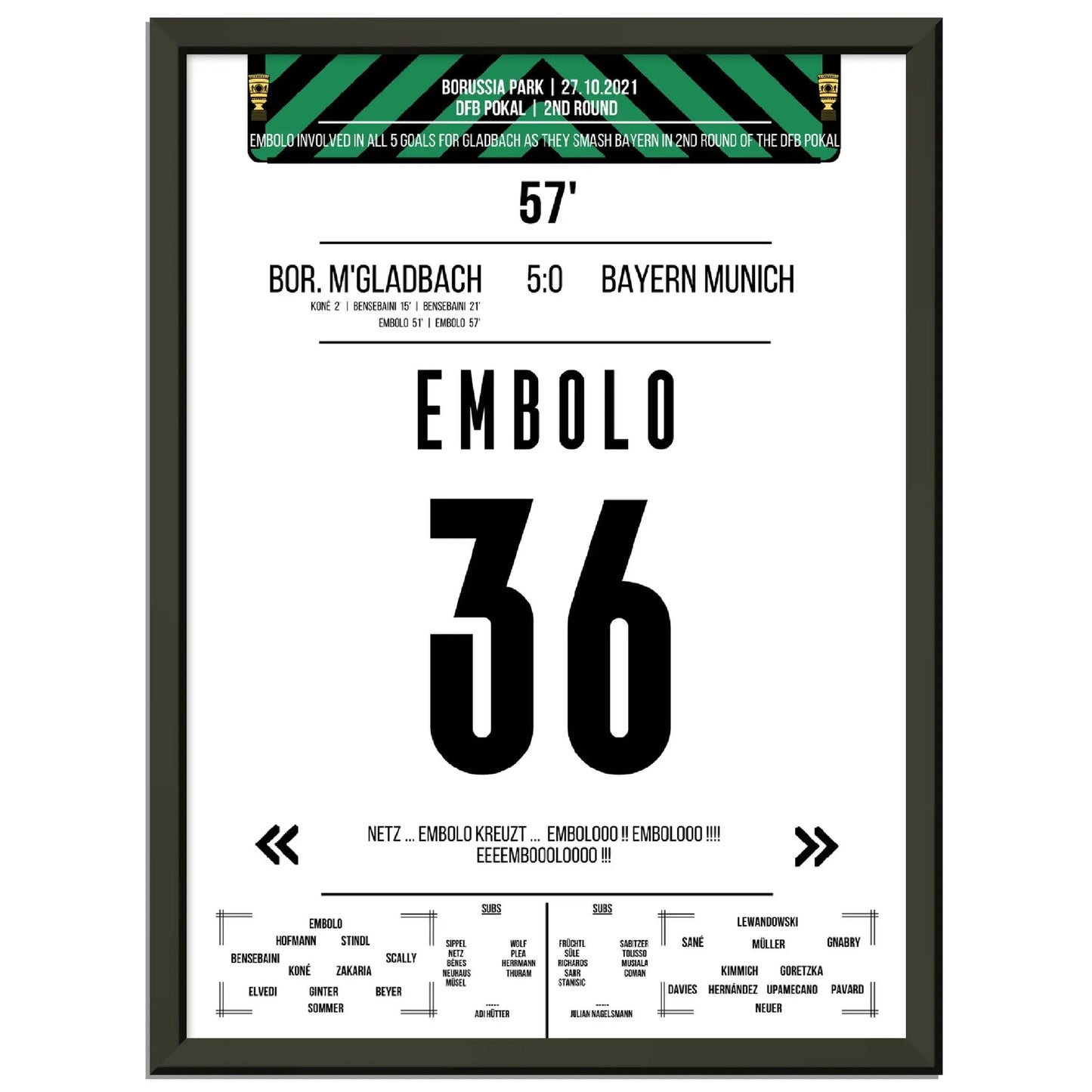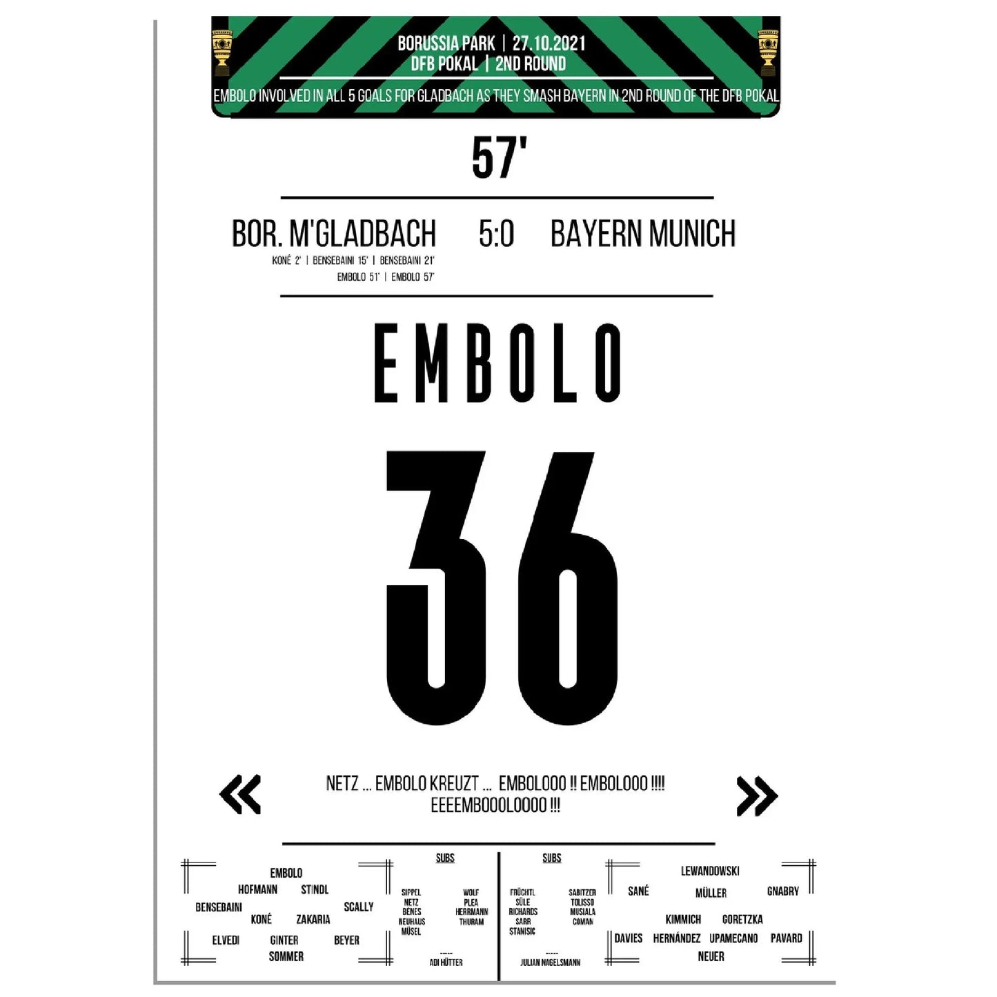Ein Abend, der in die Vereinsgeschichte eingeht: Gladbach demontiert den Rekordmeister im Pokal mit 5:0. Breel Embolo trifft doppelt und ist Sinnbild einer entfesselten Fohlenelf, die dem Favoriten keine Chance lässt. Ein magischer Abend im Borussia-Park.