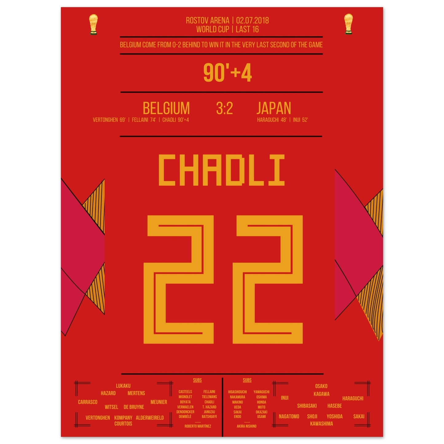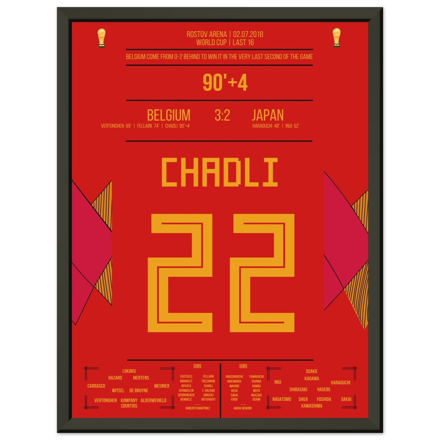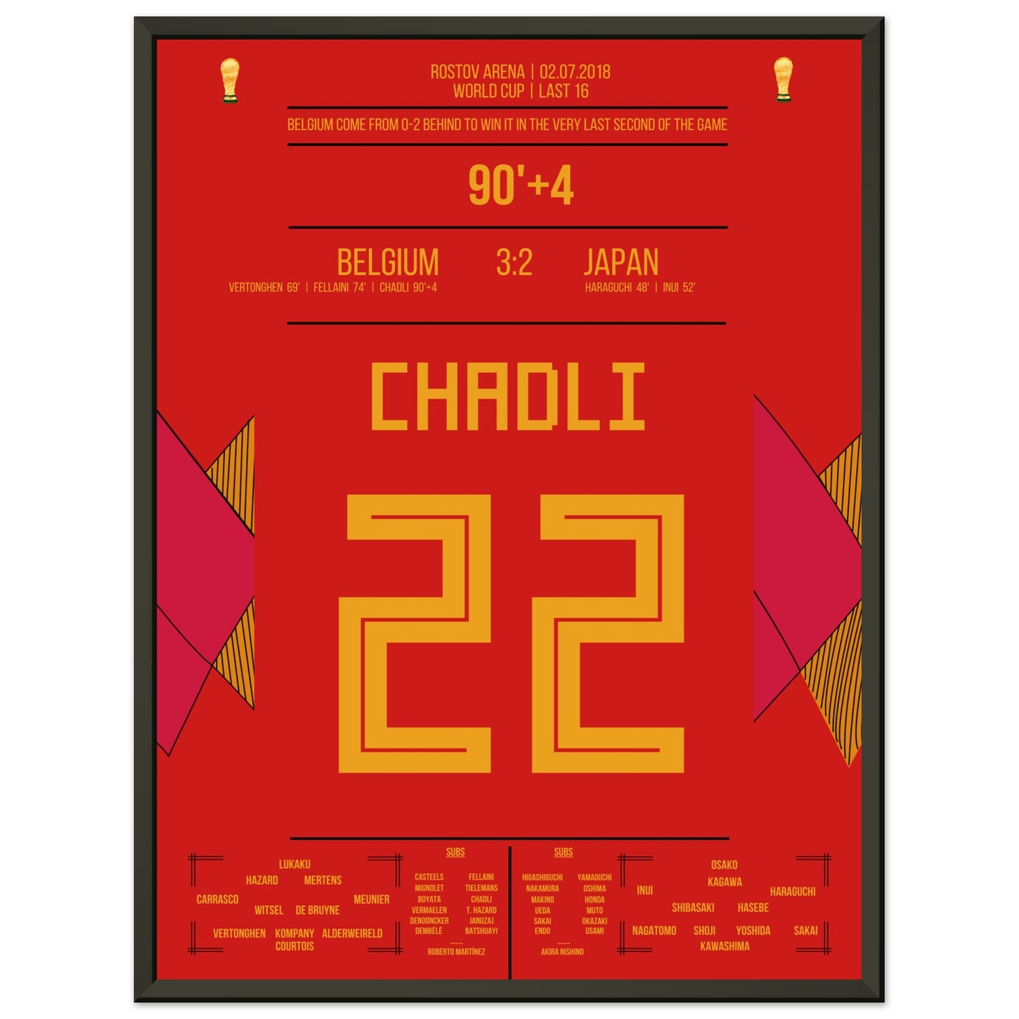 Ein WM-Spiel für die Ewigkeit: Japan führt sensationell 2:0, doch Belgien startet die große Aufholjagd. Vertonghen und Fellaini gleichen aus, bevor Chadli in der 94. Minute nach einem perfekten Konter den Sieg vollendet – das vielleicht schönste Last-Minute-Tor der Turniergeschichte.