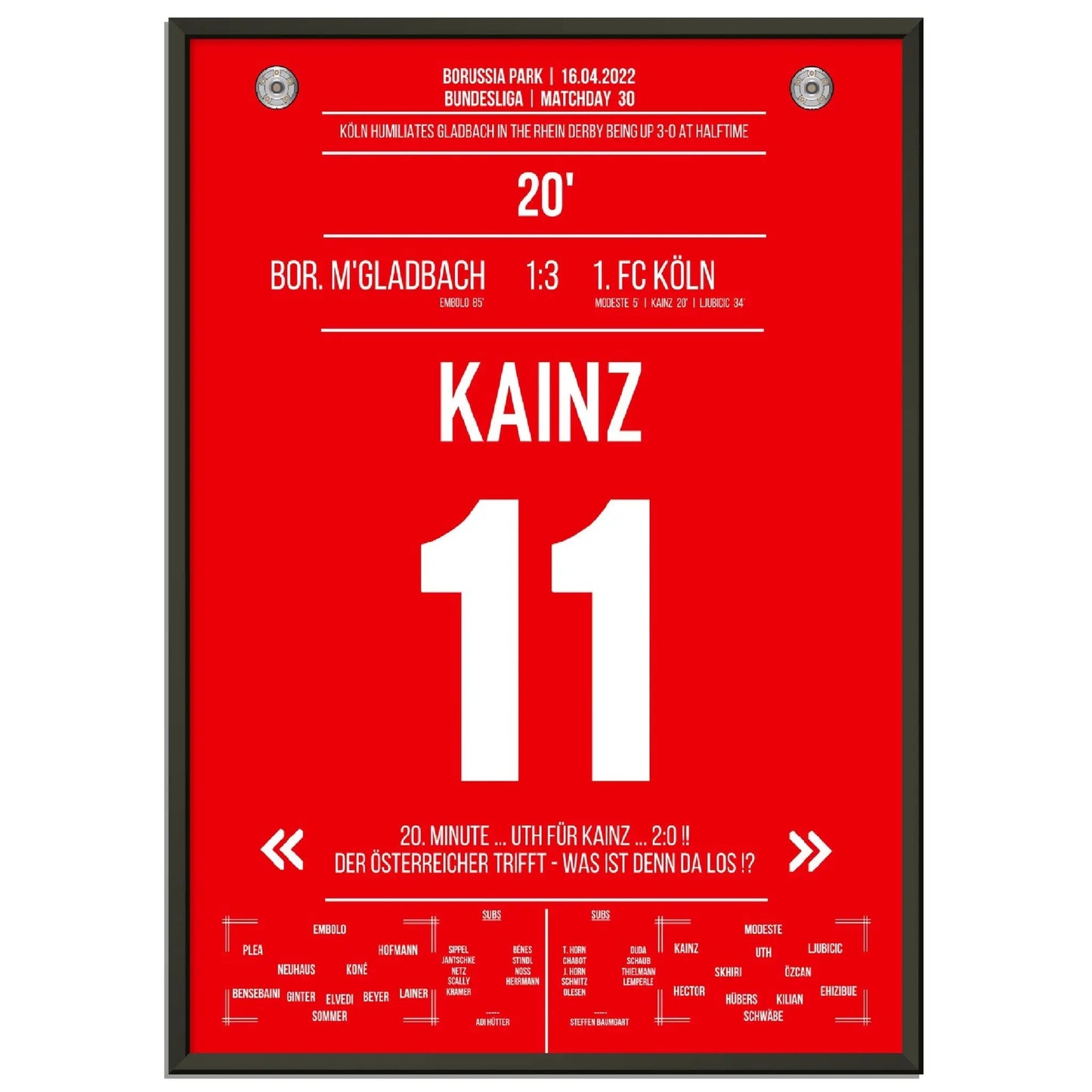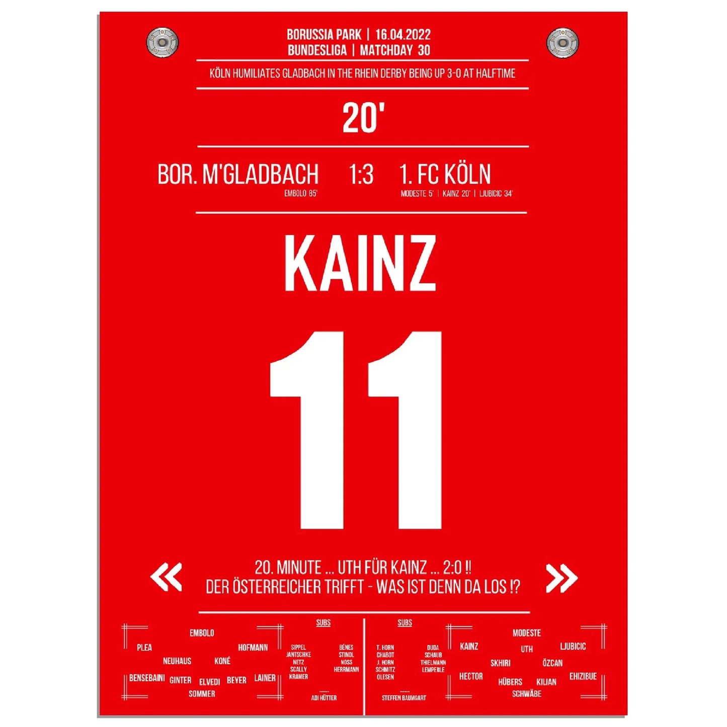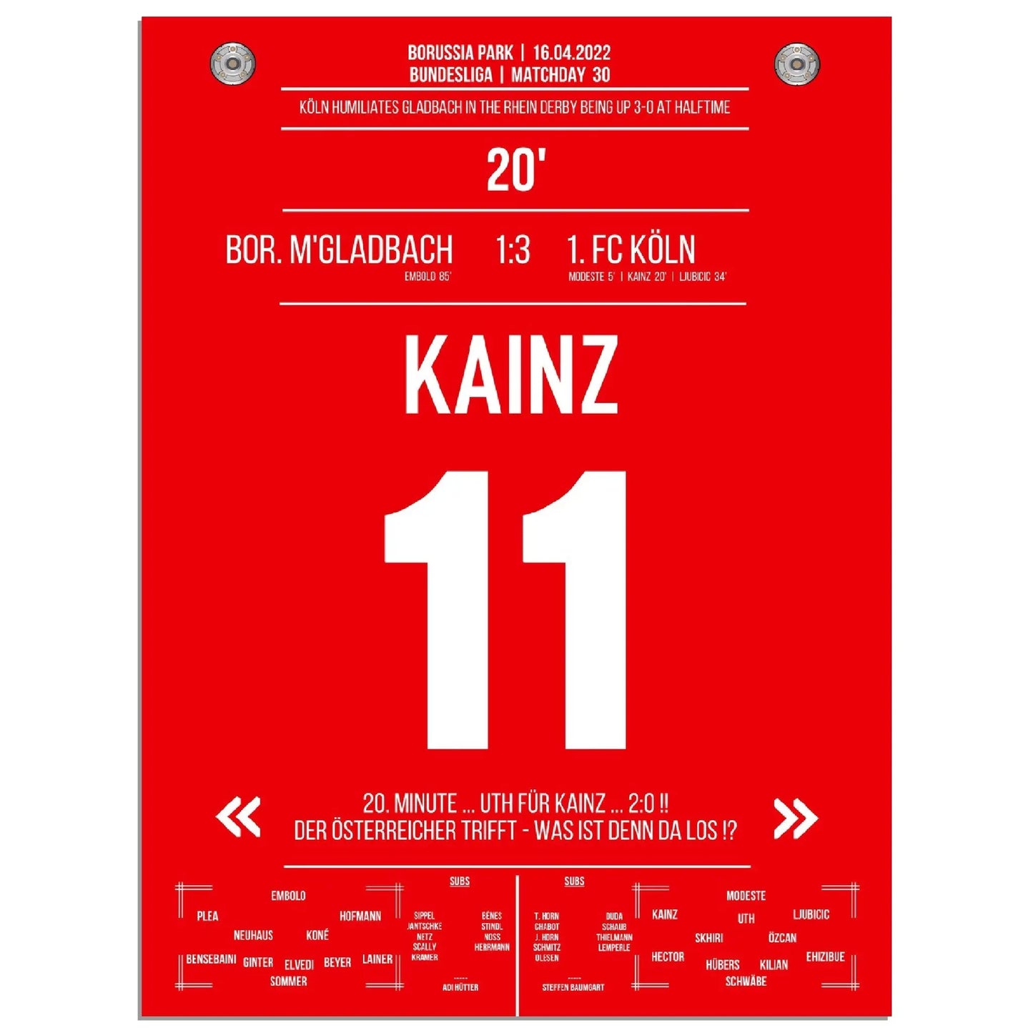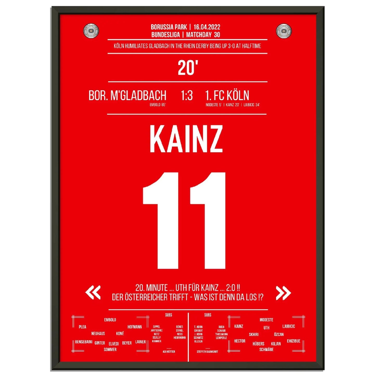 16. April 2022 – Mönchengladbach vs. Köln 1:3: Der FC triumphiert im Derby mit einer leidenschaftlichen Leistung und drei Toren – ein Auswärtssieg, der den Gästeblock zum Beben bringt. Emotion, Rivalität und pure Ekstase. Unser Poster verewigt diesen denkwürdigen Derbysieg in Rot-Weiß.