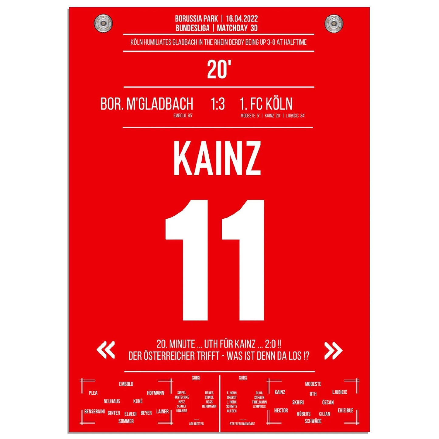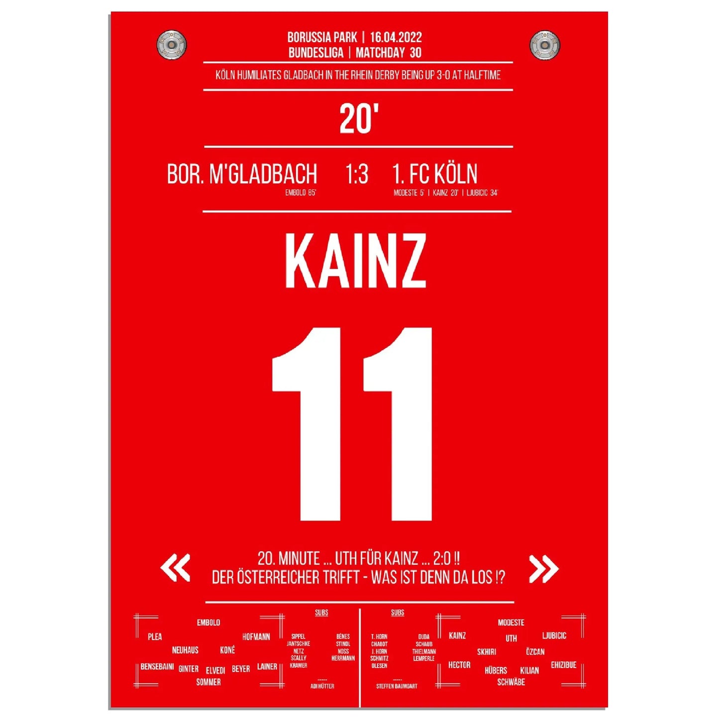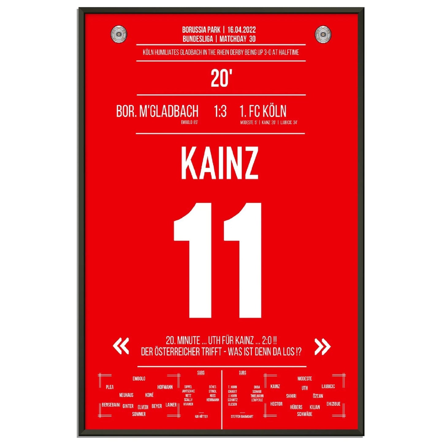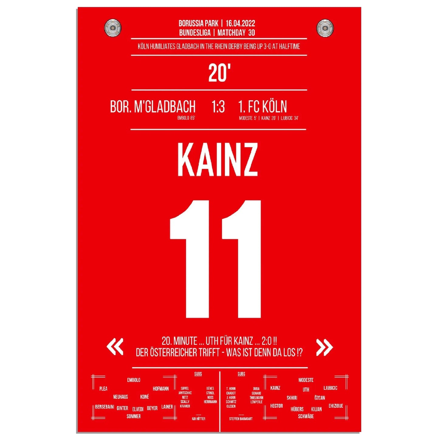 16. April 2022 – Mönchengladbach vs. Köln 1:3: Der FC triumphiert im Derby mit einer leidenschaftlichen Leistung und drei Toren – ein Auswärtssieg, der den Gästeblock zum Beben bringt. Emotion, Rivalität und pure Ekstase. Unser Poster verewigt diesen denkwürdigen Derbysieg in Rot-Weiß.