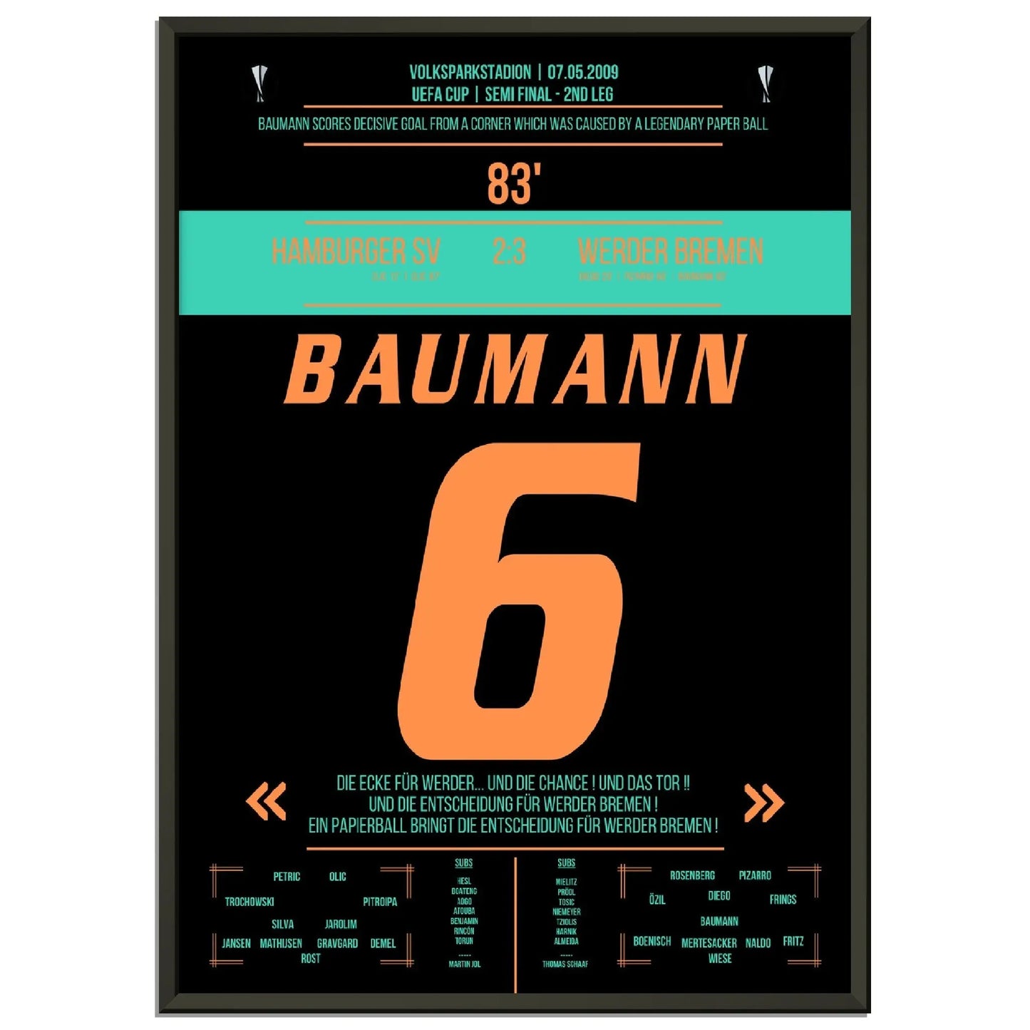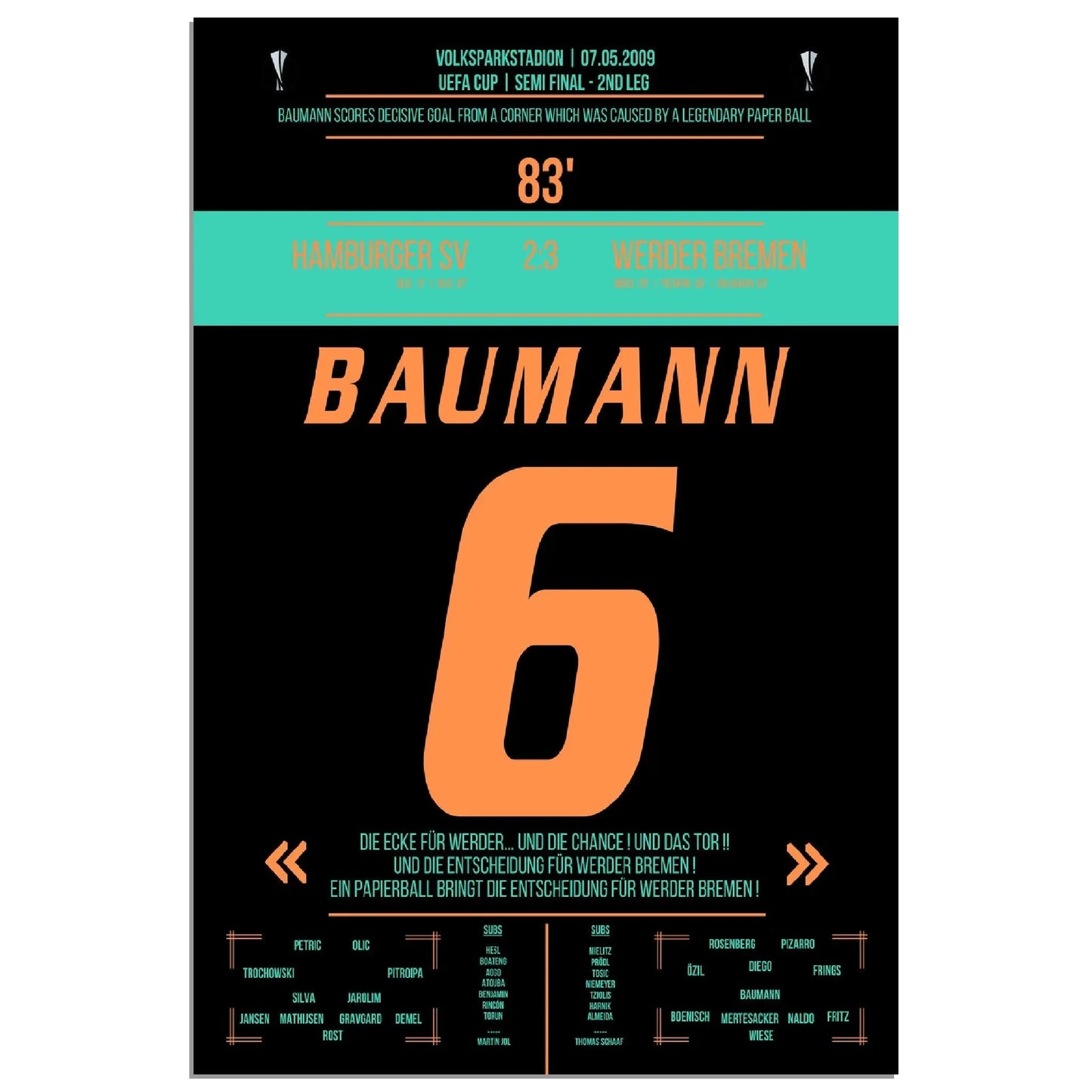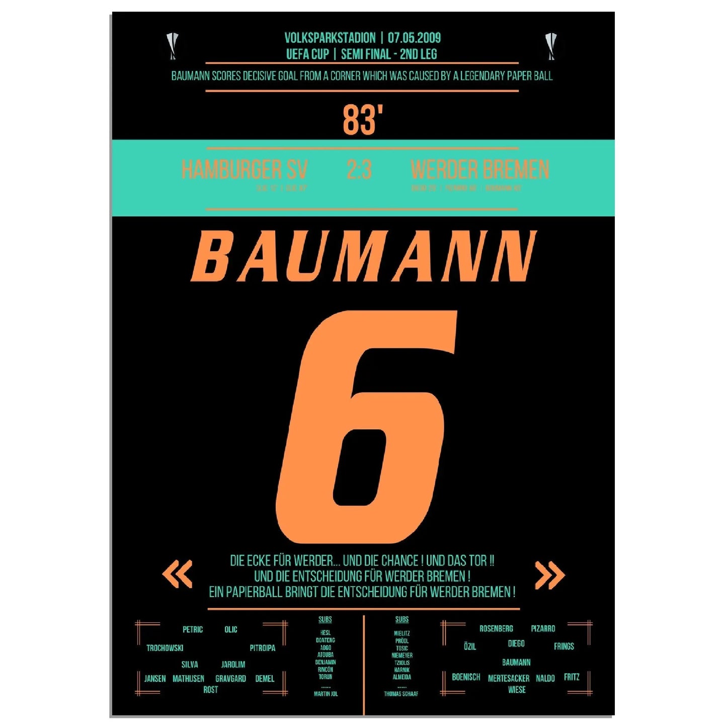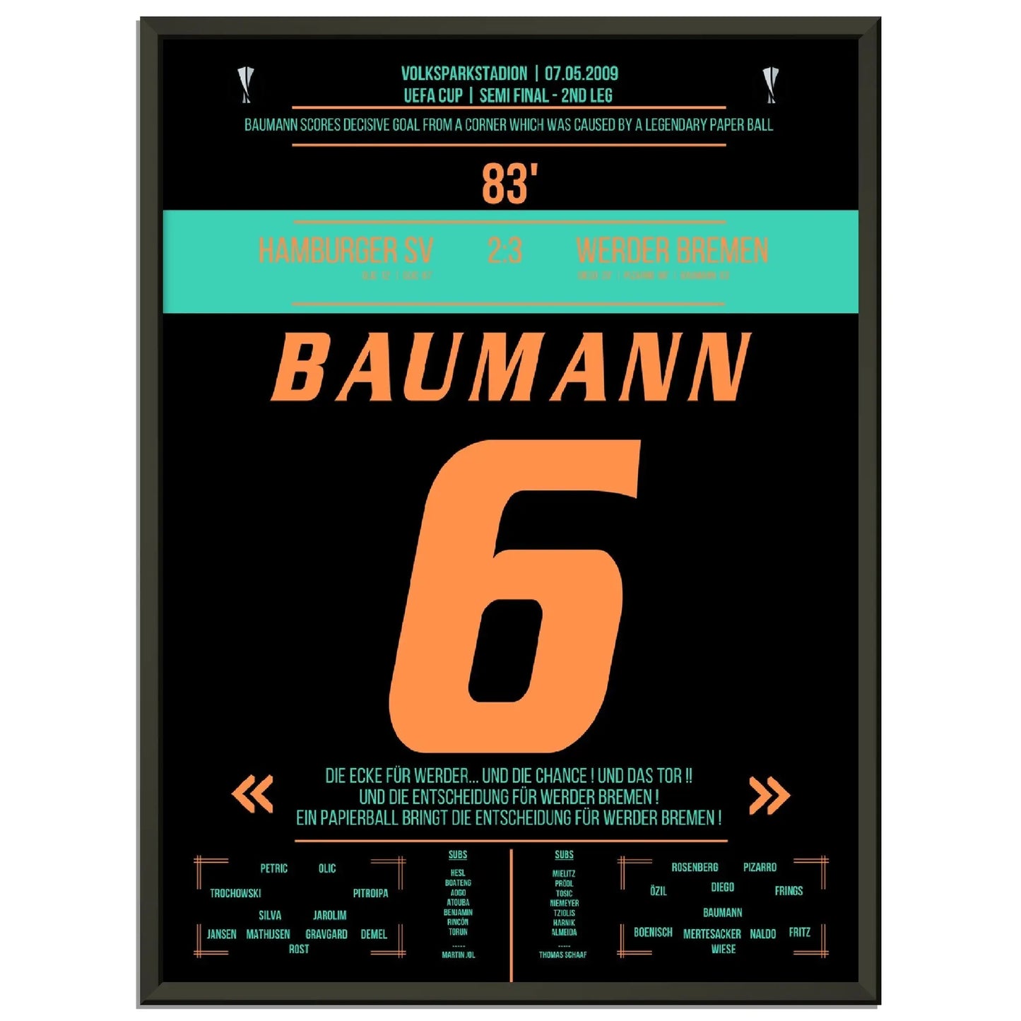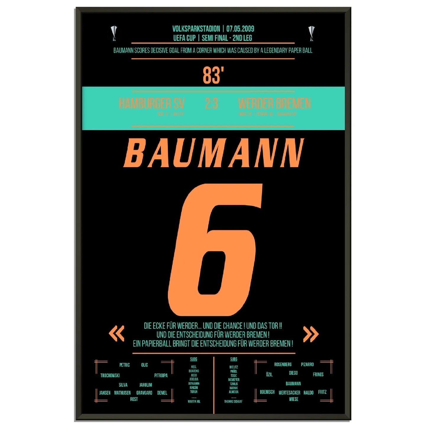 Ein legendäres Halbfinale, das in die Fußballfolklore einging: Eine Papierkugel lenkt den Ball zur verhängnisvollen Ecke, Bremen nutzt die Chance – Frank Baumann trifft zum 3:2 und schießt Werder ins Finale. Ein Moment zwischen Kuriosität und Genie.
