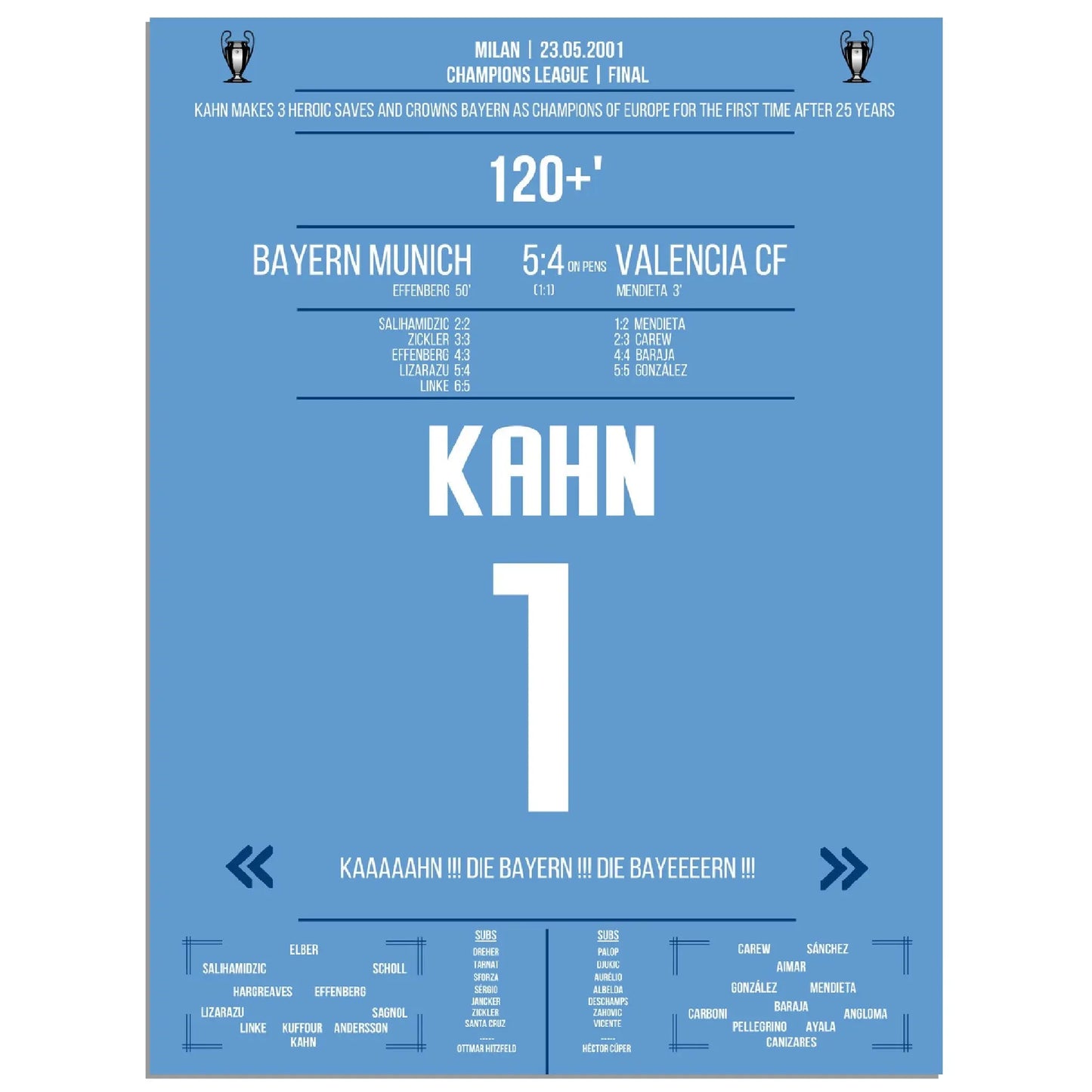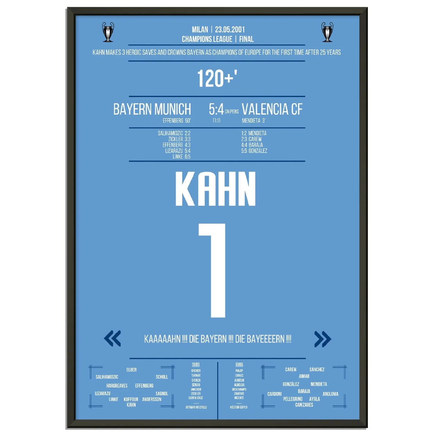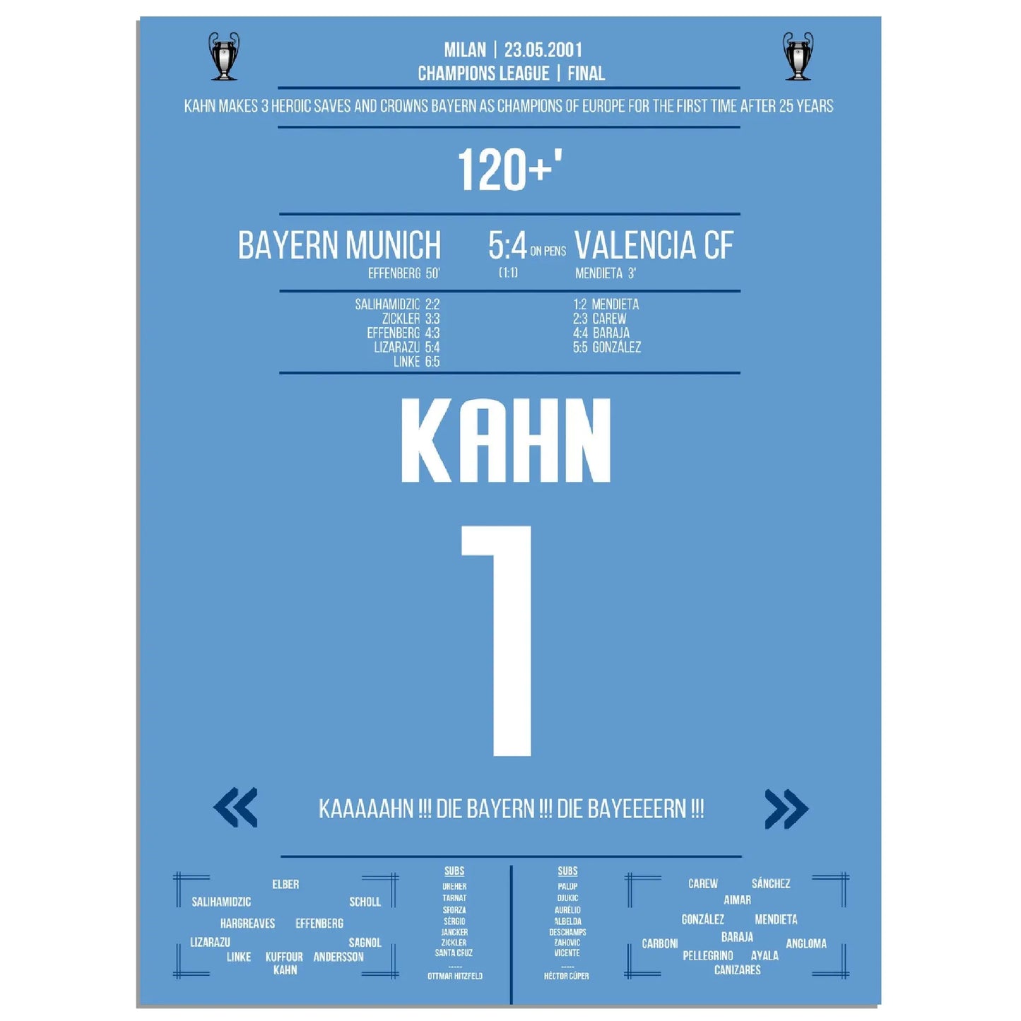 23.05.2001: Bayern gegen Valencia – 1:1 (5:4 i.E.).