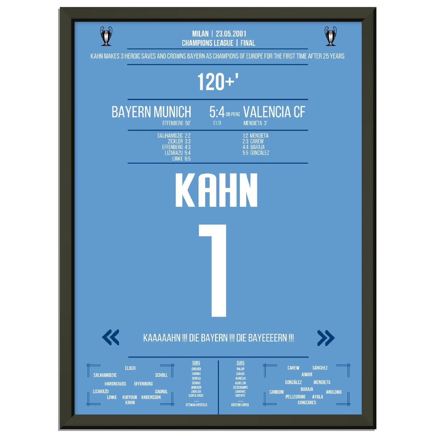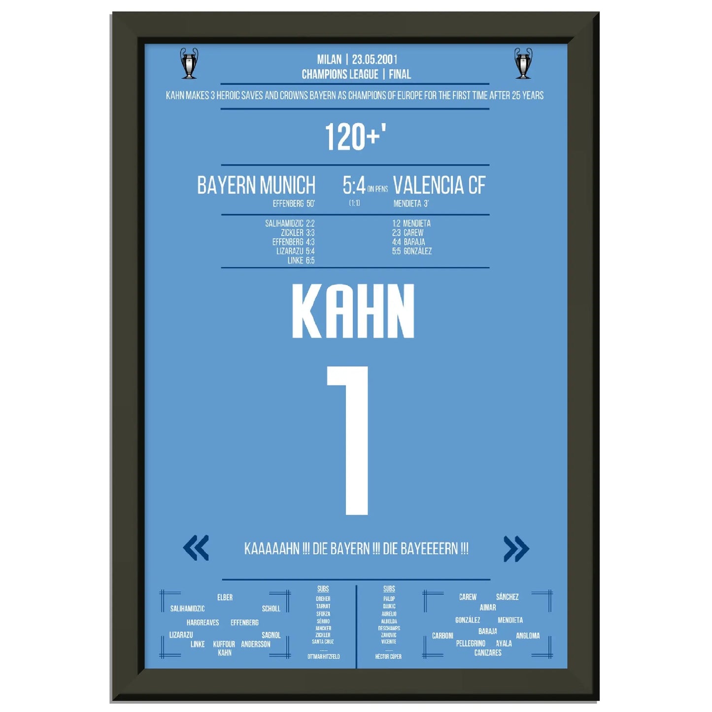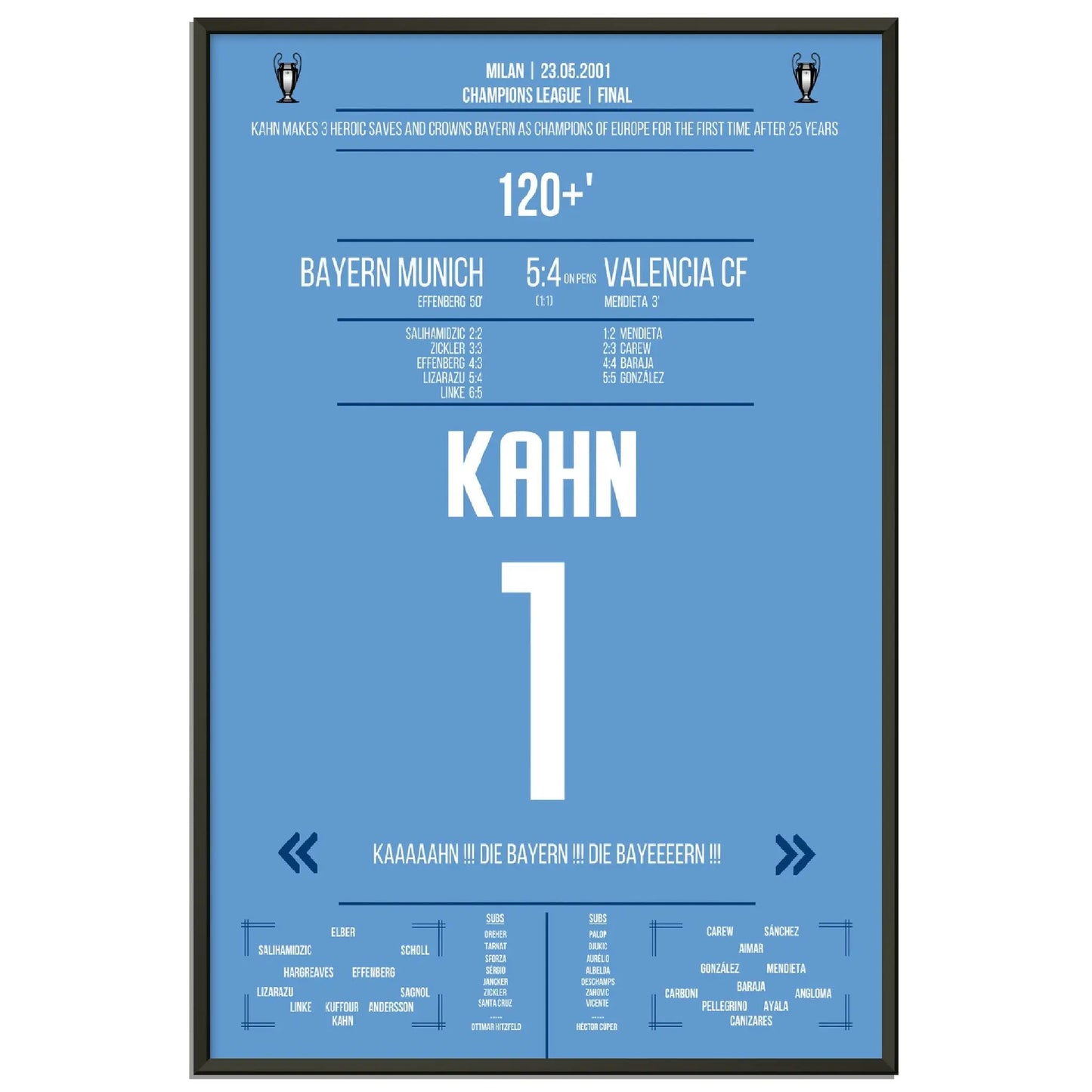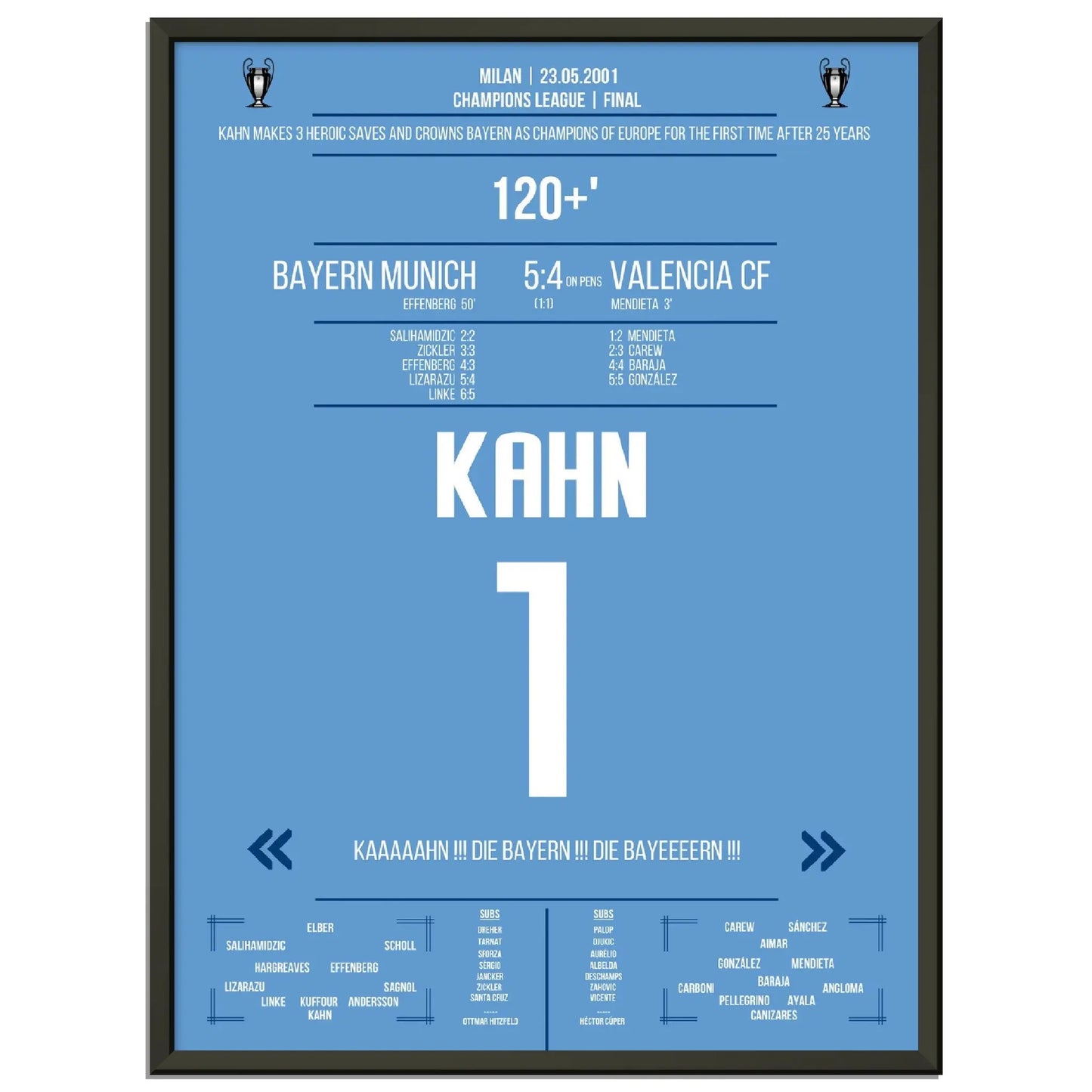 23.05.2001: Bayern gegen Valencia – 1:1 (5:4 i.E.).