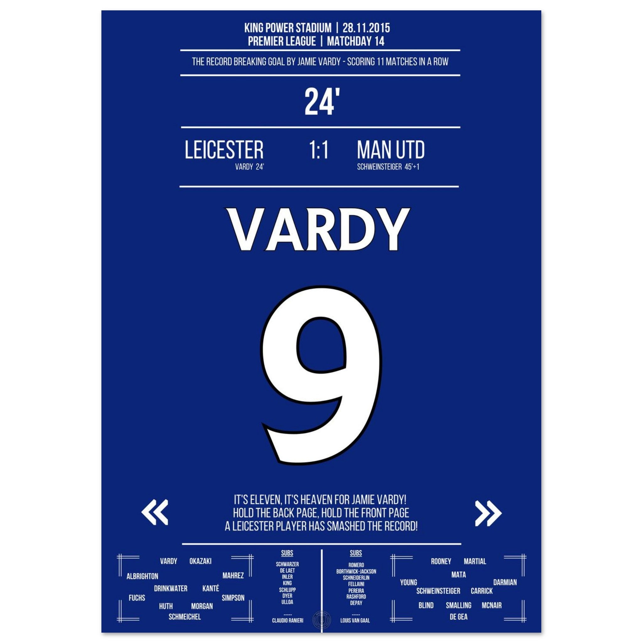 Vardy scores in his 11th consecutive game and breaks the Premier League record.