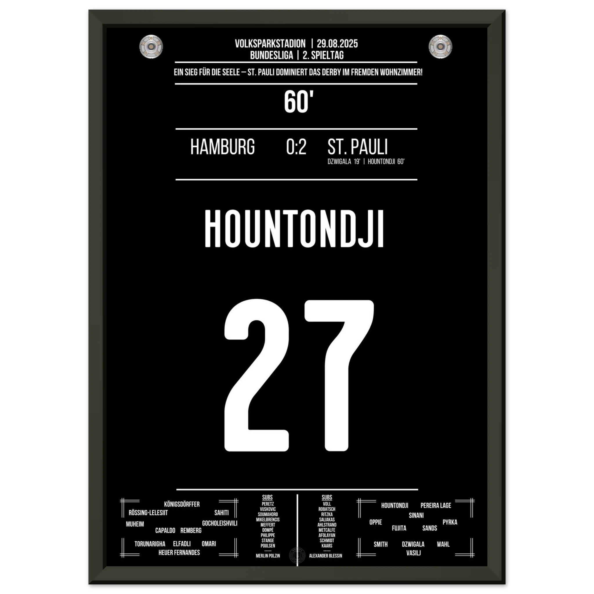 29. August 2025 – Hamburg vs. St. Pauli 0:2