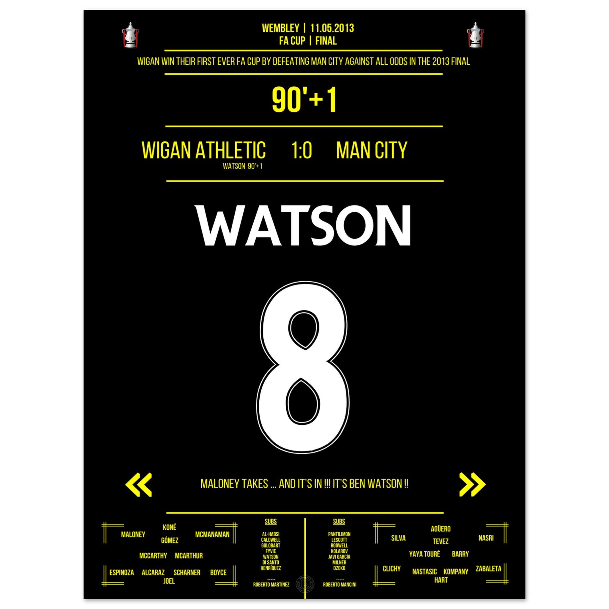 Watson scores in the last minute for Wigan's first cup victory.