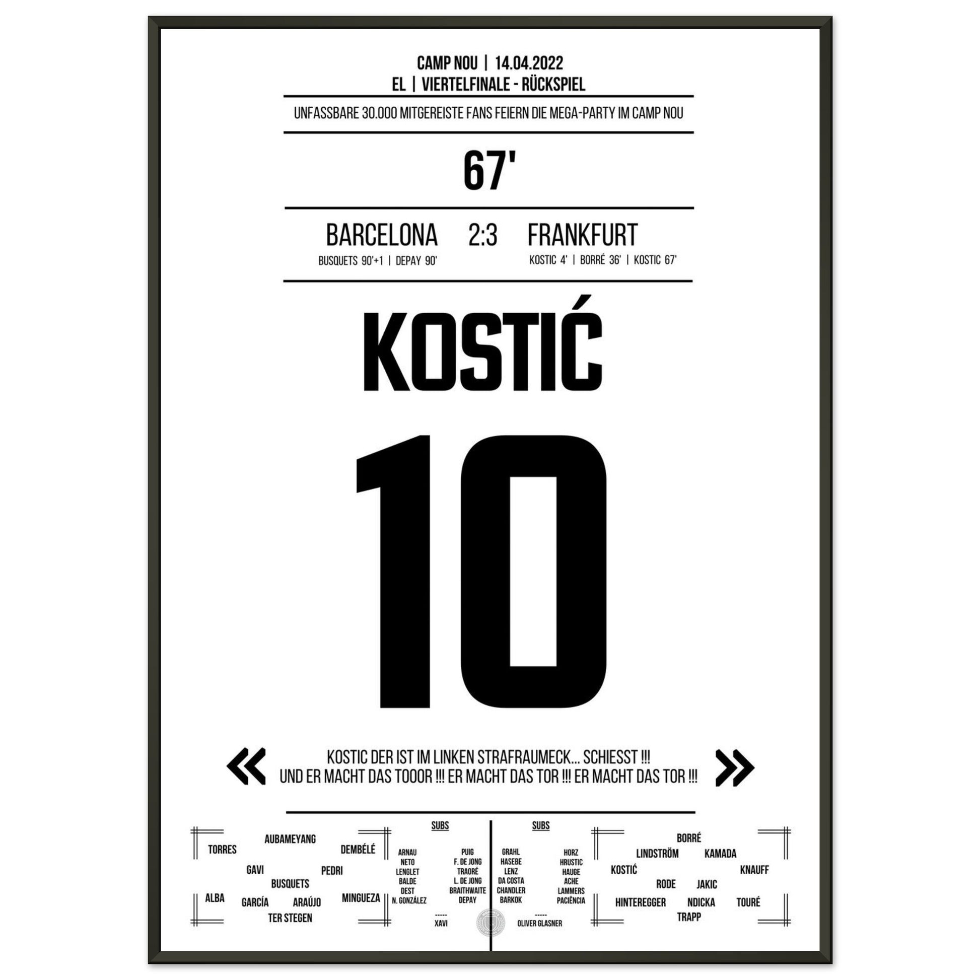 Kostic's gala performance at Frankfurt's big party in Camp Nou