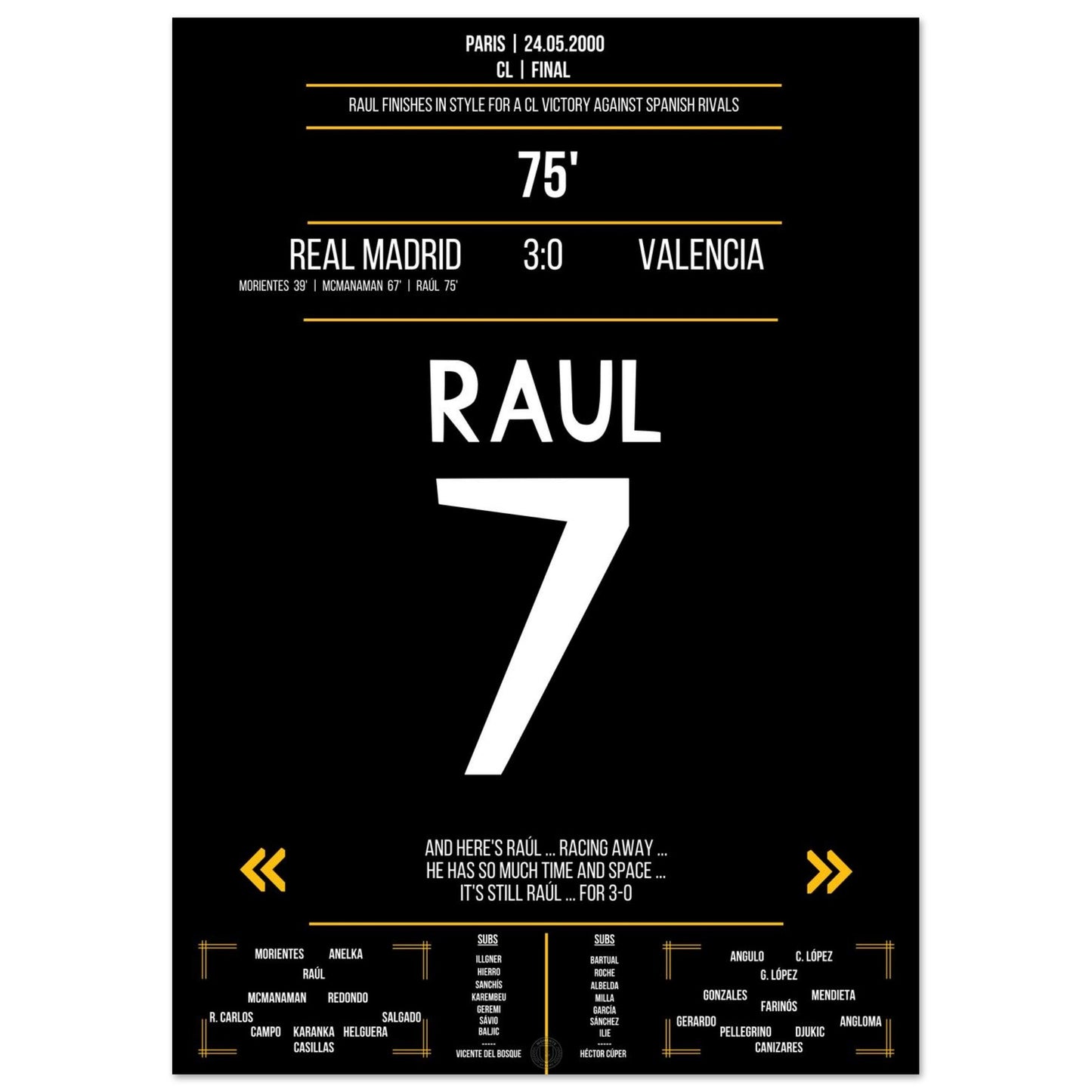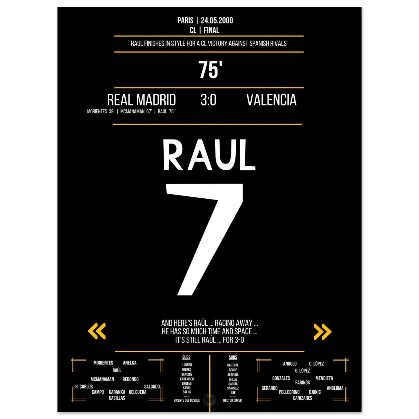 Raul's third goal in the Spanish final 2000