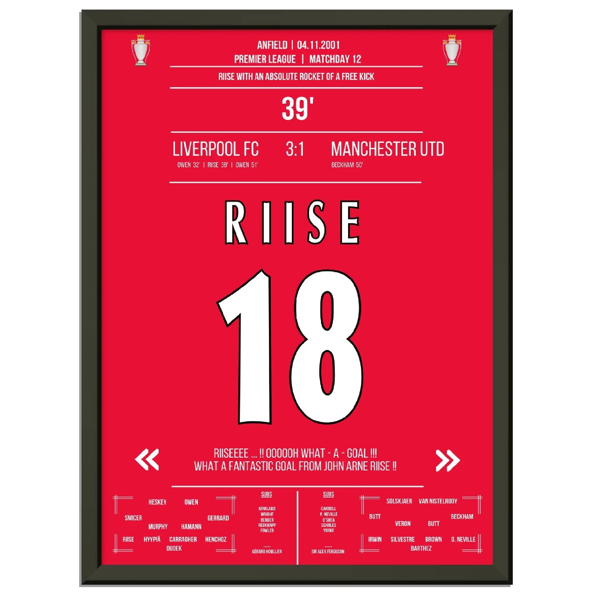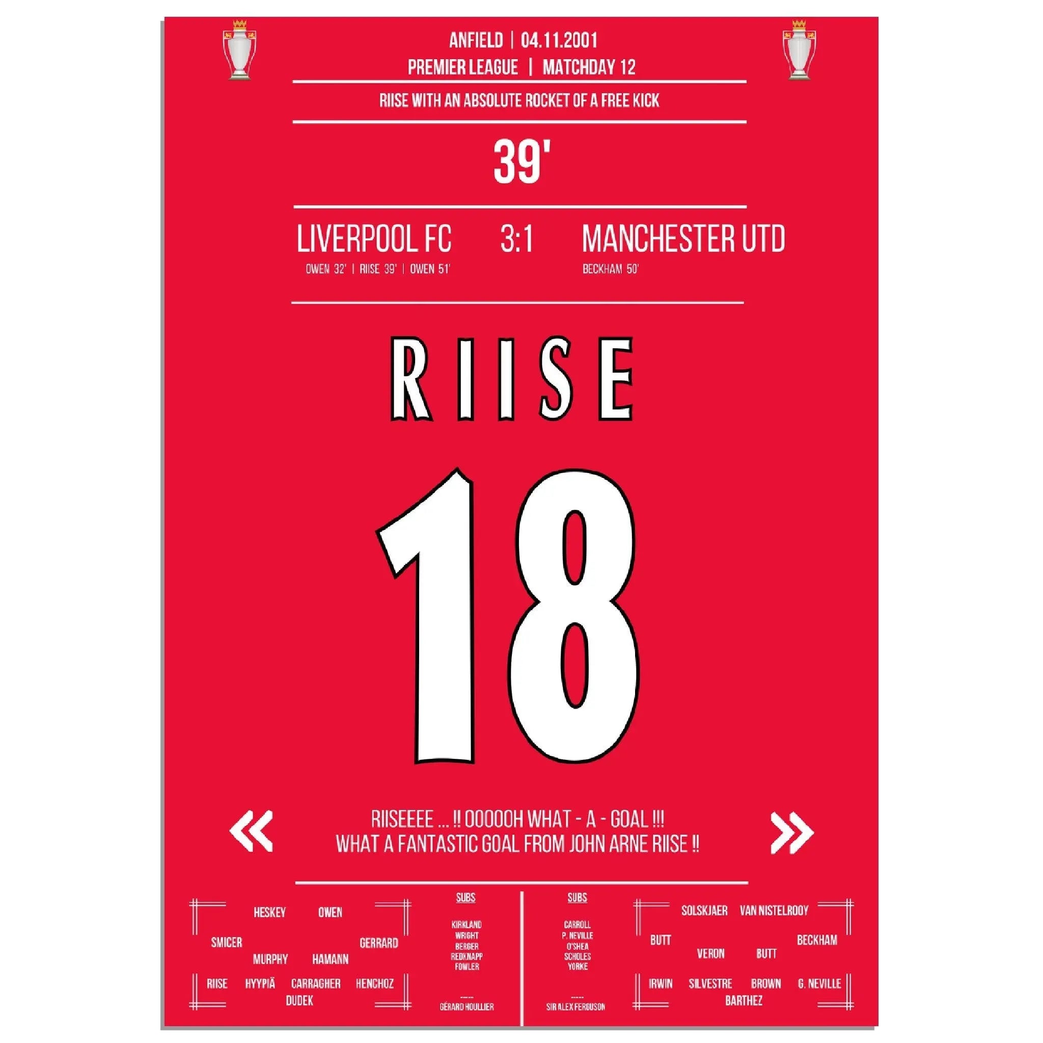 Riise unleashes a thunderbolt in Liverpool's home victory against ManU in 2001.