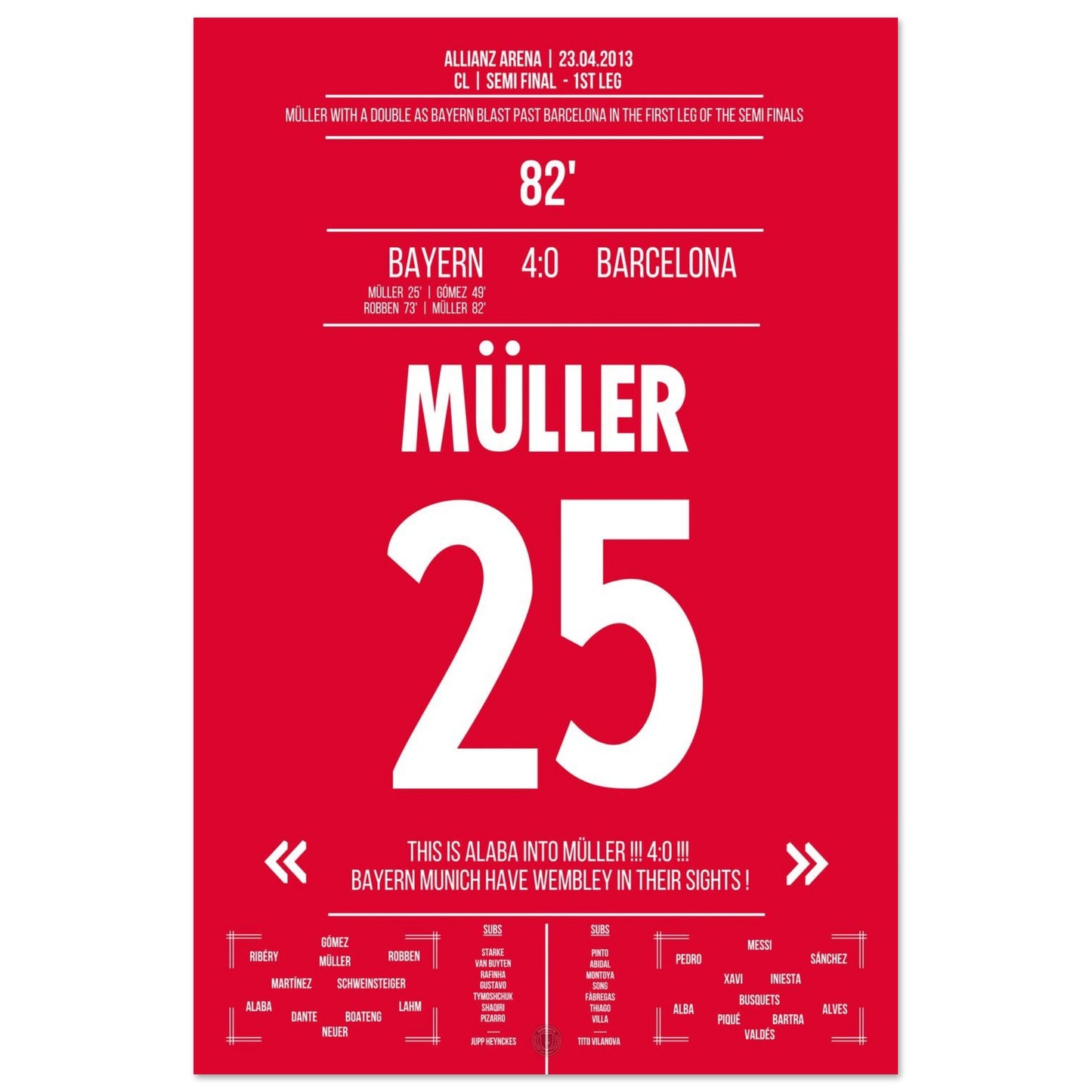 Müller trifft in der 82. Minute und krönt eine Gala-Vorstellung im Halbfinal-Hinspiel. Mit diesem klaren Sieg setzt München ein kräftiges Ausrufezeichen im CL-Wettbewerb.