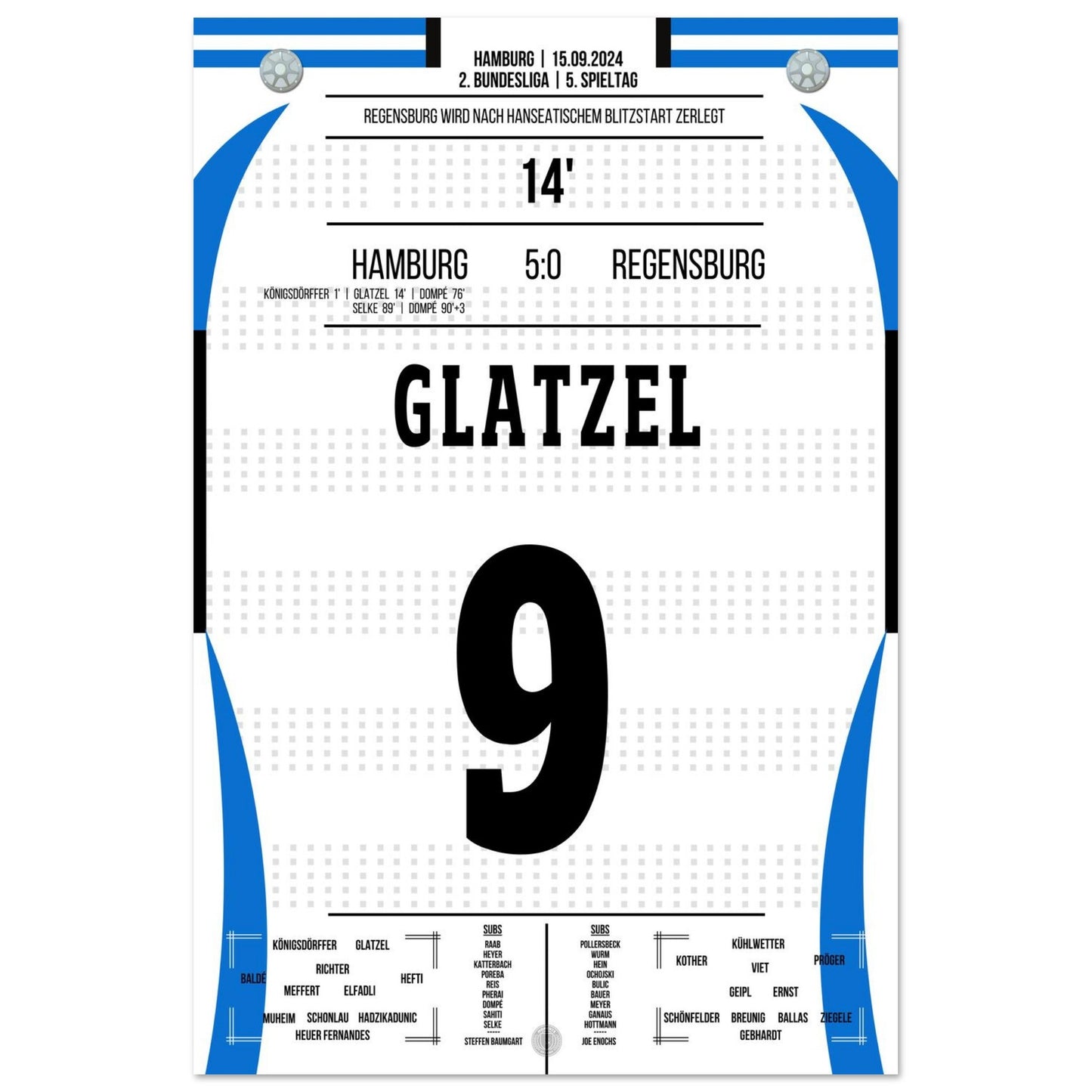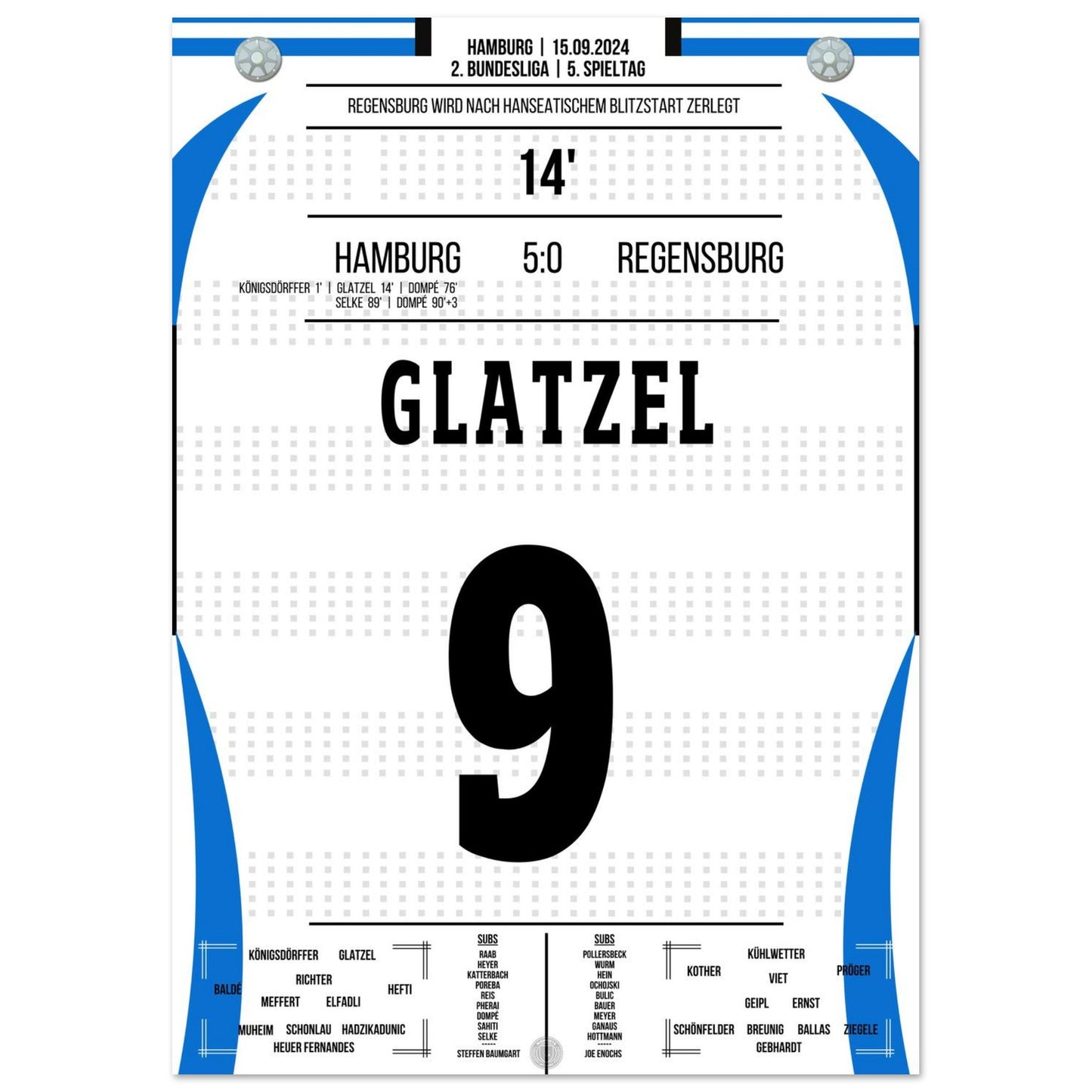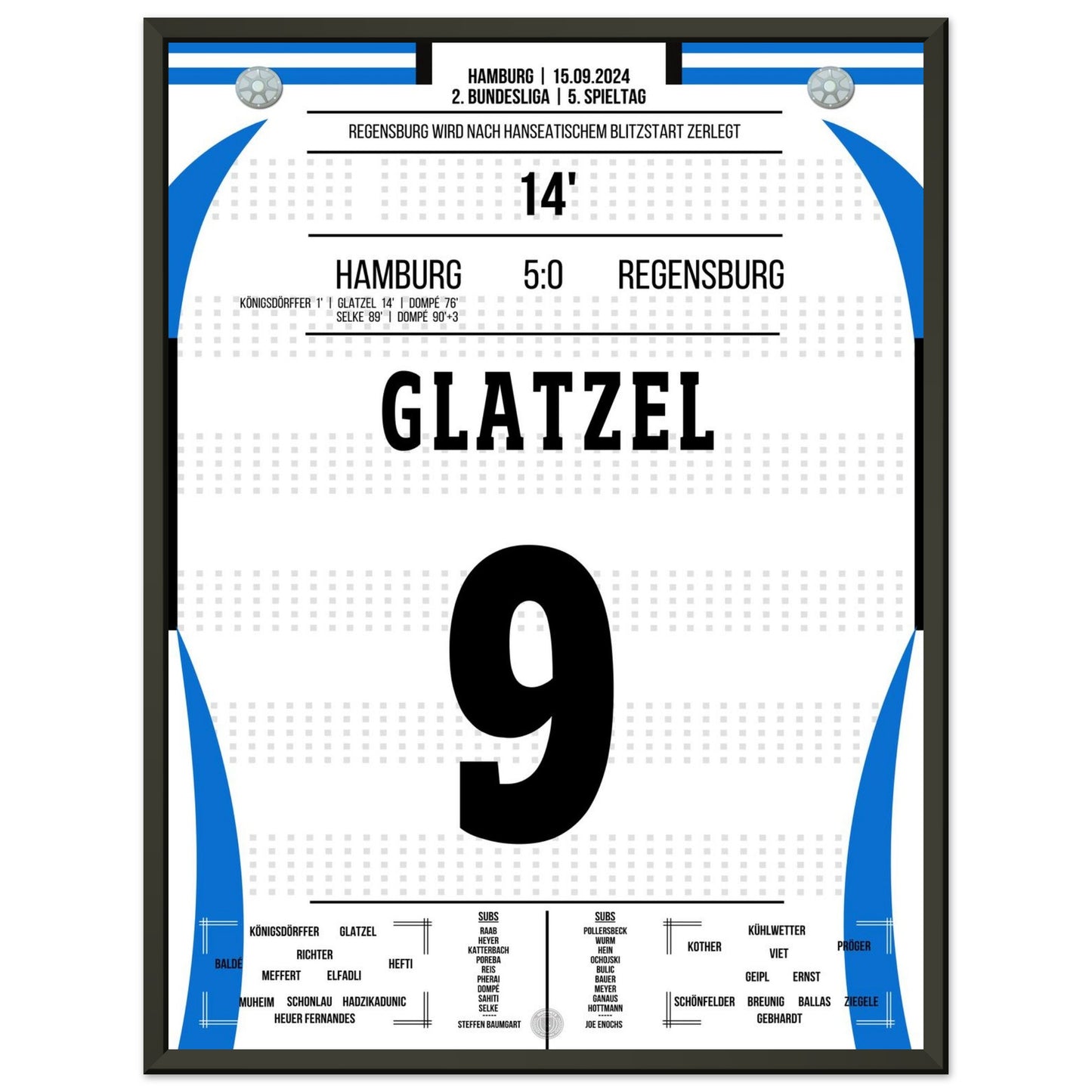 15. September 2024 – Hamburg vs. Regensburg 5:0: Hamburg zündet ein Offensivfeuerwerk im Volkspark und fegt Regensburg eindrucksvoll vom Platz. Ein Heimspiel wie gemalt – voller Tempo, Tore und Emotionen. Unser Poster hält diesen dominanten Auftritt in rot-weiß-blau fest.