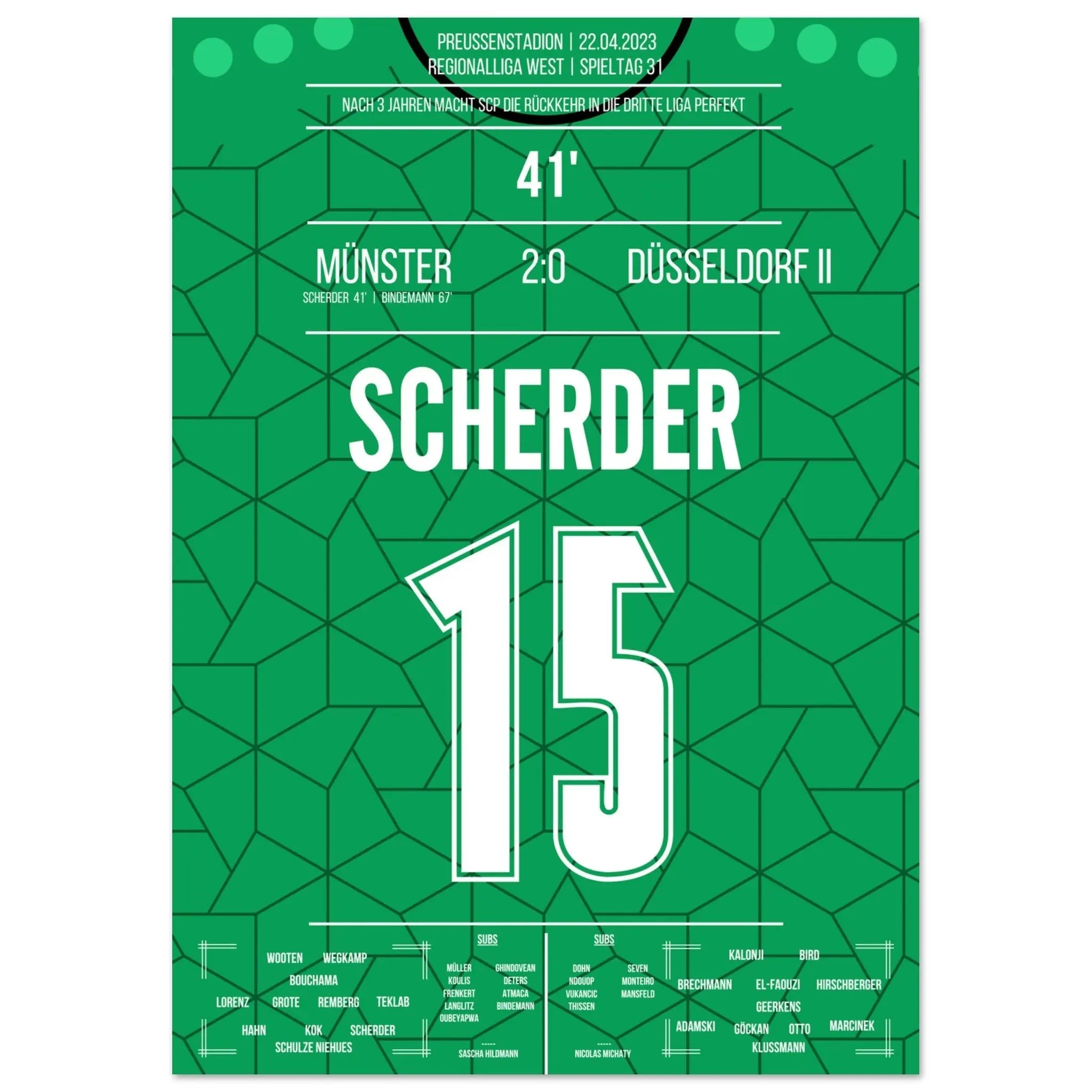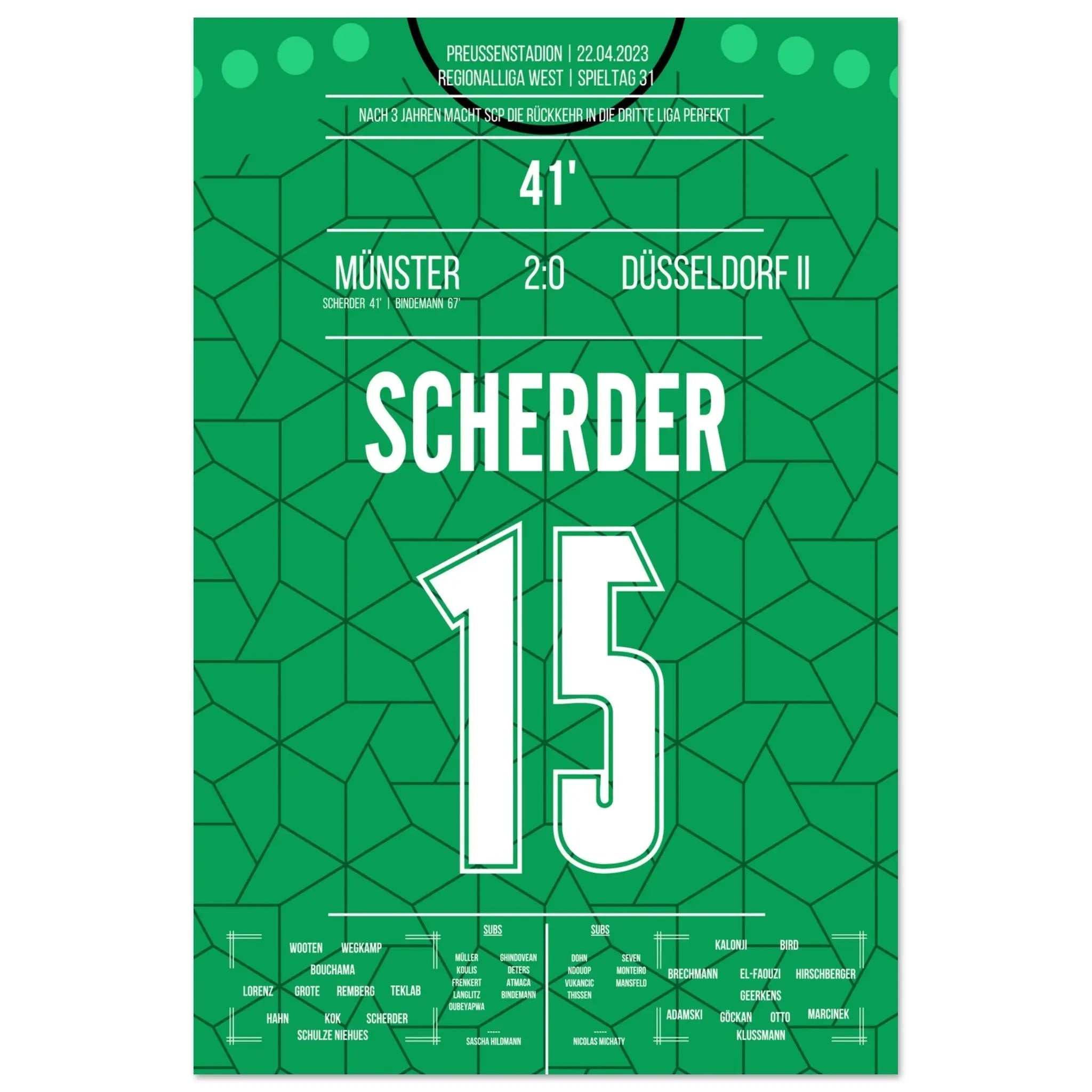 Schröder trifft in der 41. Minute und ebnet mit seinem Tor den Weg zum entscheidenden Heimsieg. Ein bedeutender Treffer, der Münsters Rückkehr in die 3. Liga perfekt macht – ein Tag zum Feiern!