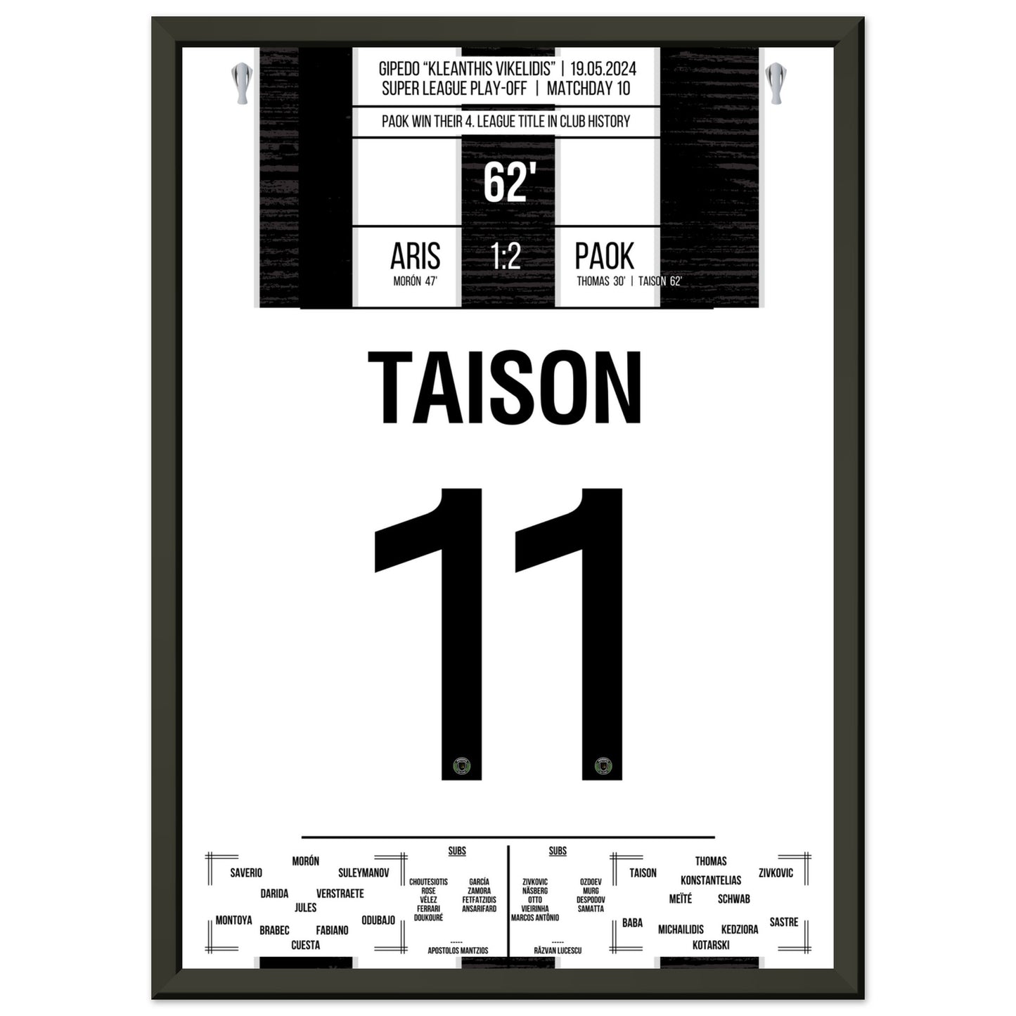 Hier kommt unser Premium-Druck dieses unvergesslichen Fußballmoments für das ultimative Fan-Erlebnis. Gedruckt auf schwerem, seidenmattem Premium-Papier, glänzt dieses Kunstwerk mit verstärkten Farben und einem subtilen Glanz, der jedes Detail zum Vorschein bringt.
