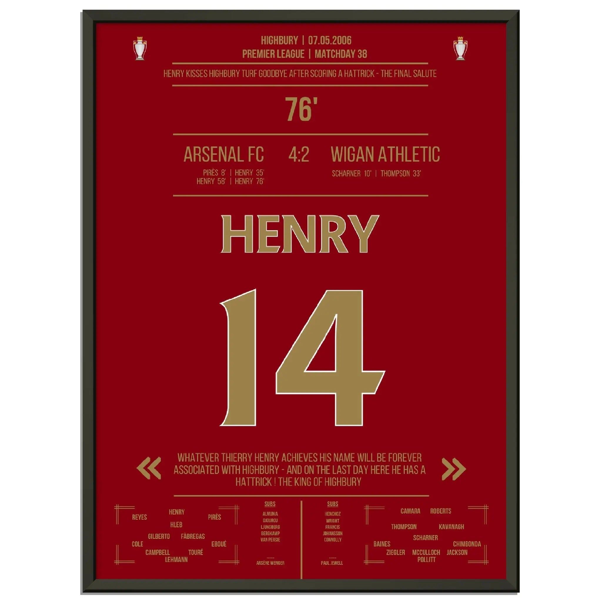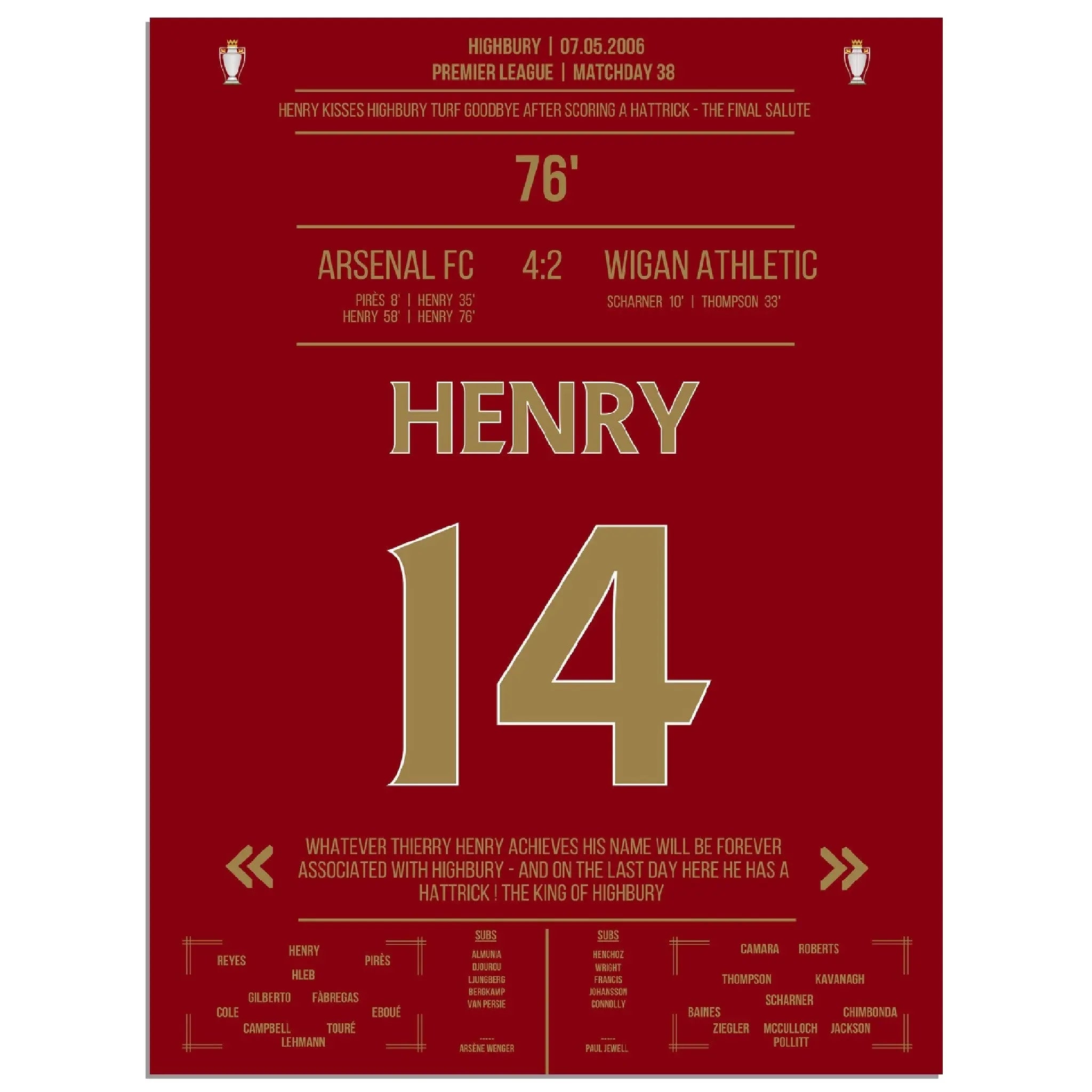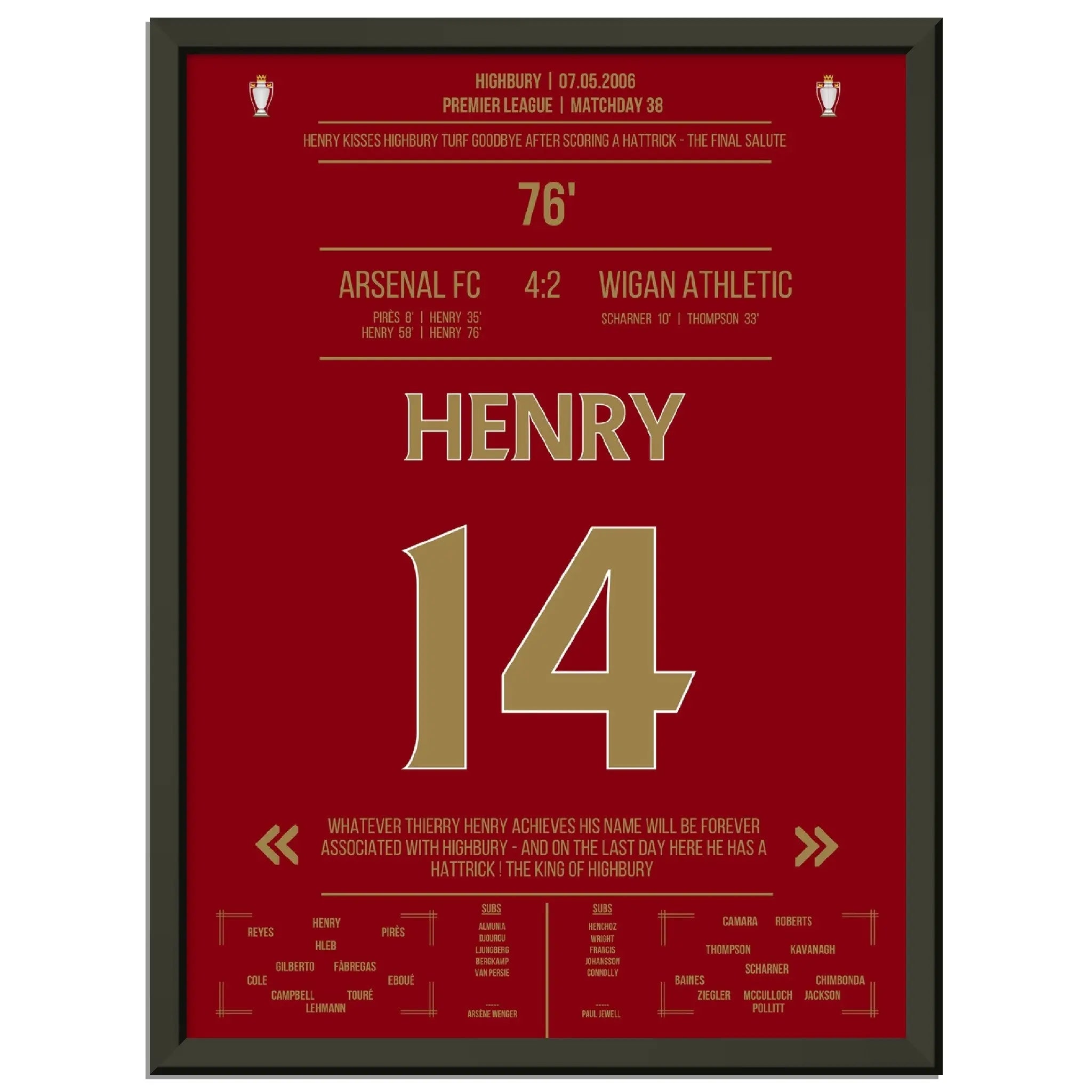 Im letzten Spiel im legendären Highbury-Stadion verabschiedet sich Thierry Henry mit einem Hattrick – elegant, eiskalt, emotional. Beim 4:2 gegen Wigan schreibt er das perfekte Schlusskapitel und küsst nach seinem dritten Treffer den Rasen seines geliebten Heims.