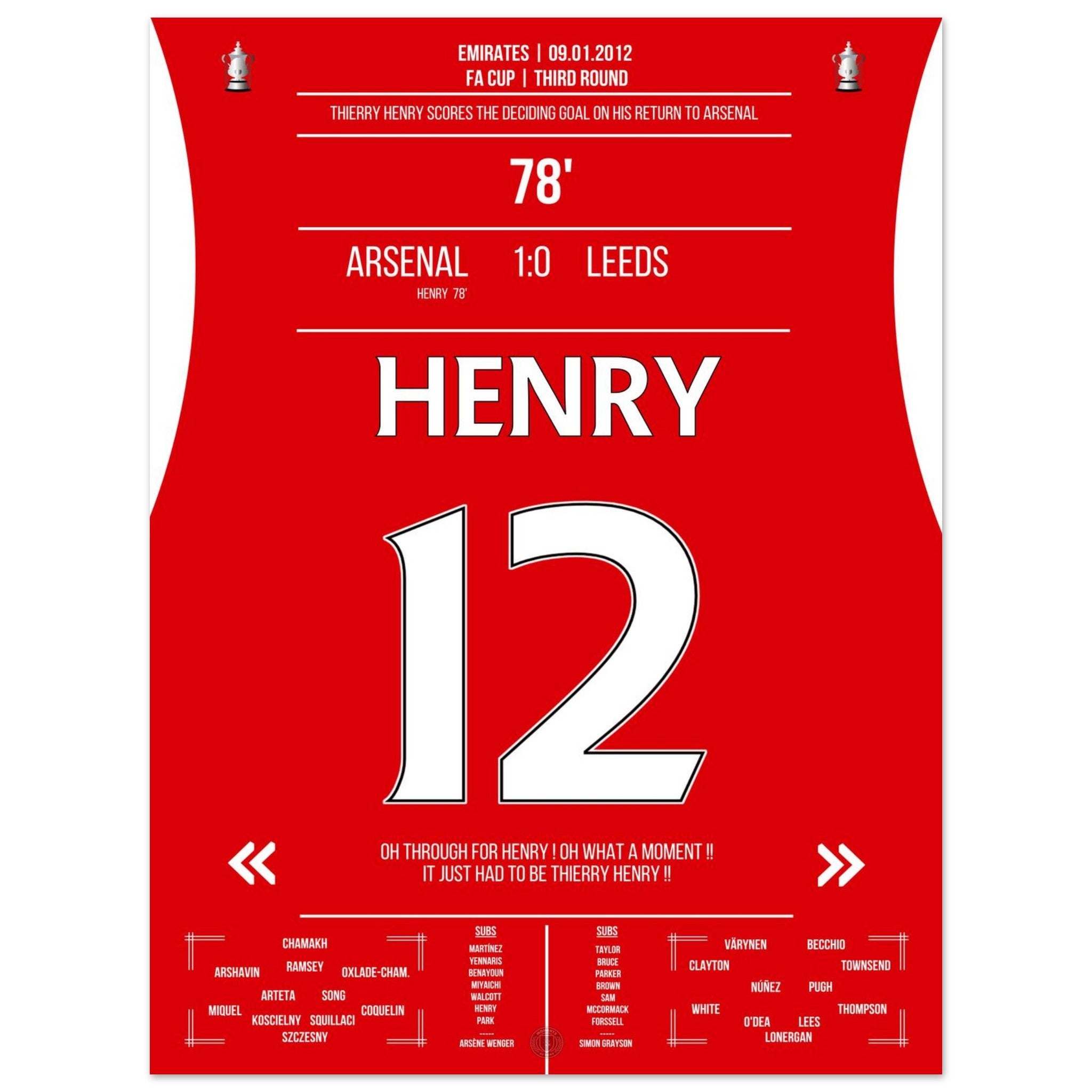 Thierry Henry Geri Dönüş 2012 Arsenal için Galibiyet Golü - <tc><tc>Leeds</tc></tc> FA Cup 3. Tur