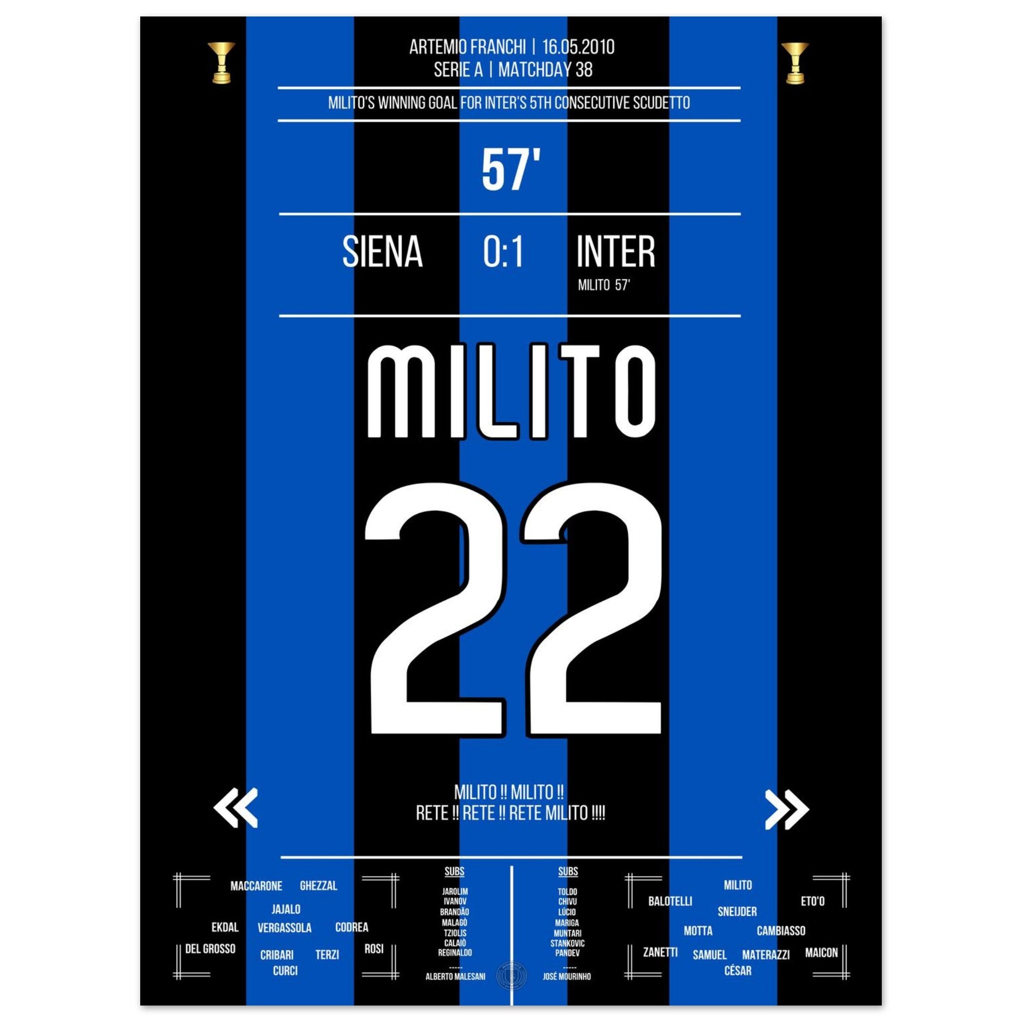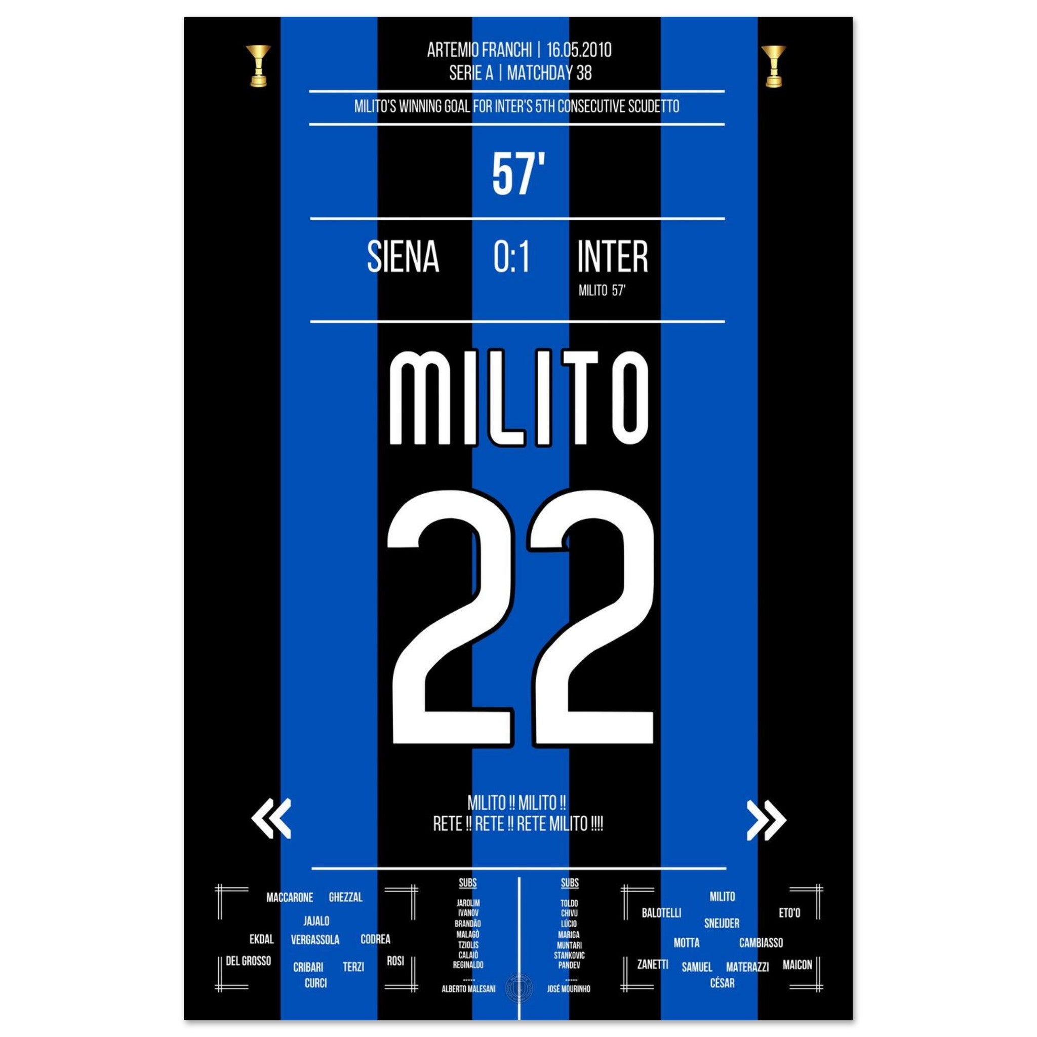 Inter, 2010 yılında Siena'da son maçta 5. kez üst üste Scudetto'yu kazandı.