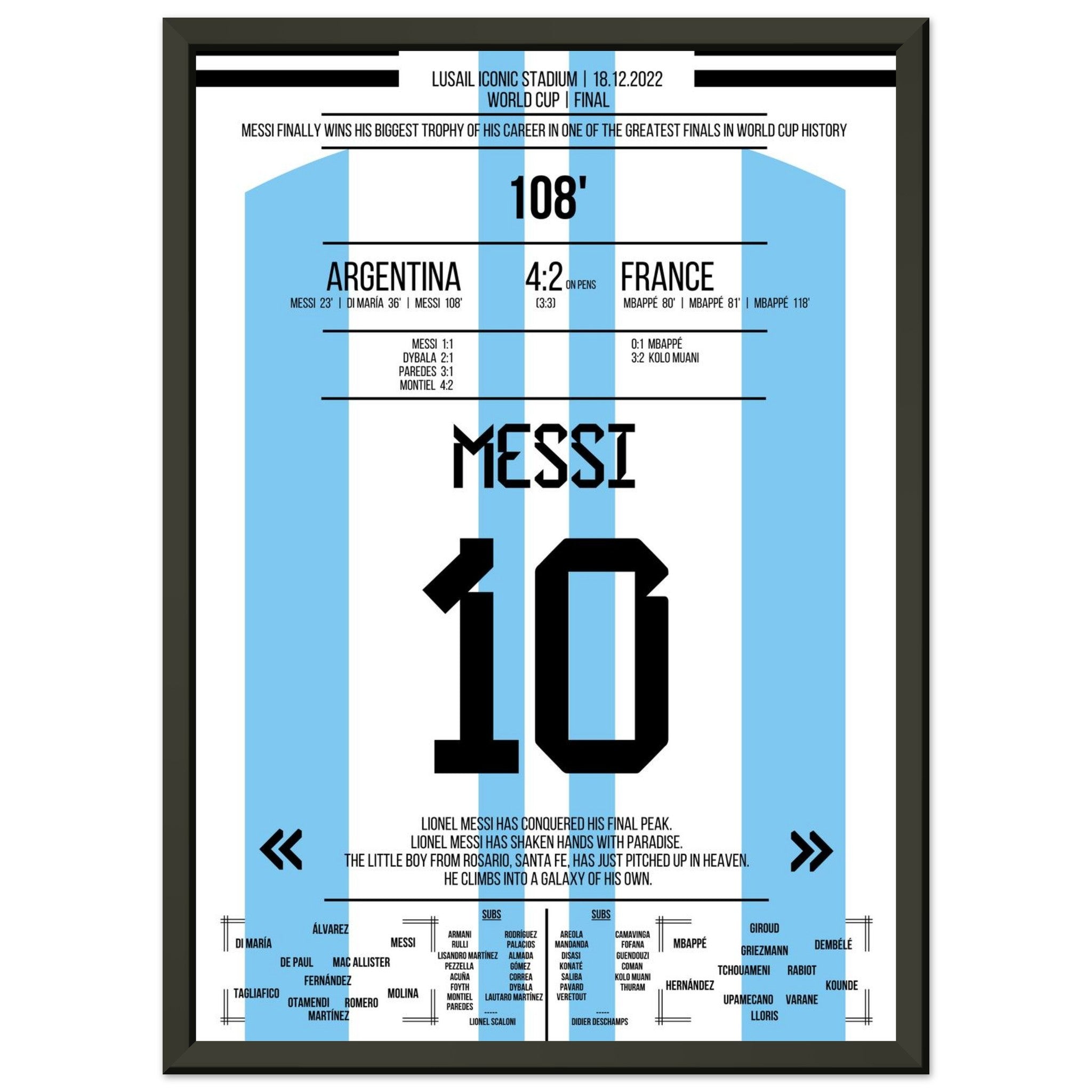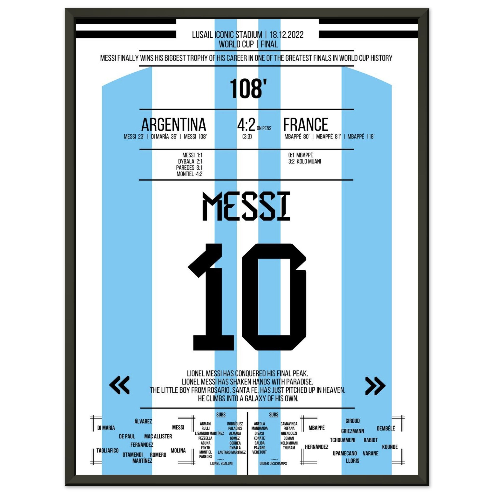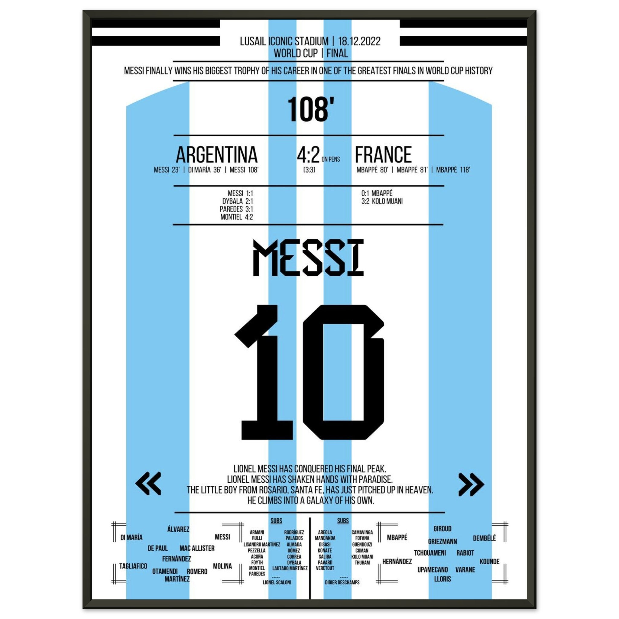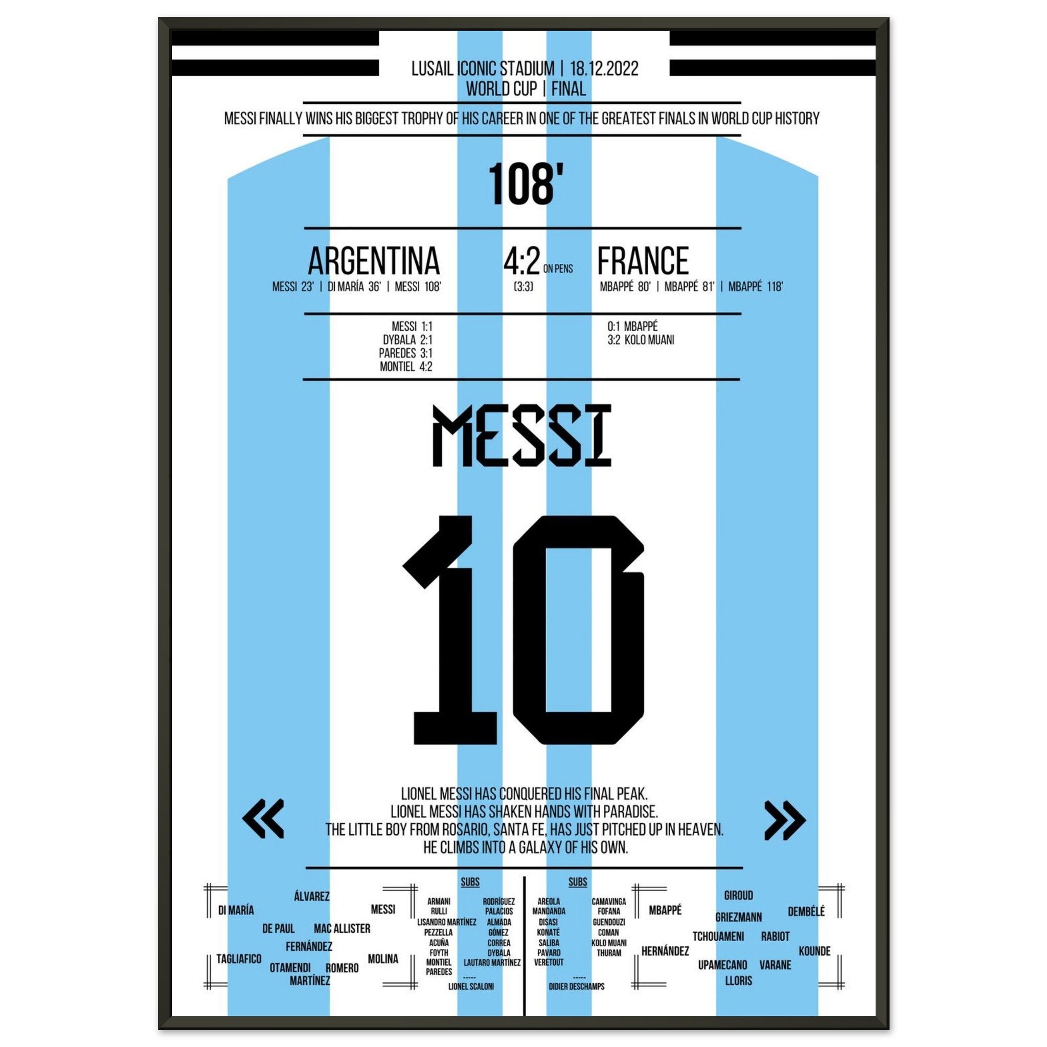 Hier kommt unser Premium-Druck dieses unvergesslichen Fußballmoments für das ultimative Fan-Erlebnis. Gedruckt auf schwerem, seidenmattem Premium-Papier, glänzt dieses Kunstwerk mit verstärkten Farben und einem subtilen Glanz, der jedes Detail zum Vorschein bringt.