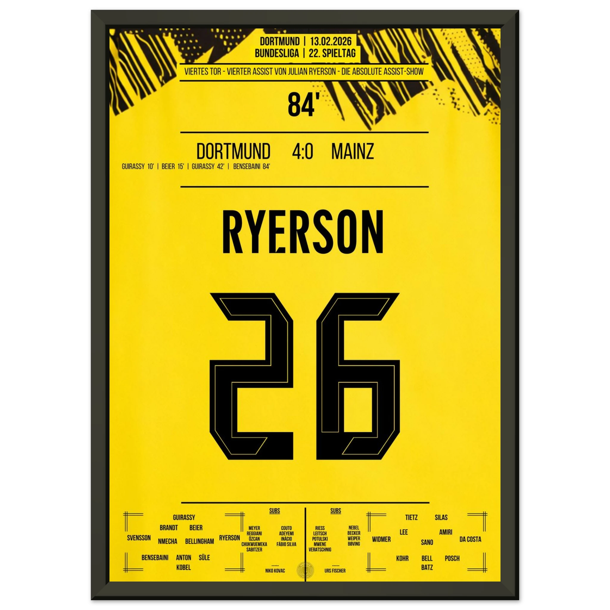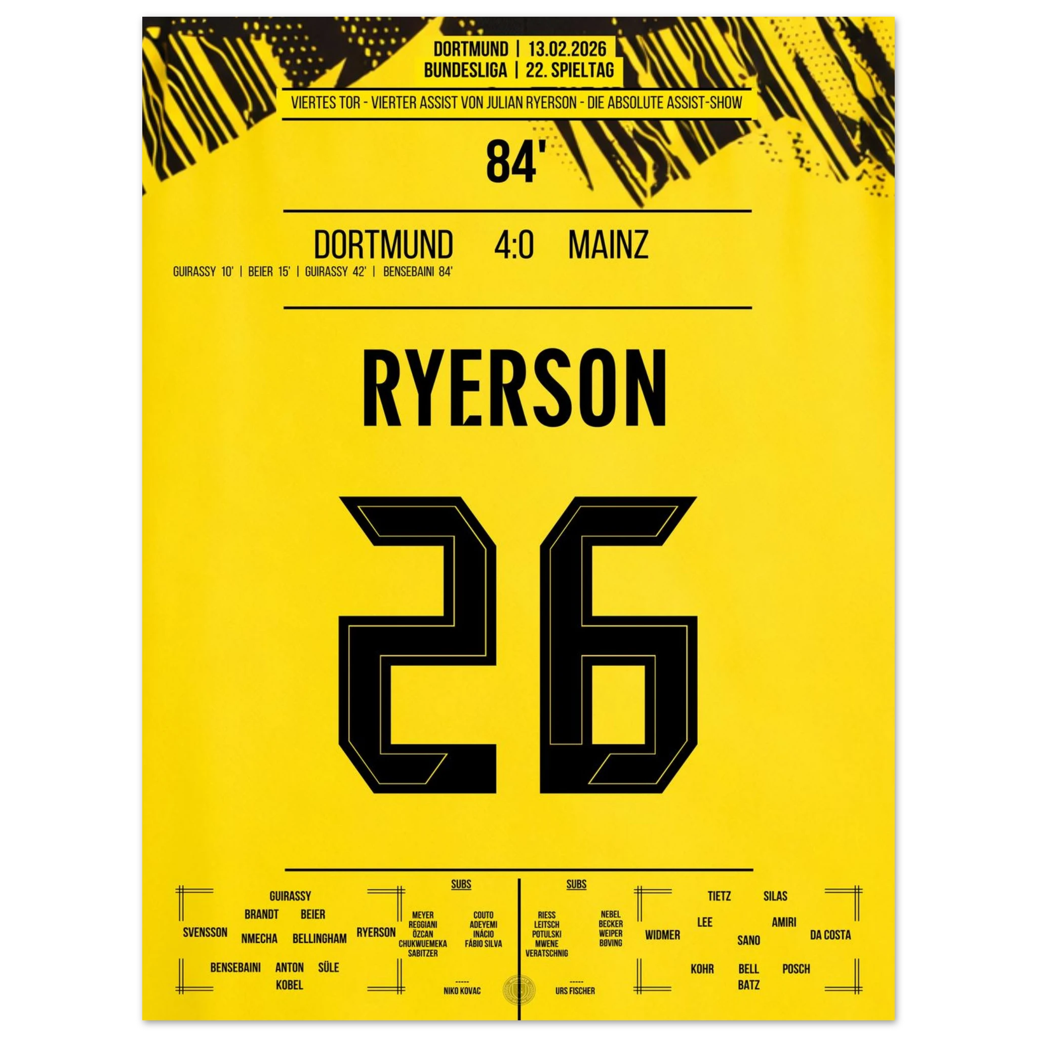 Dieses Poster hält den Moment fest, in dem Ryerson zum Architekten eines 4:0-Triumphs wurde – eine Vorlage-Show für die Ewigkeit. ⚽🔥