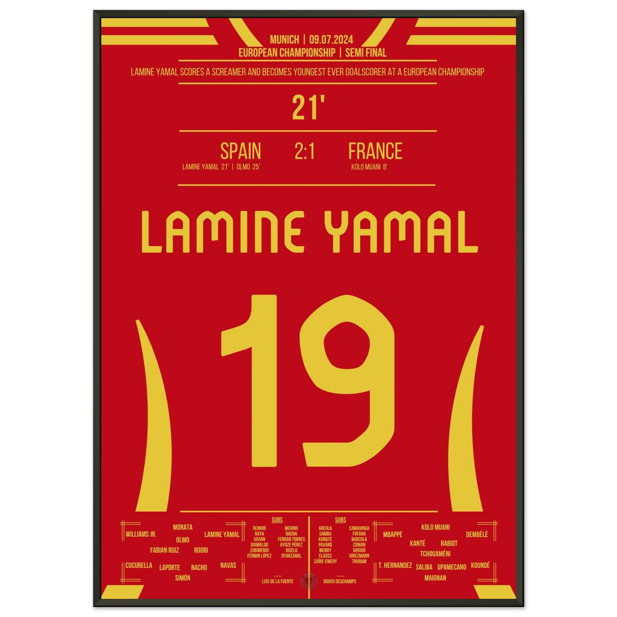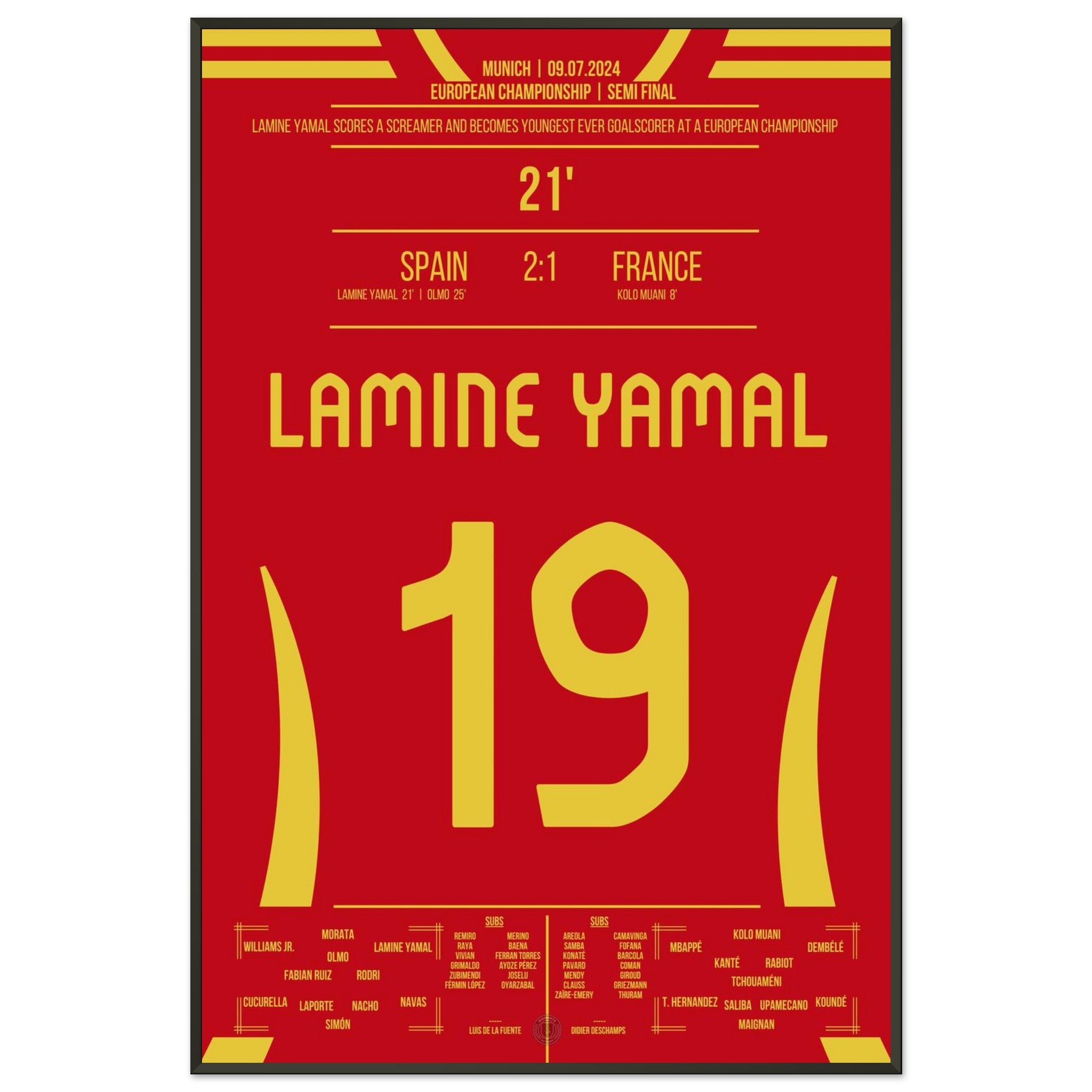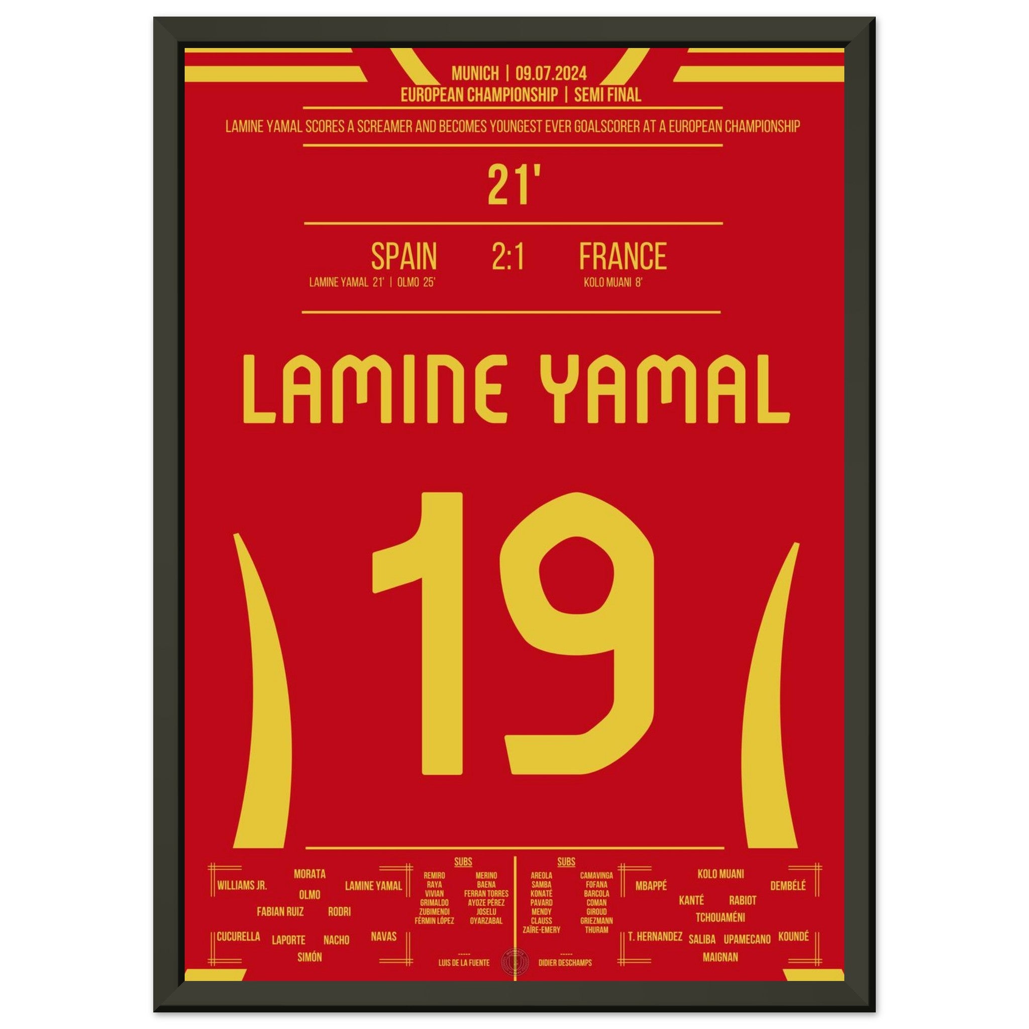 Hier kommt unser Premium-Druck dieses unvergesslichen Fußballmoments für das ultimative Fan-Erlebnis. Gedruckt auf schwerem, seidenmattem Premium-Papier, glänzt dieses Kunstwerk mit verstärkten Farben und einem subtilen Glanz, der jedes Detail zum Vorschein bringt.