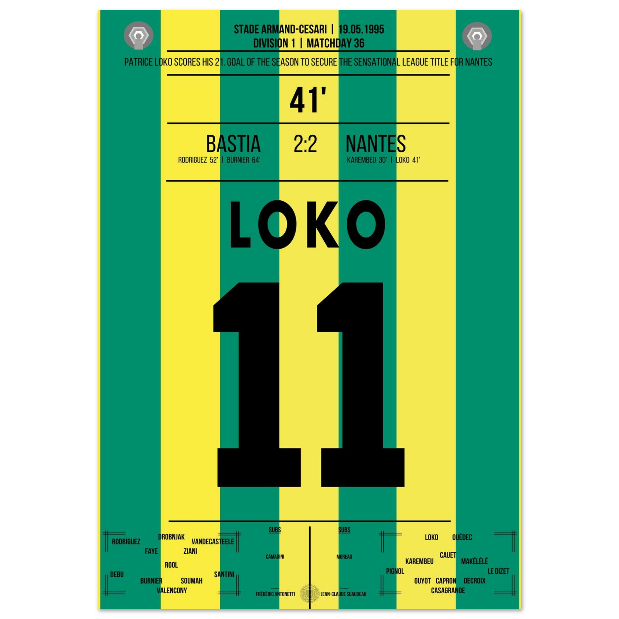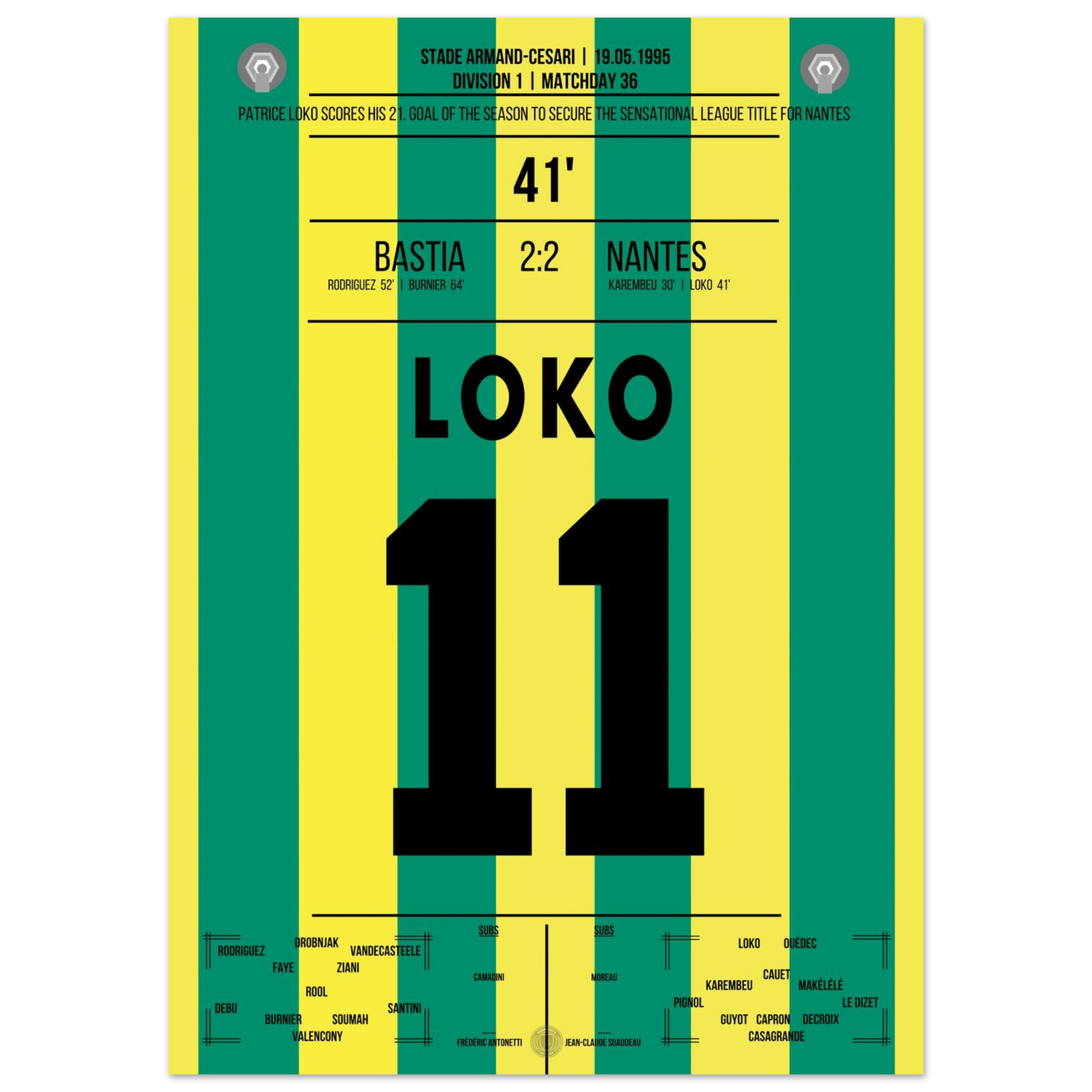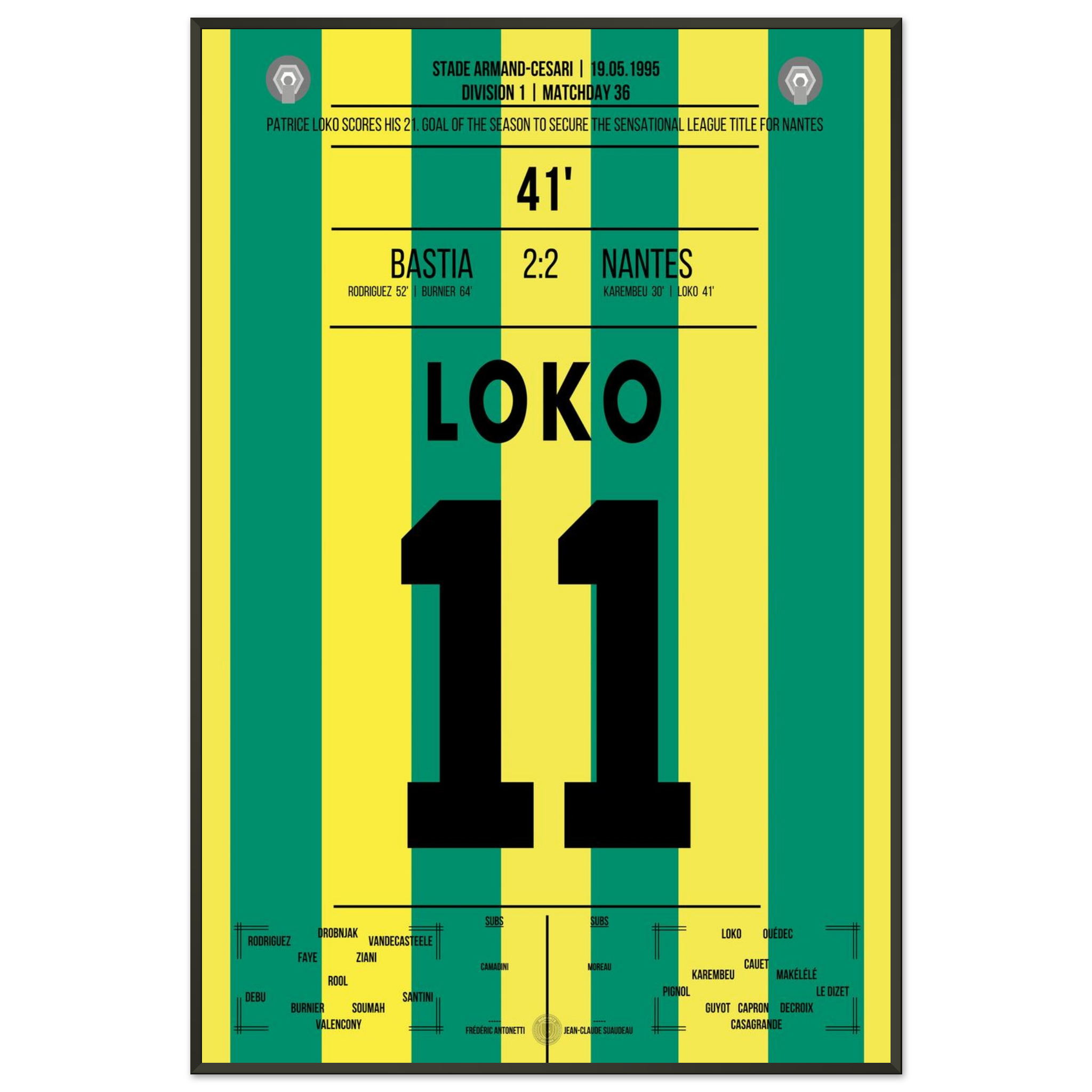19. Mai 1995 – Bastia vs. Nantes 2:2 – Loko trifft, Nantes krönt die perfekte Saison! 🟡🟢