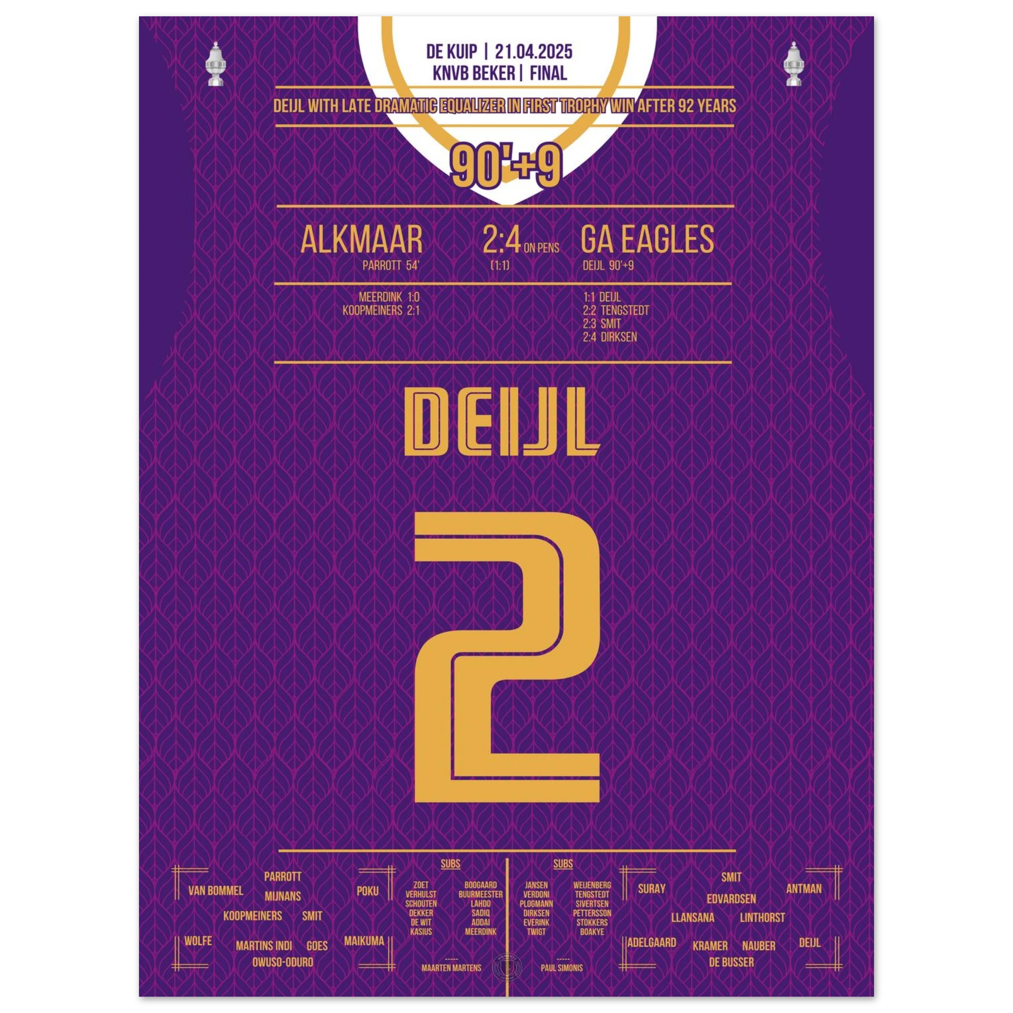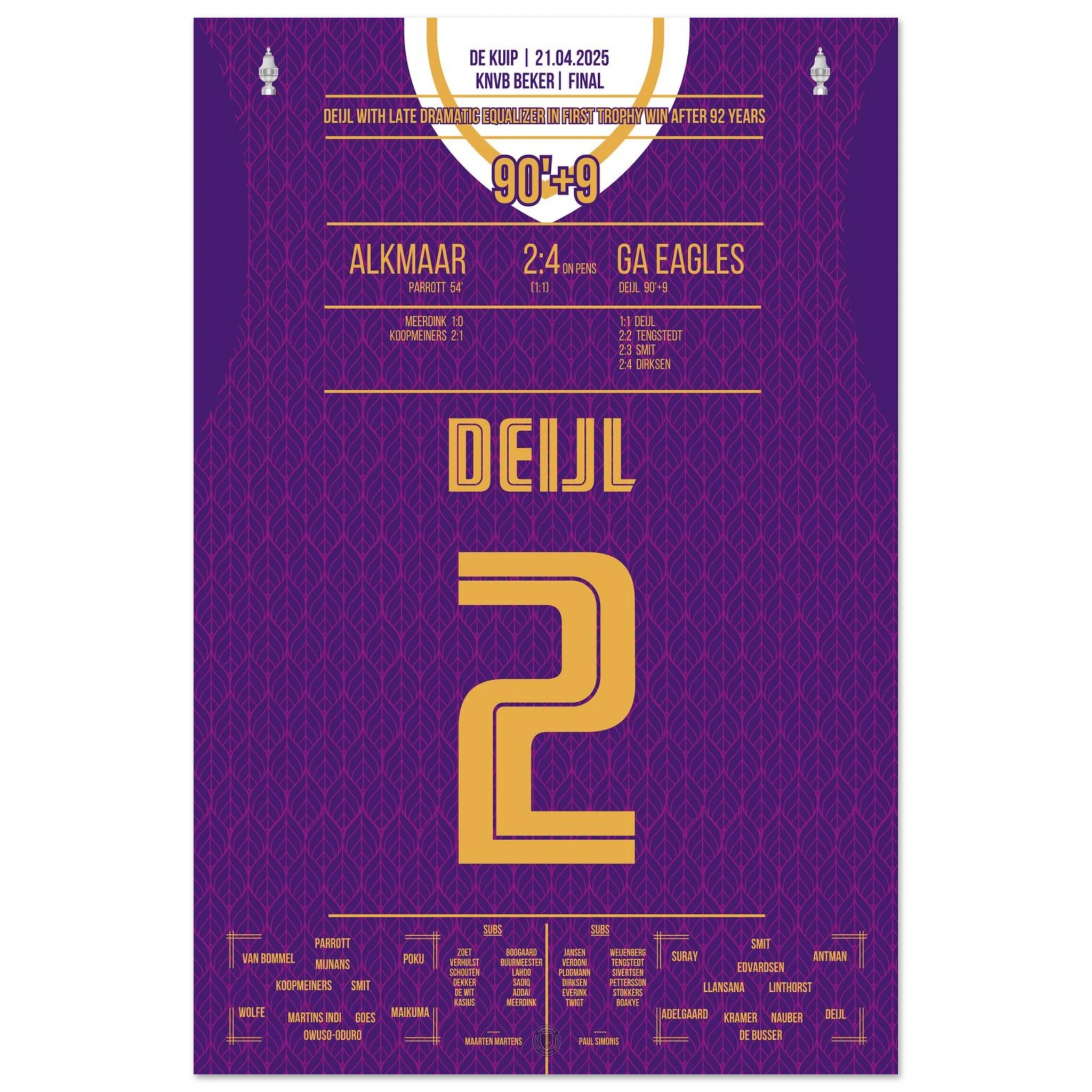 Hier ist unser Premium-Druck dieses unvergesslichen Fußballmoments für das ultimative Fan-Erlebnis. Auf schwerem, seidenmattem Papier gedruckt, glänzt das Kunstwerk mit intensiven Farben und subtilen Details.