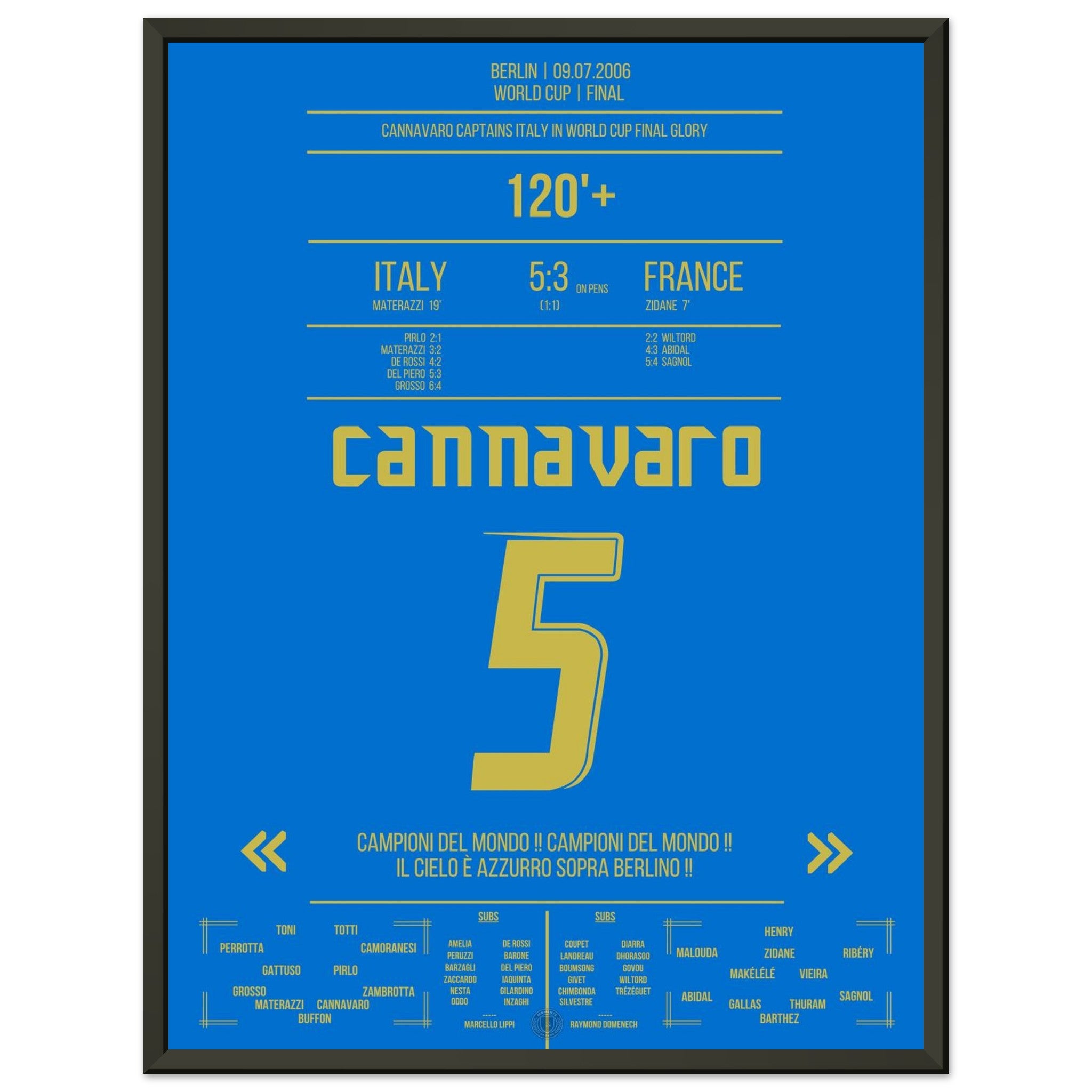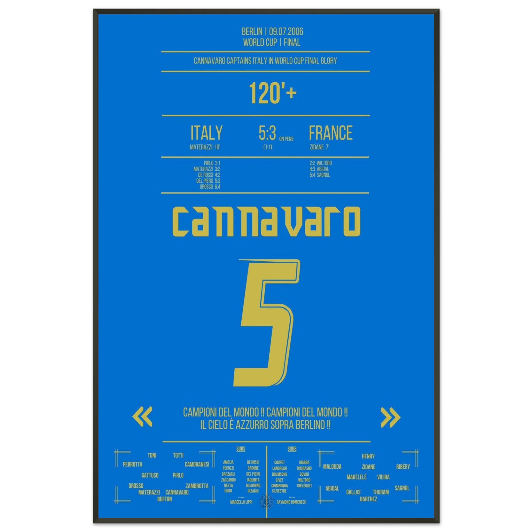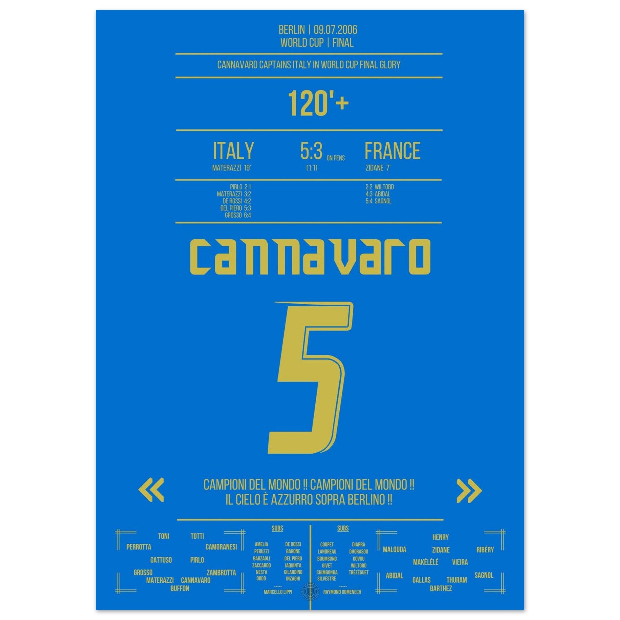 Unser Poster feiert diesen unvergesslichen Moment – Cannavaro, der Fels von Berlin und Symbol italienischer Größe. 💙🛡️⚽