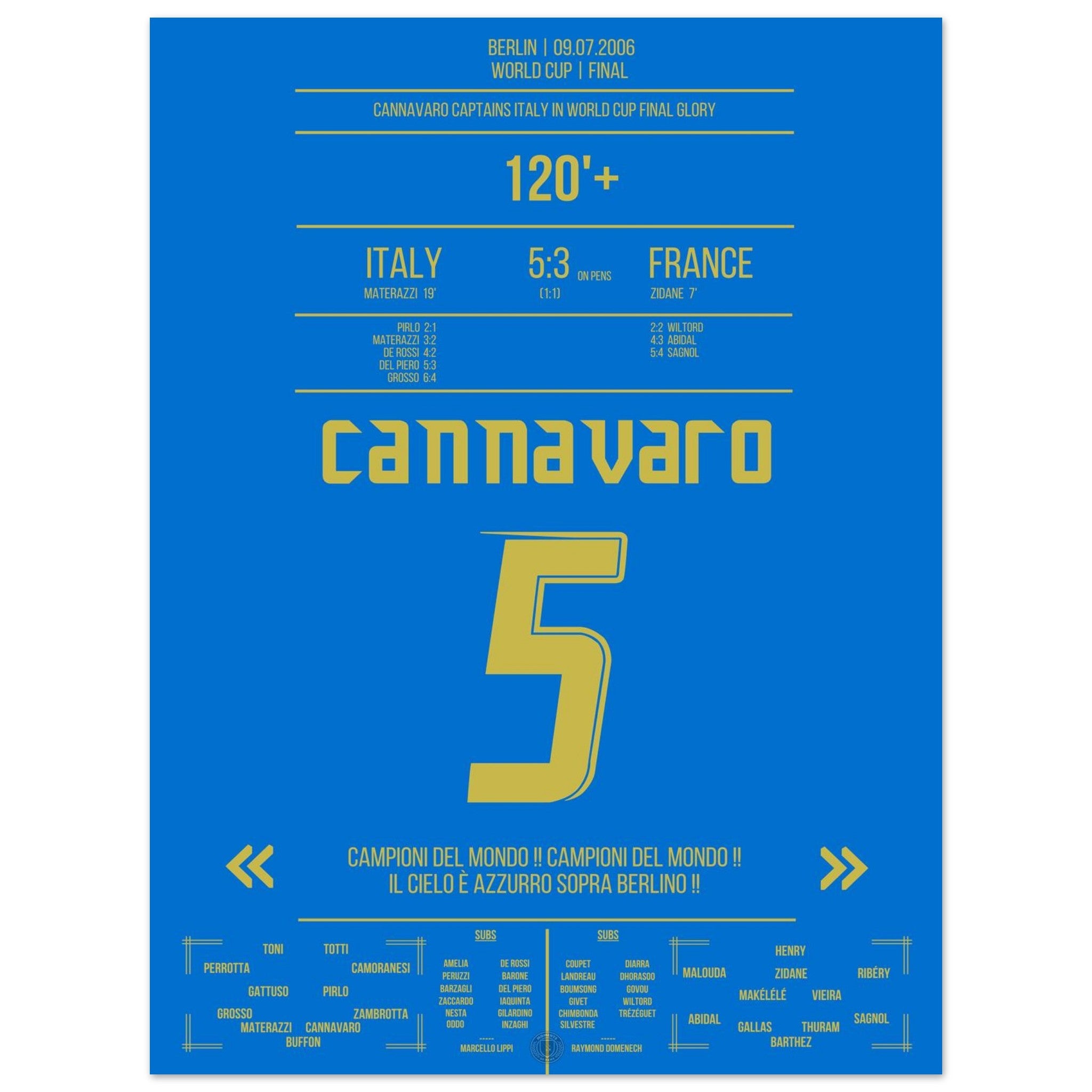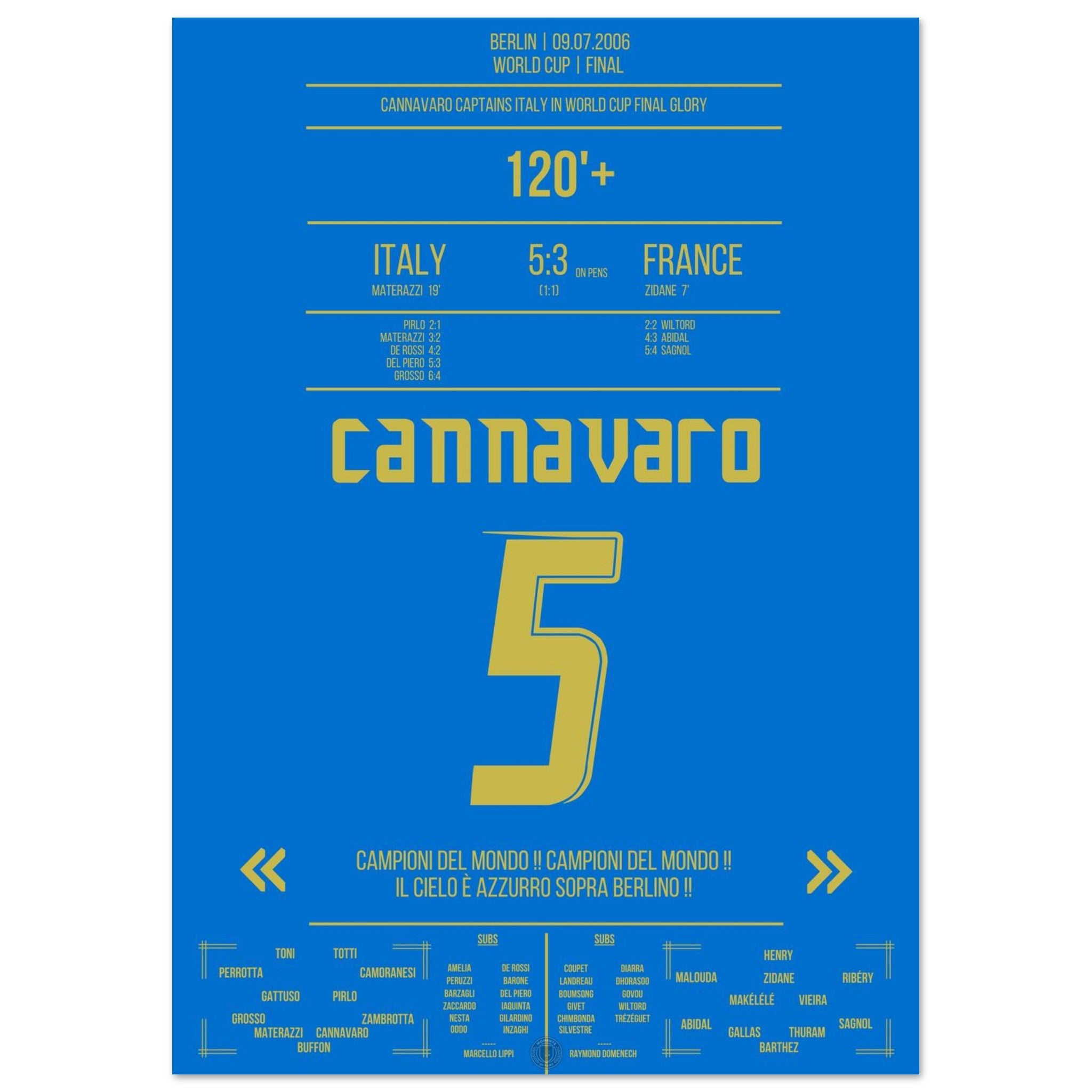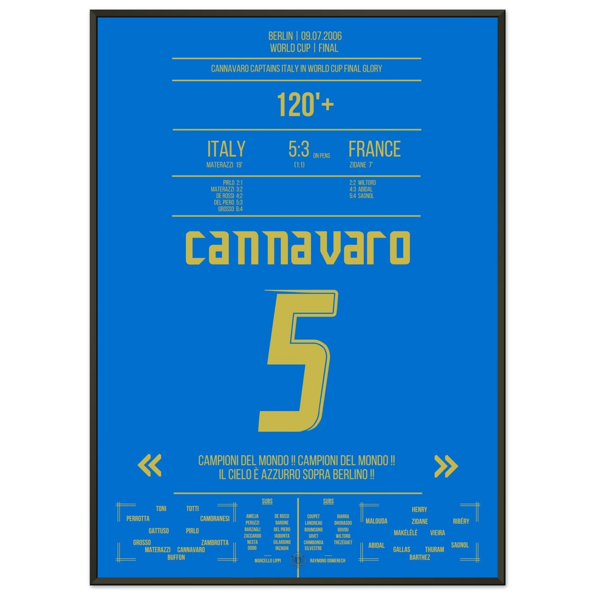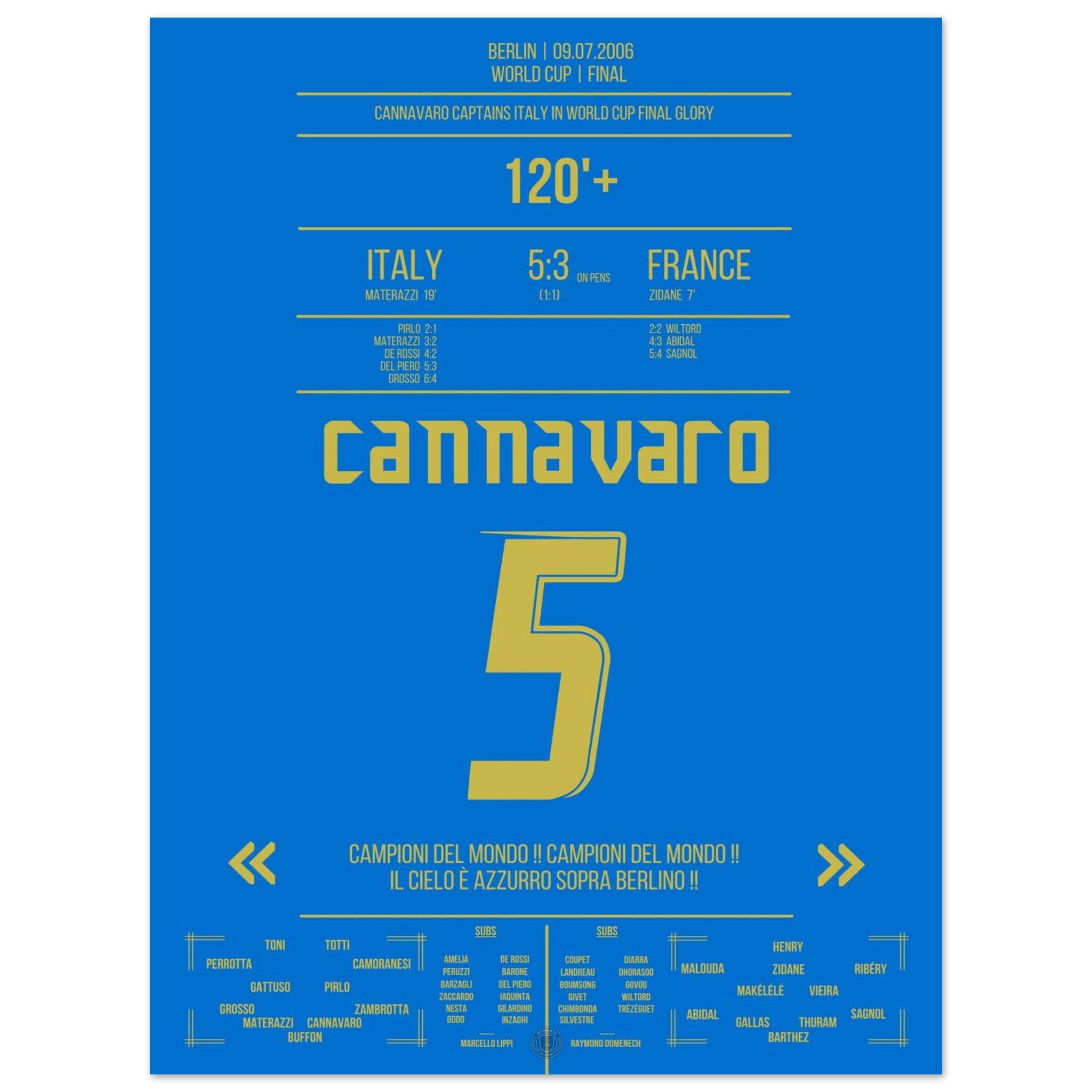Unser Poster feiert diesen unvergesslichen Moment – Cannavaro, der Fels von Berlin und Symbol italienischer Größe. 💙🛡️⚽