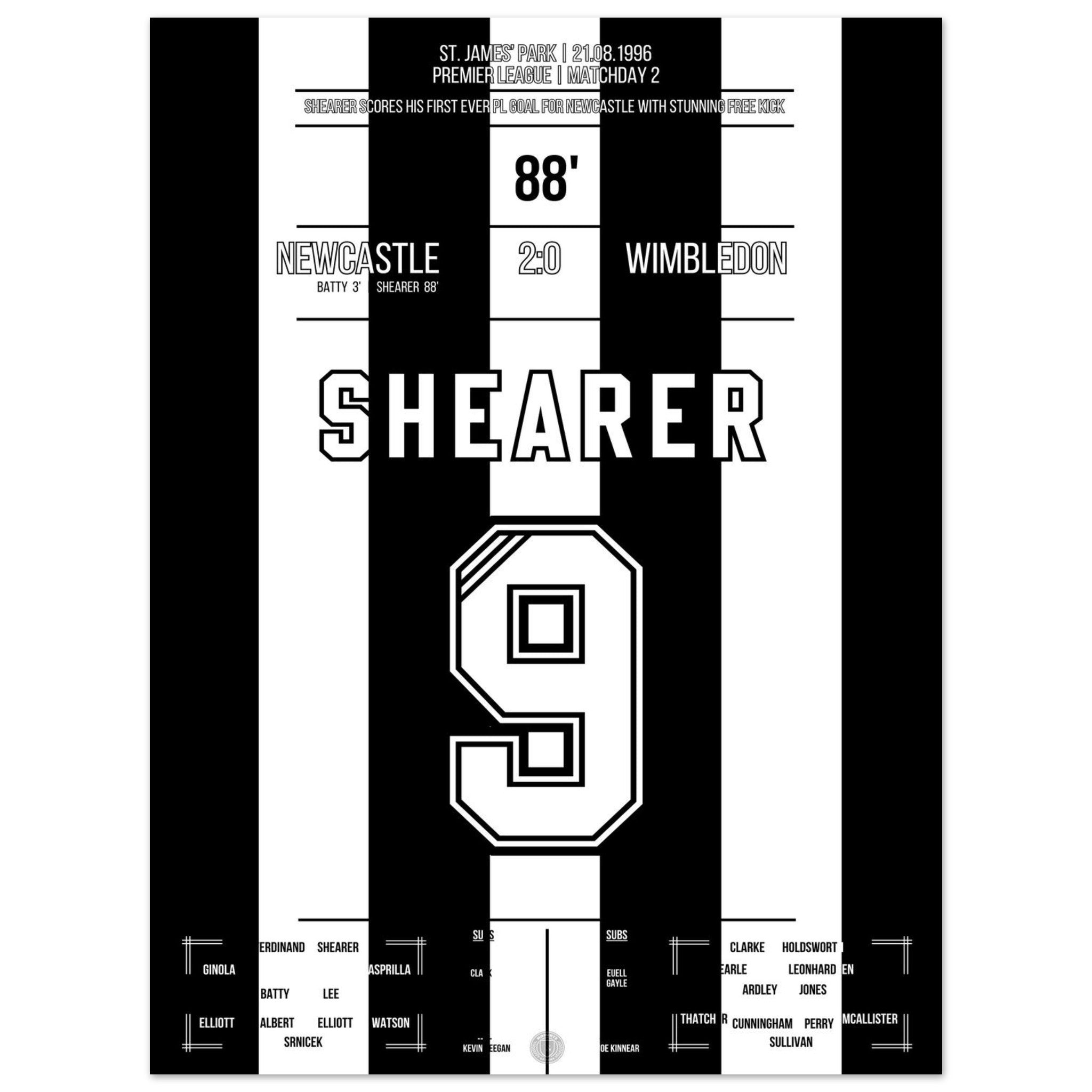 Im Heimspiel gegen Wimbledon erzielt Alan Shearer per Elfmeter sein erstes Pflichtspieltor für Newcastle. Ein Moment voller Symbolkraft – der Beginn einer legendären Ära im schwarz-weißen Trikot.