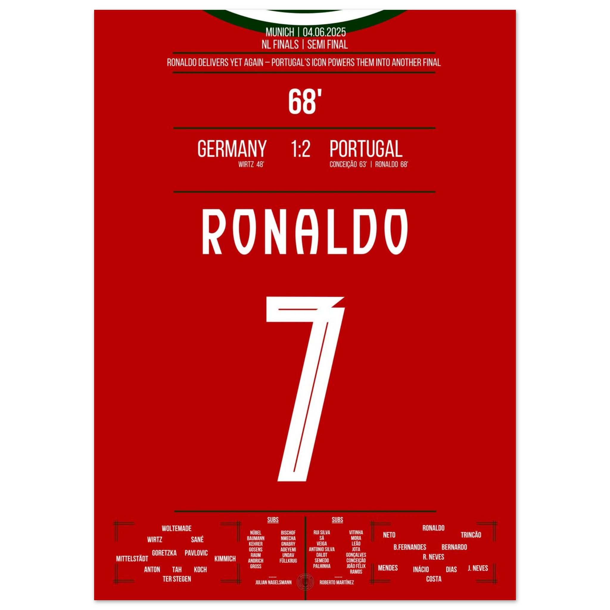 Unser Poster feiert diesen ikonischen Moment – Ronaldo, Präzision, Perfektion und pure Geschichte. 🇵🇹✨