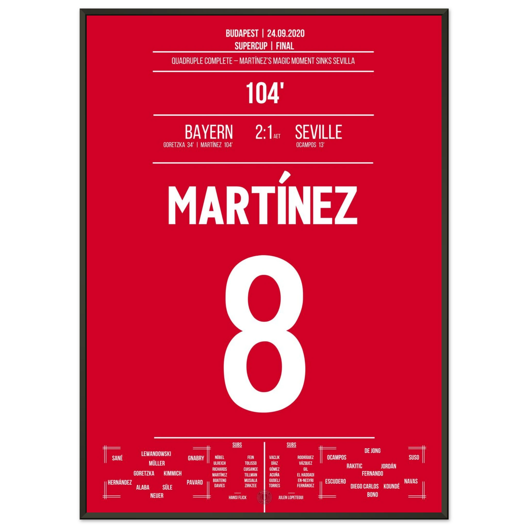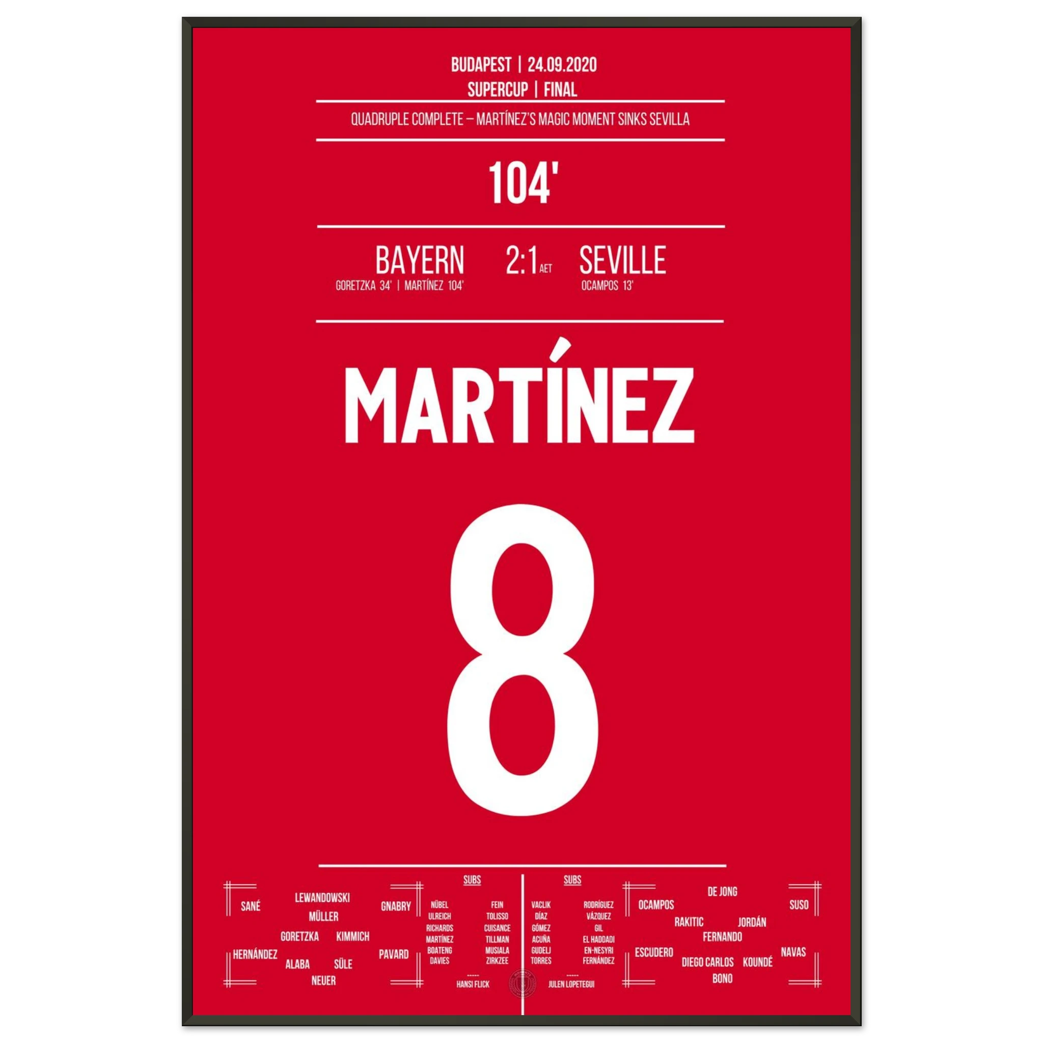 Im europäischen Supercup sorgt Javi Martínez in der 104. Minute für die Entscheidung: Nach einer Ecke steigt er am höchsten und nickt zum 2:1 ein. Mit seinem Treffer sichert er Bayern den vierten Titel des Jahres – das historische Quadruple ist perfekt.