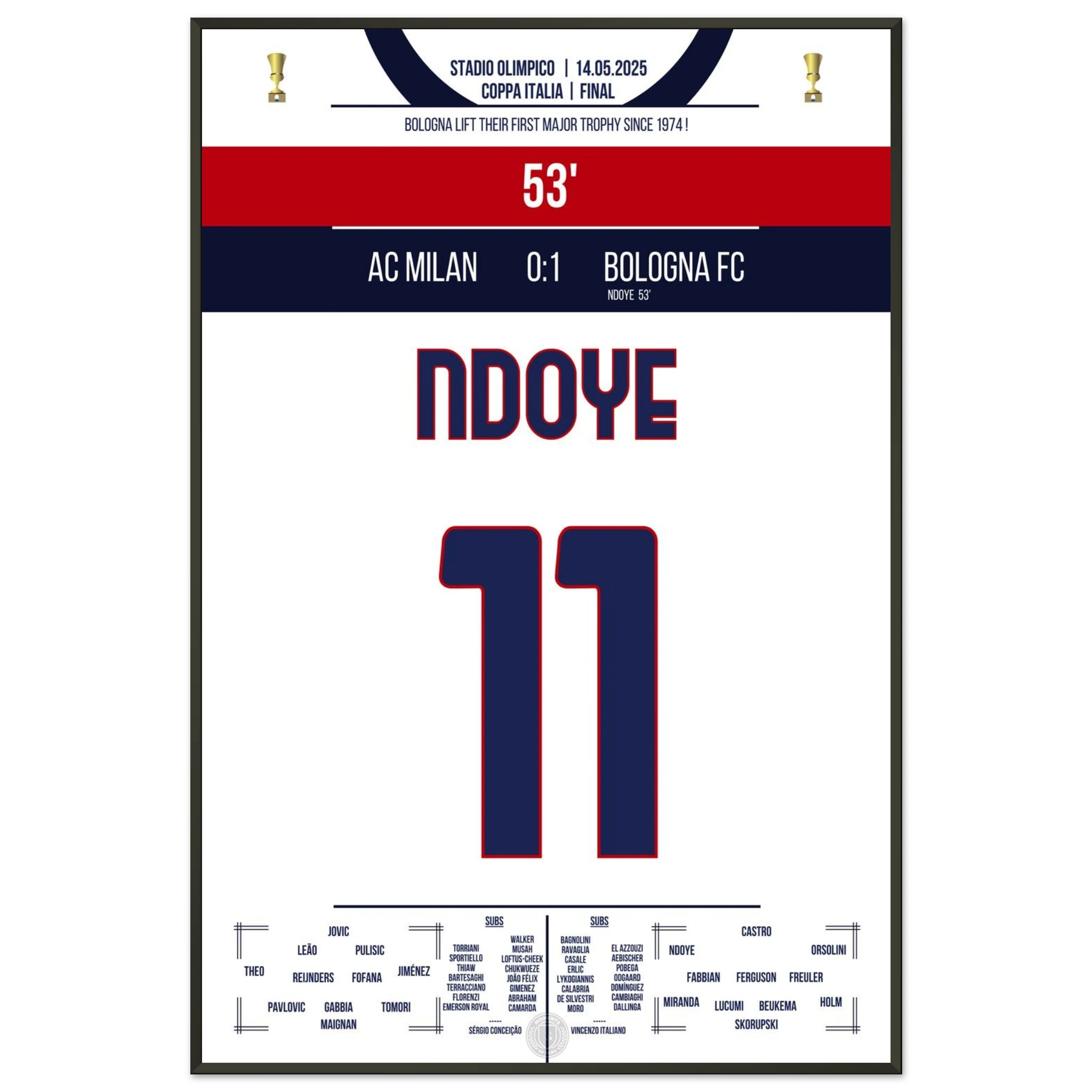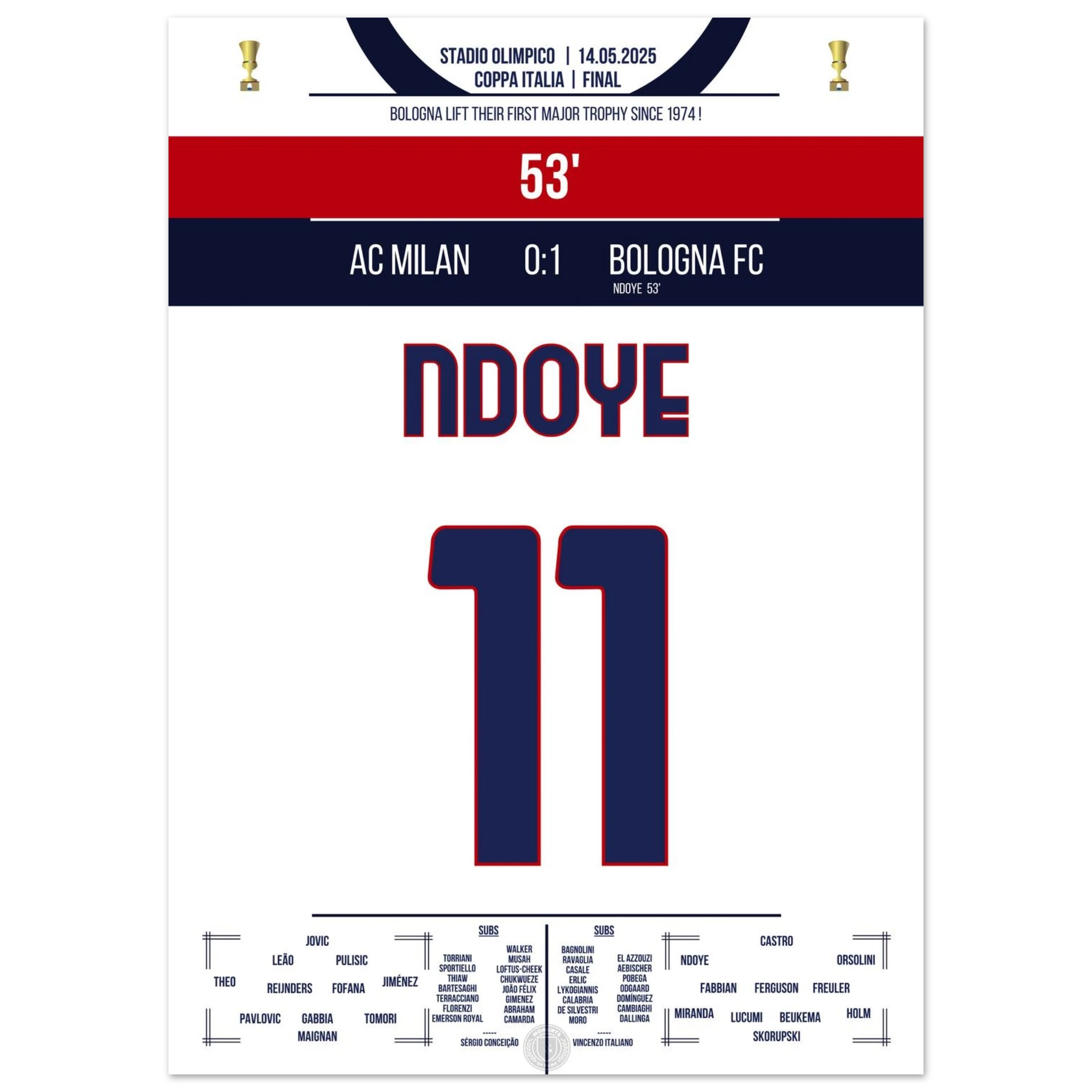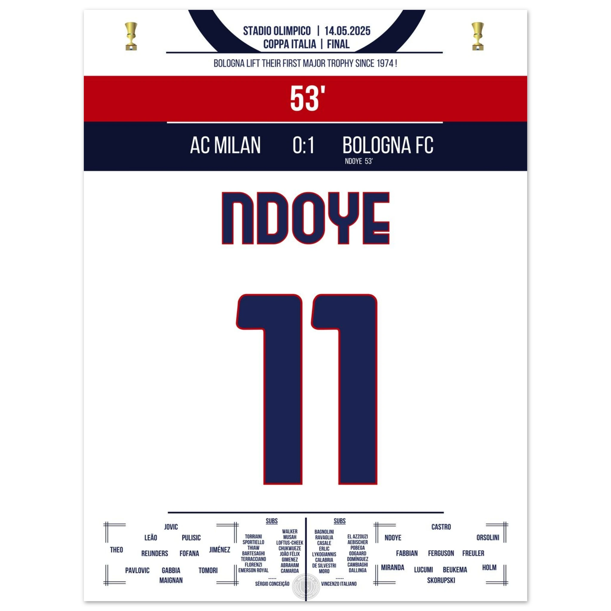 Ndoye leads Bologna to their first cup victory since 1974
