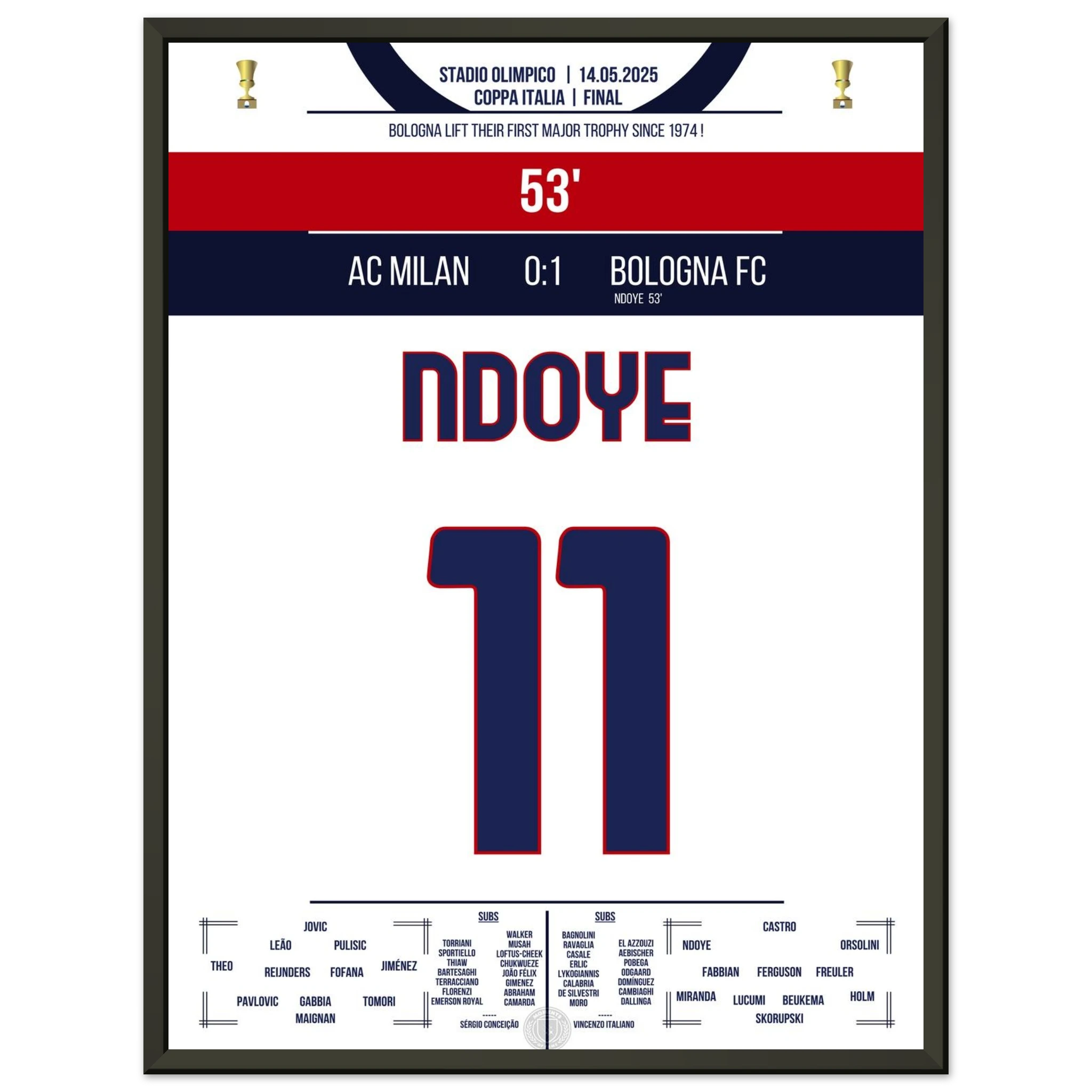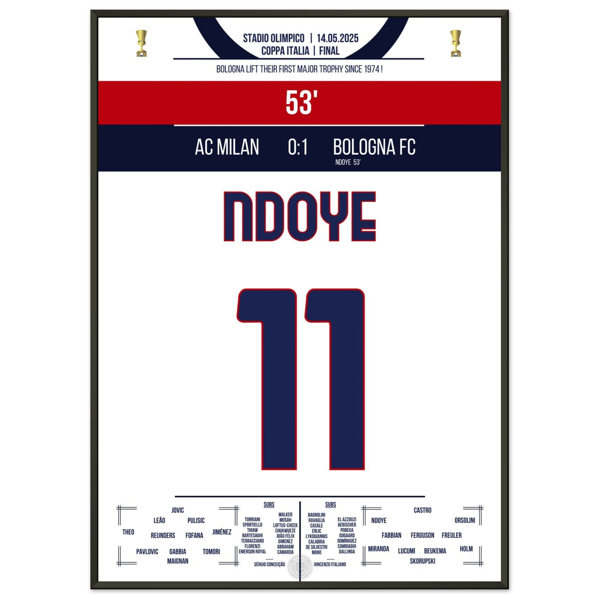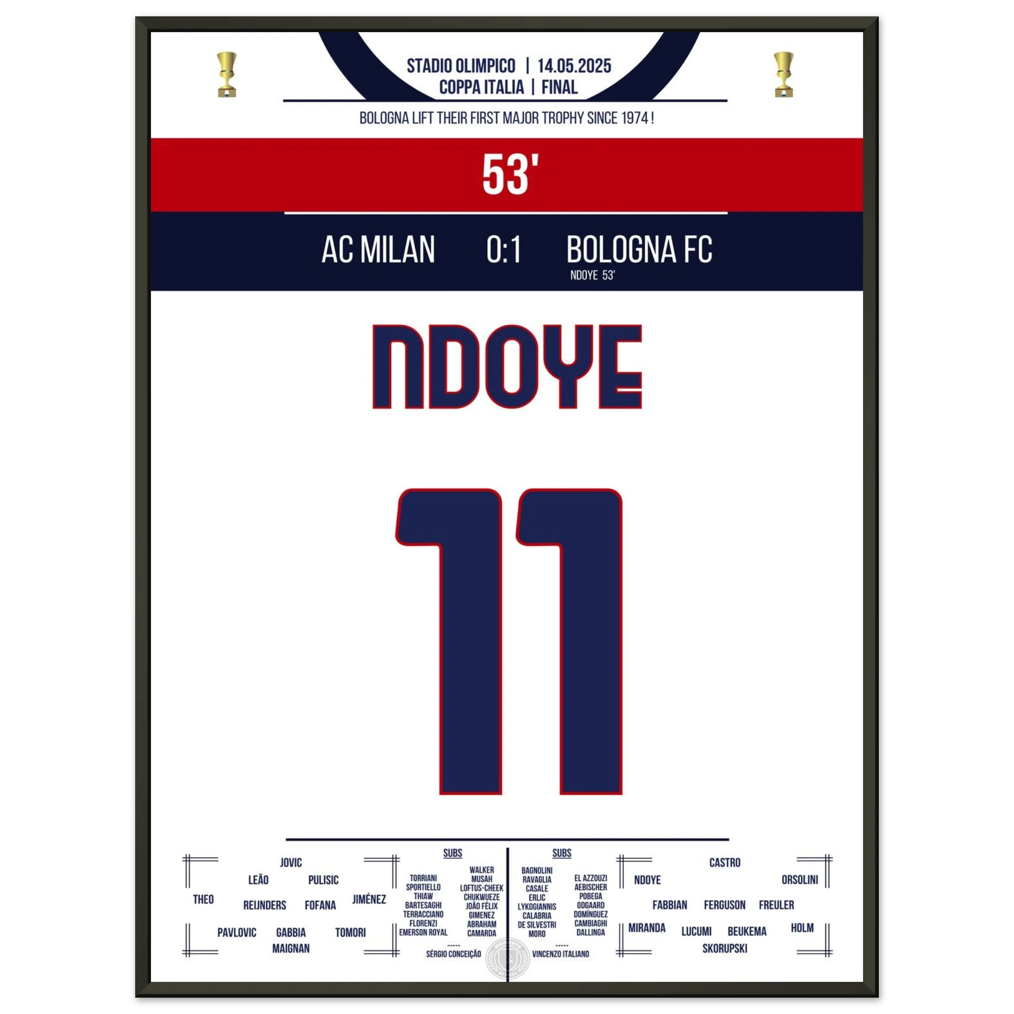 Ndoye leads Bologna to their first cup victory since 1974