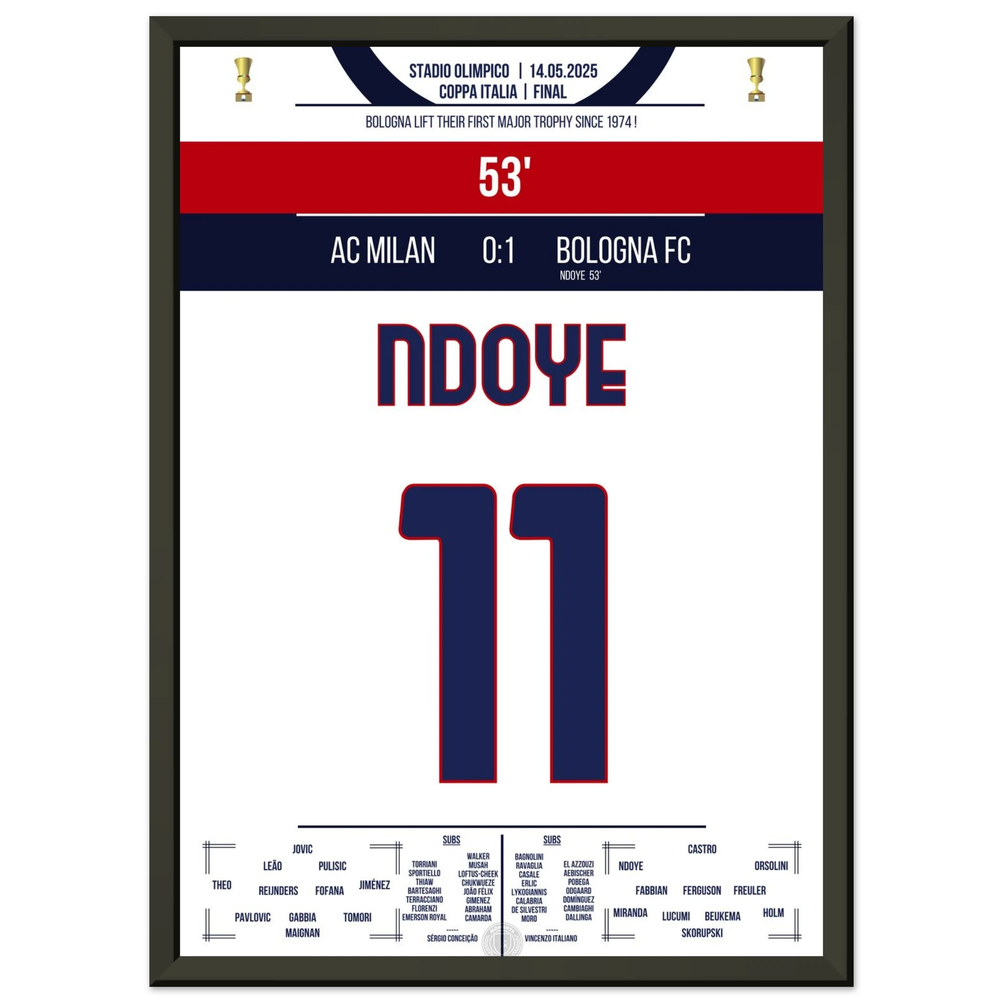 Jedes Poster und jeder Rahmen wird sicher verpackt versandt, sodass sie in einwandfreiem Zustand ankommen. Perfekt für die Sammlung jedes Fußballfans oder als ideales Geschenk!