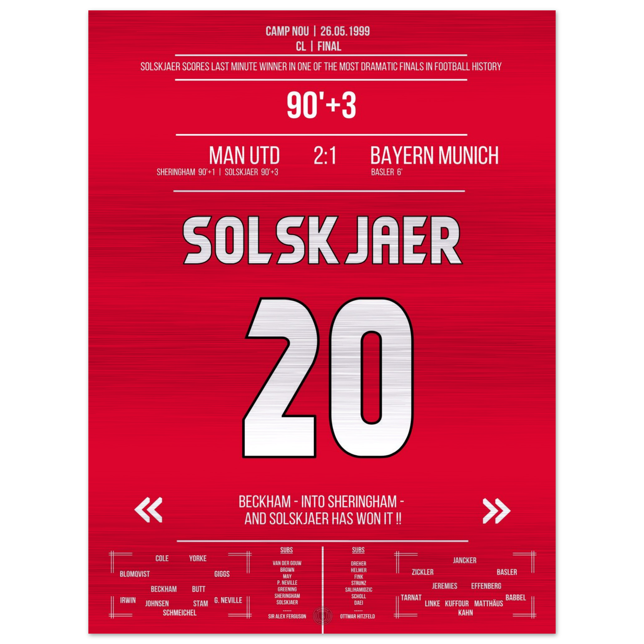 Solskjaer trifft im denkwürdigsten Comeback der Geschichte im Finale 1999 gegen Bayern