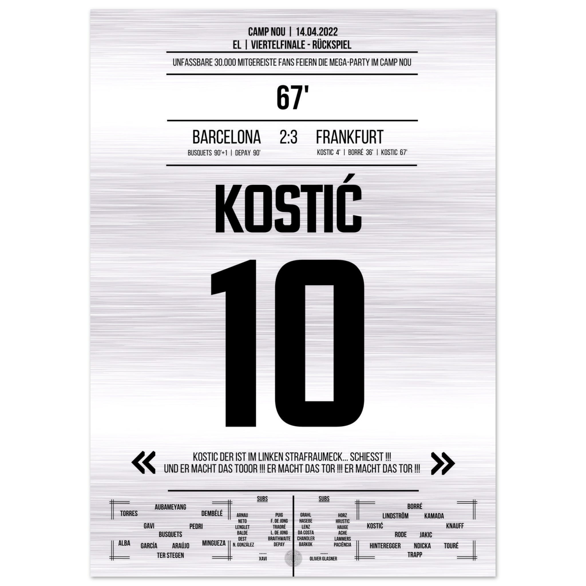 Kostic's Galavorstellung bei Frankfurt's großer Party im Camp Nou