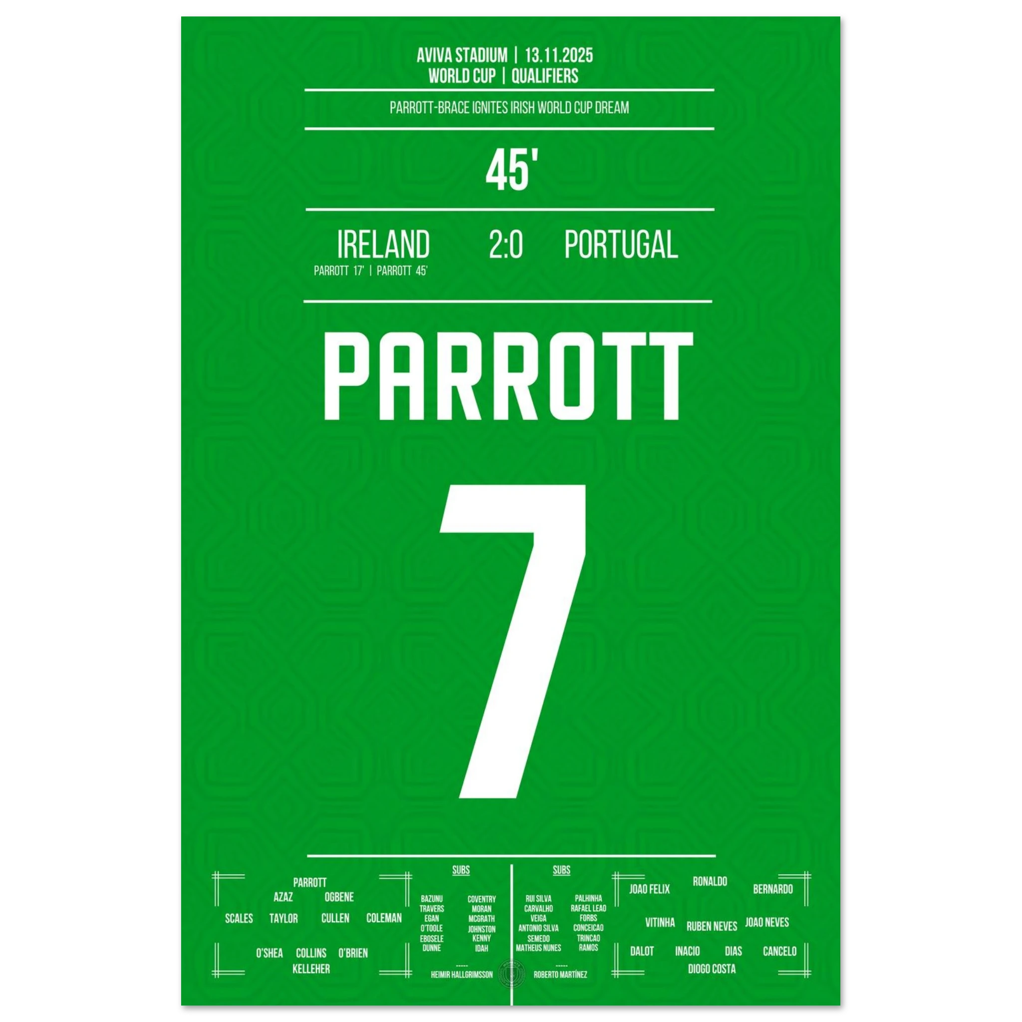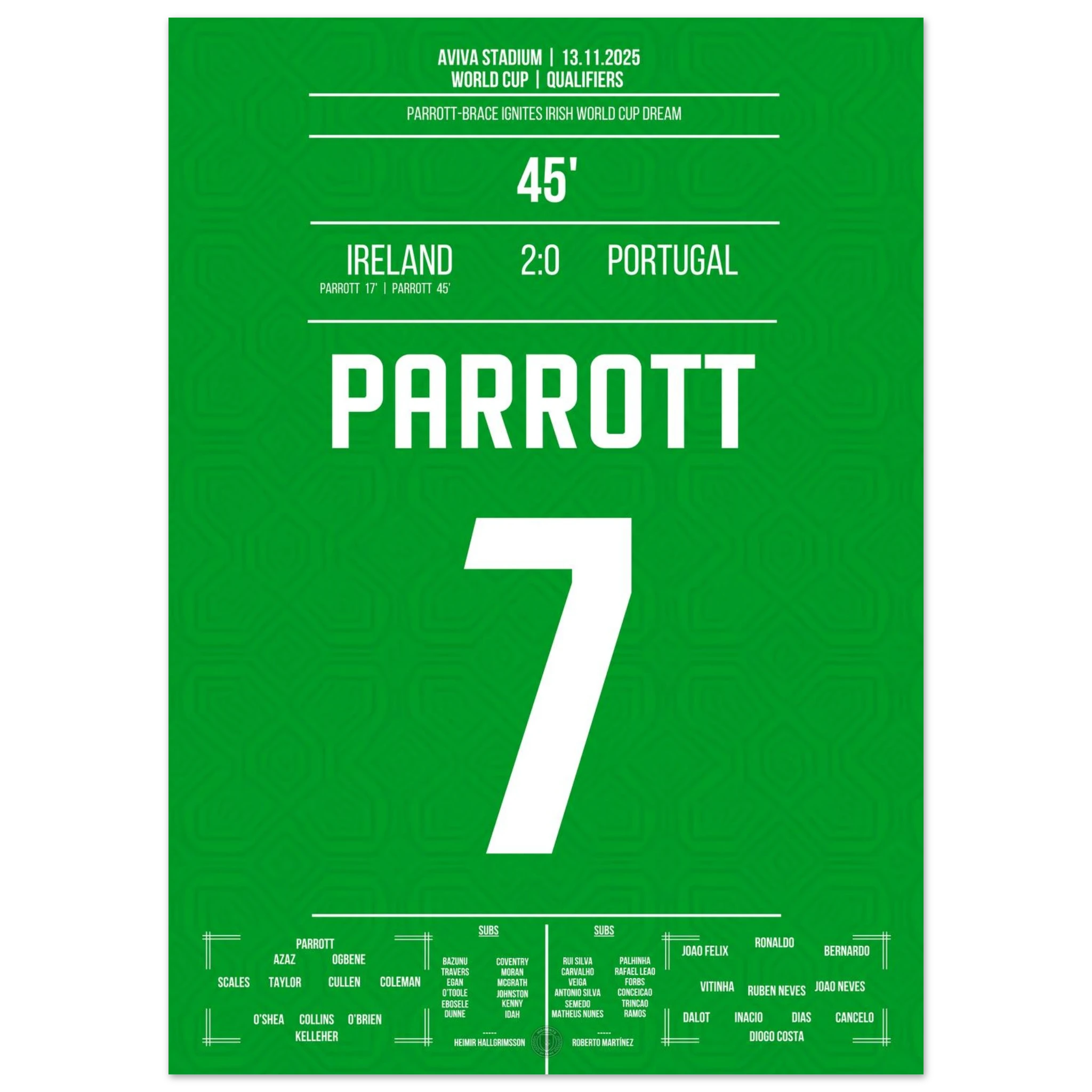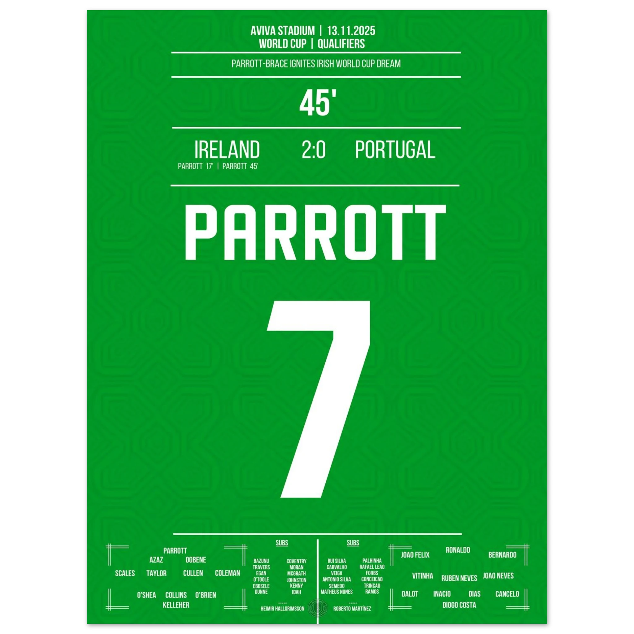 Unser Poster feiert diesen historischen Moment – Parrotts Triumphnacht in Grün. 🇮🇪🔥