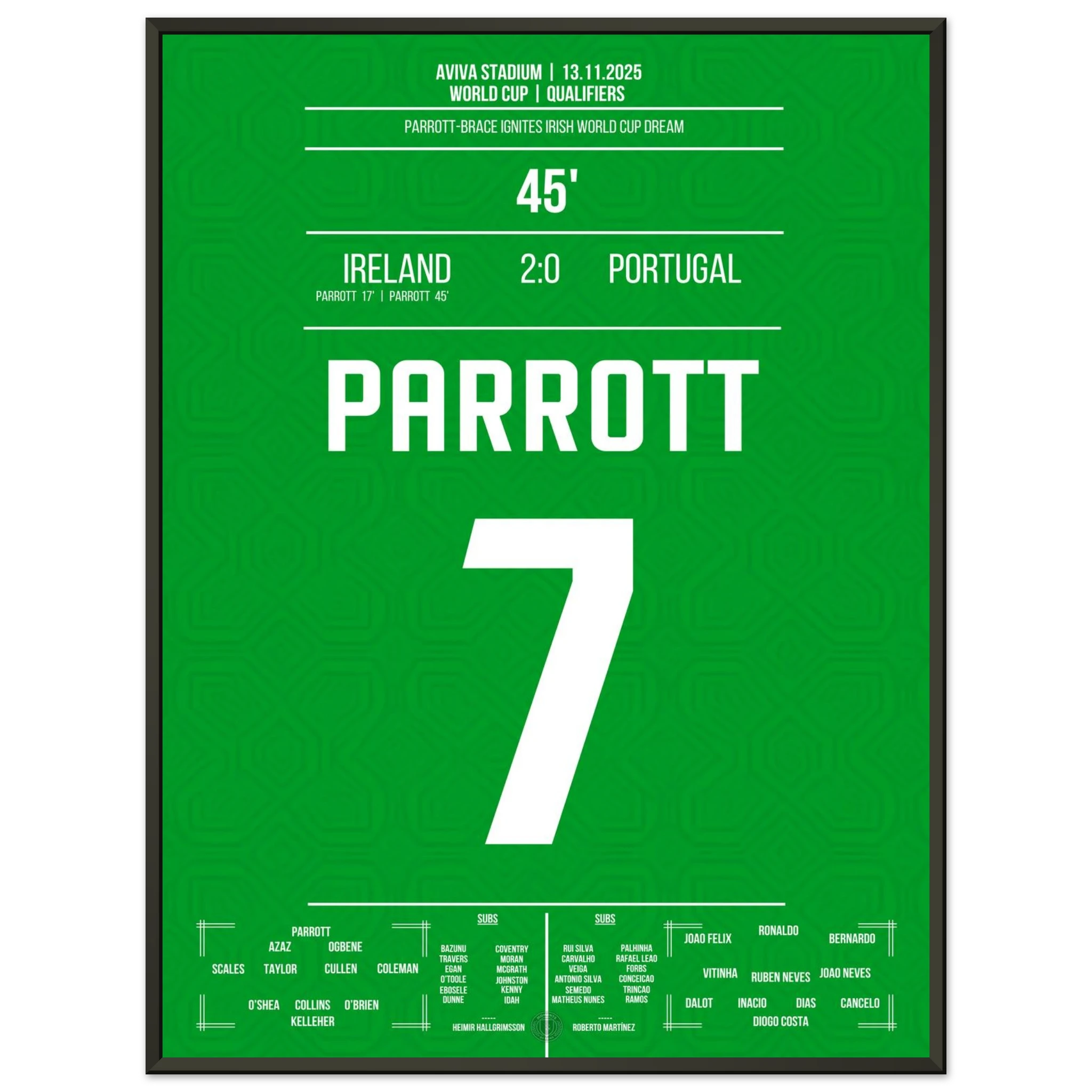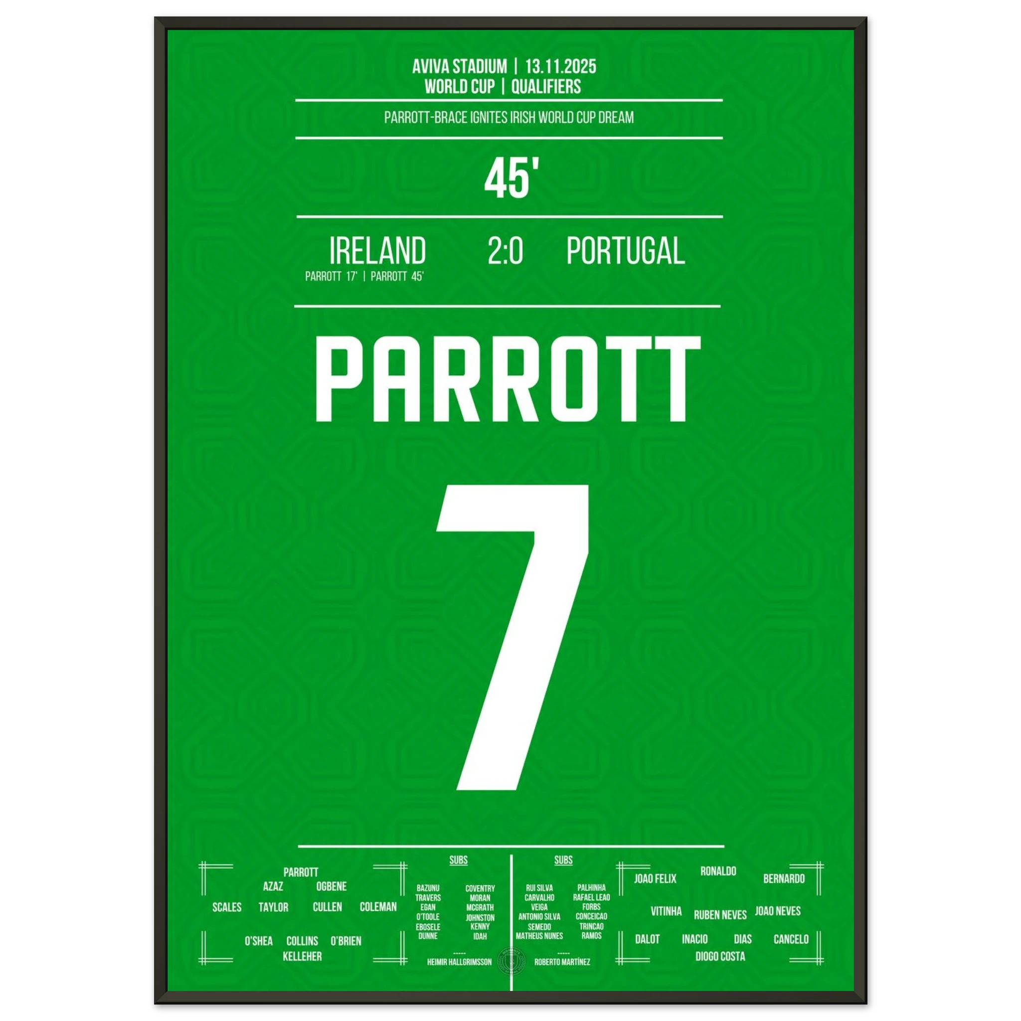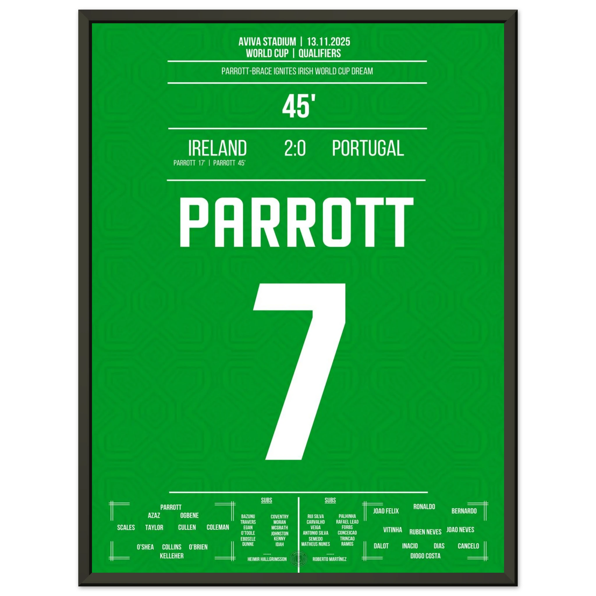 Unser Poster feiert diesen historischen Moment – Parrotts Triumphnacht in Grün. 🇮🇪🔥