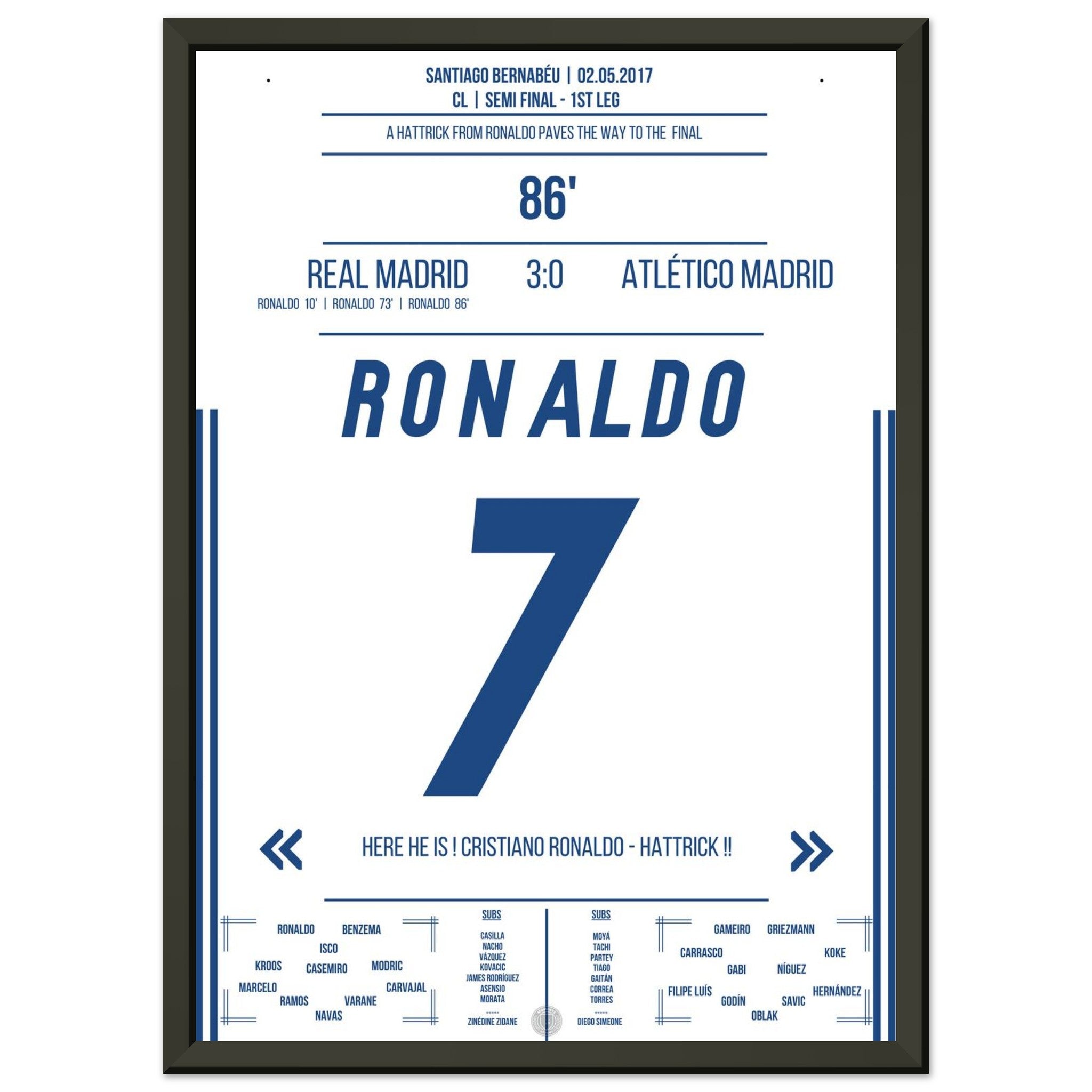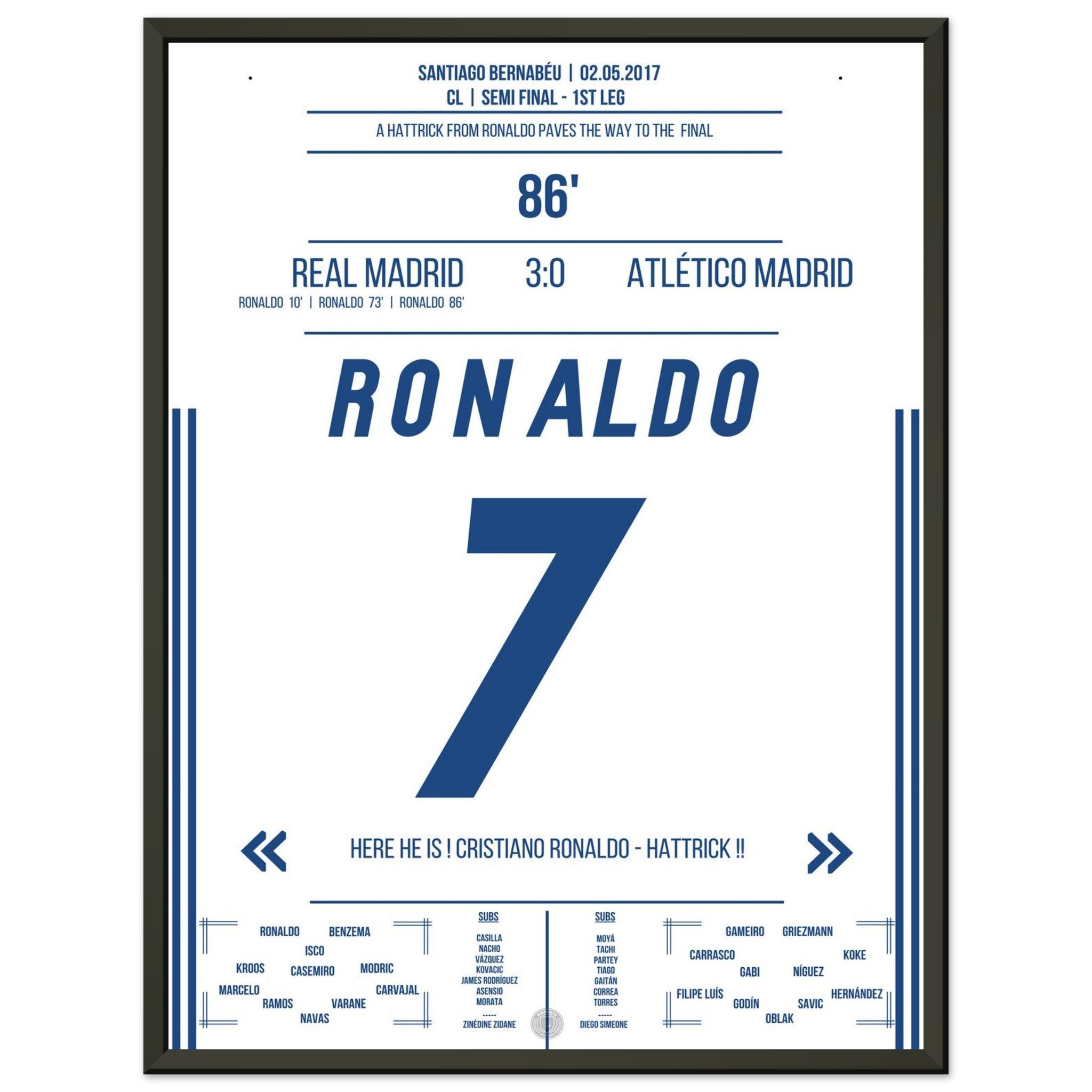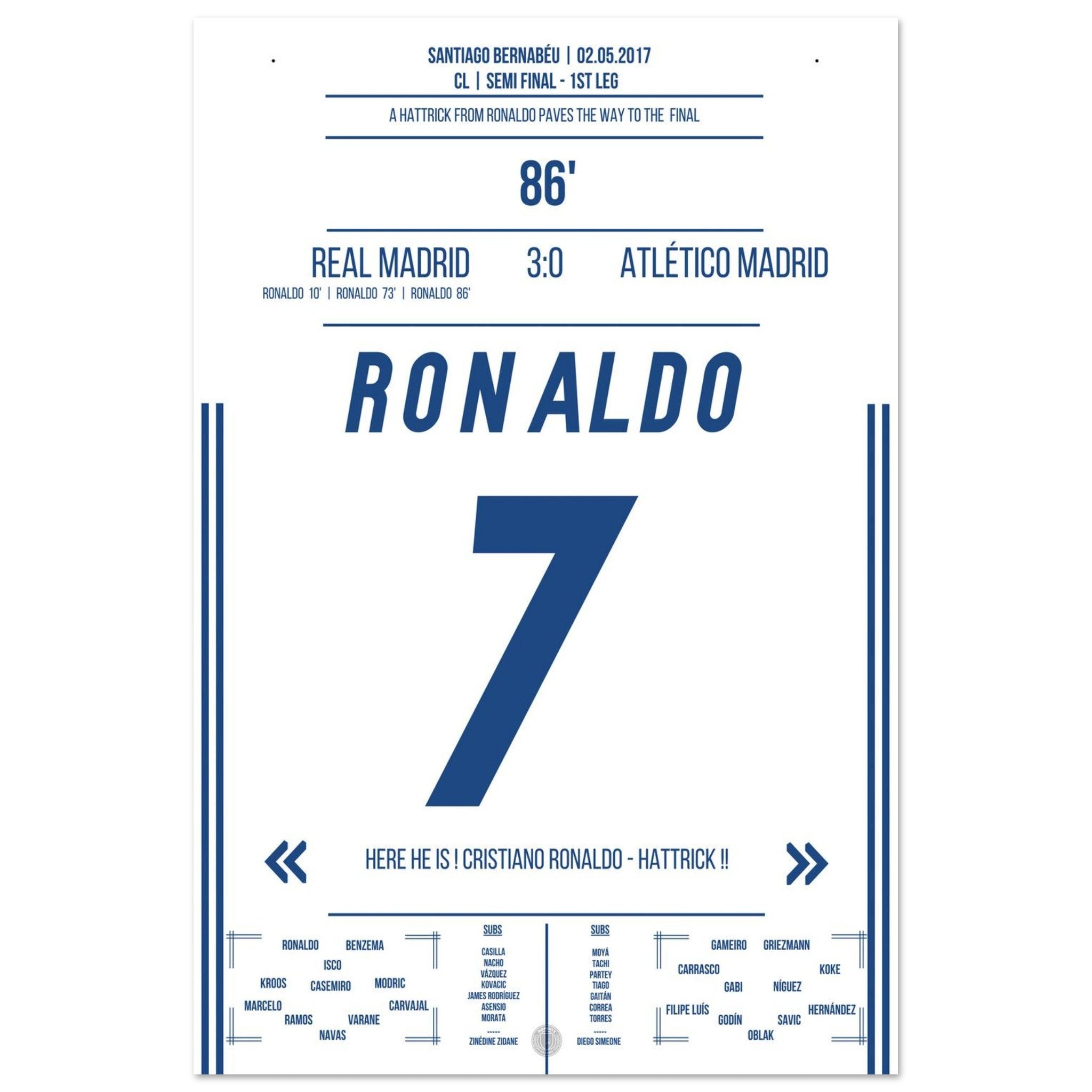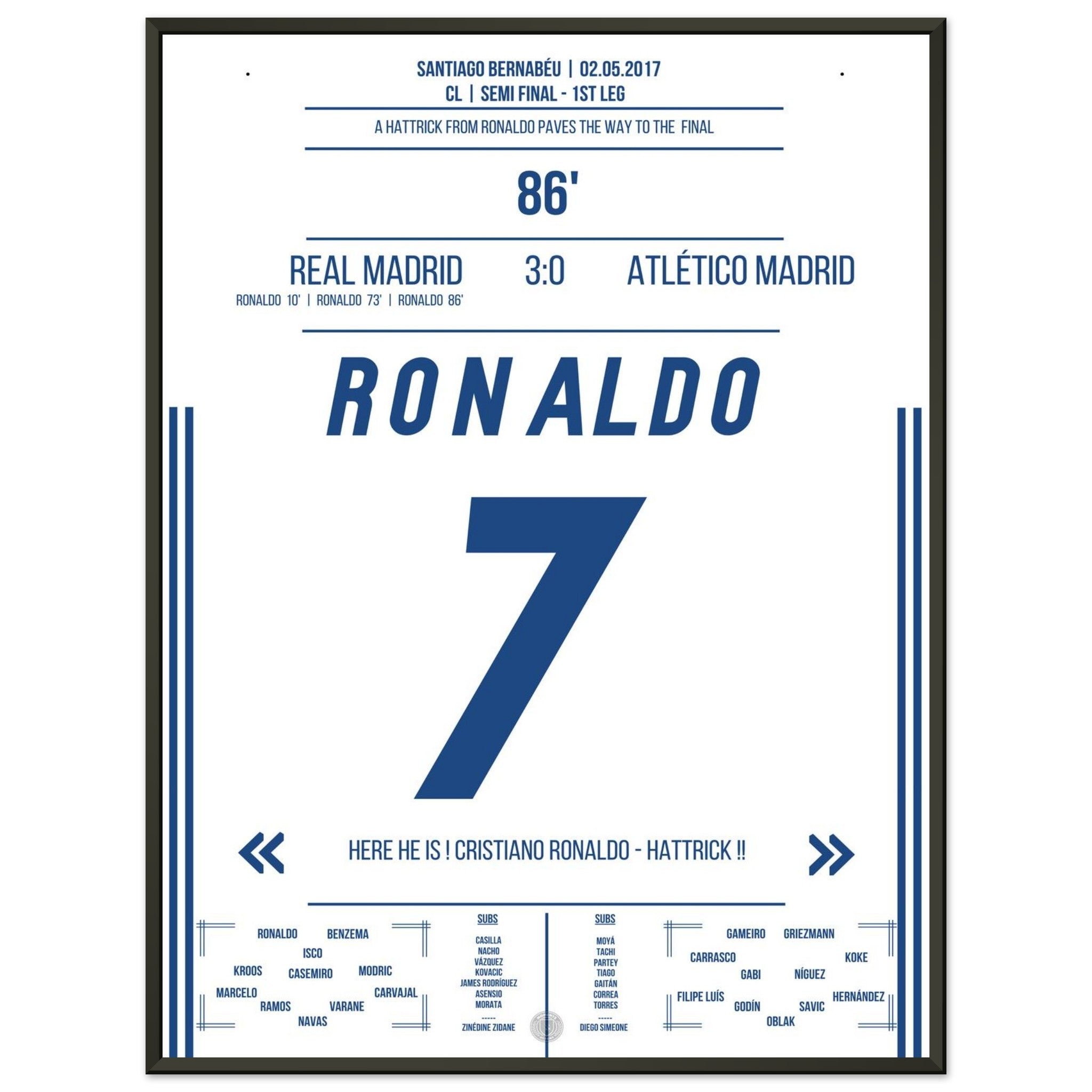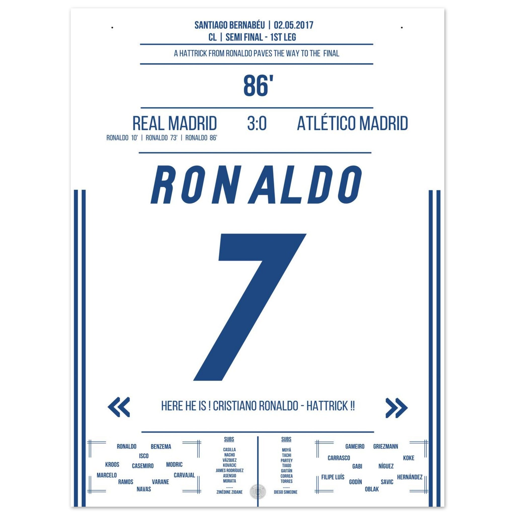 Ronaldo's hat-trick in the semi-final first leg against Atletico in 2017