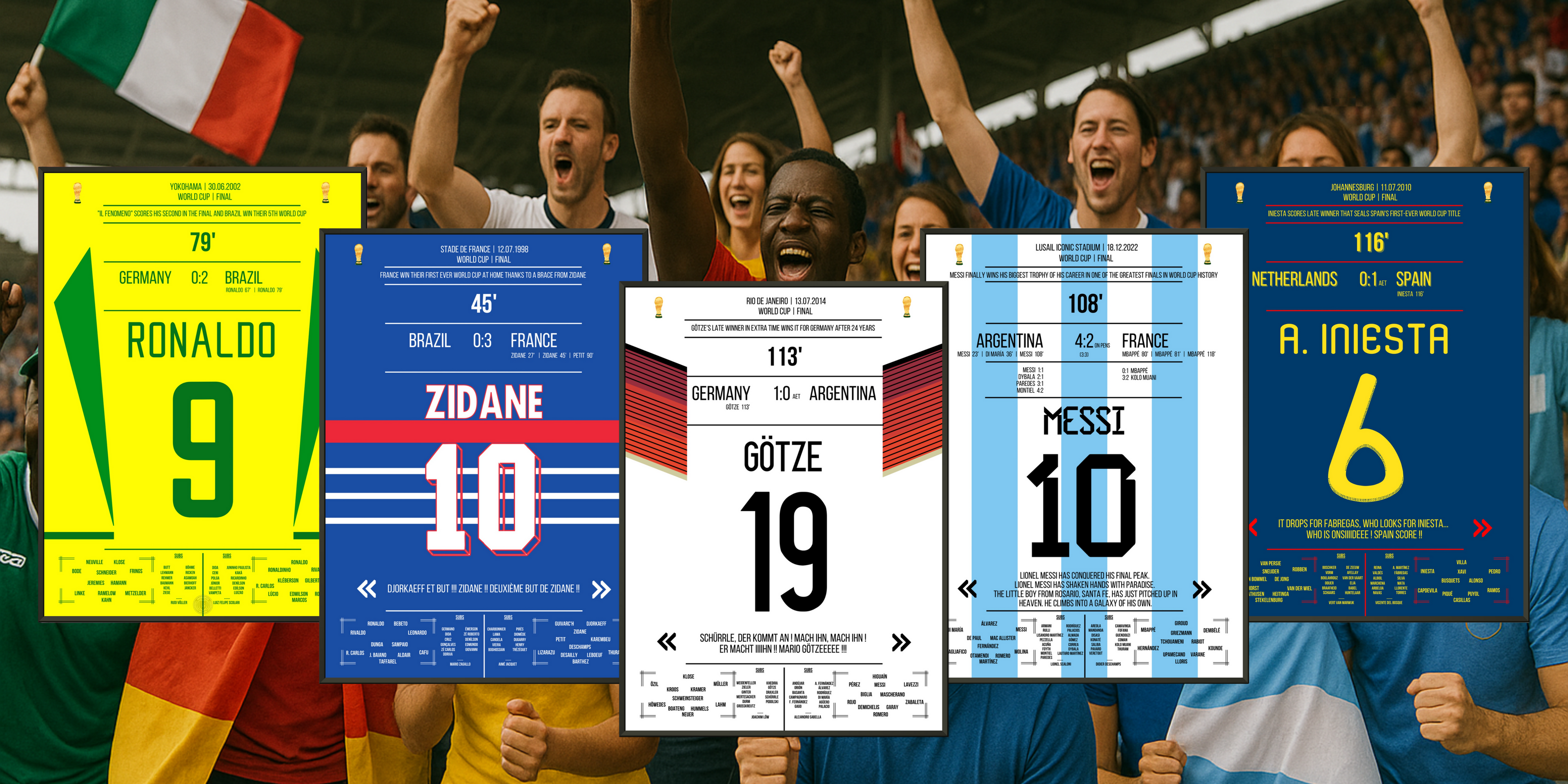 Hier findest du emotionale Tore, historische Finalspiele und unvergessliche Szenen aus über 40 Jahren WM-Geschichte. Ideal für Fans, Sammler – und Wohnzimmer mit Charakter.