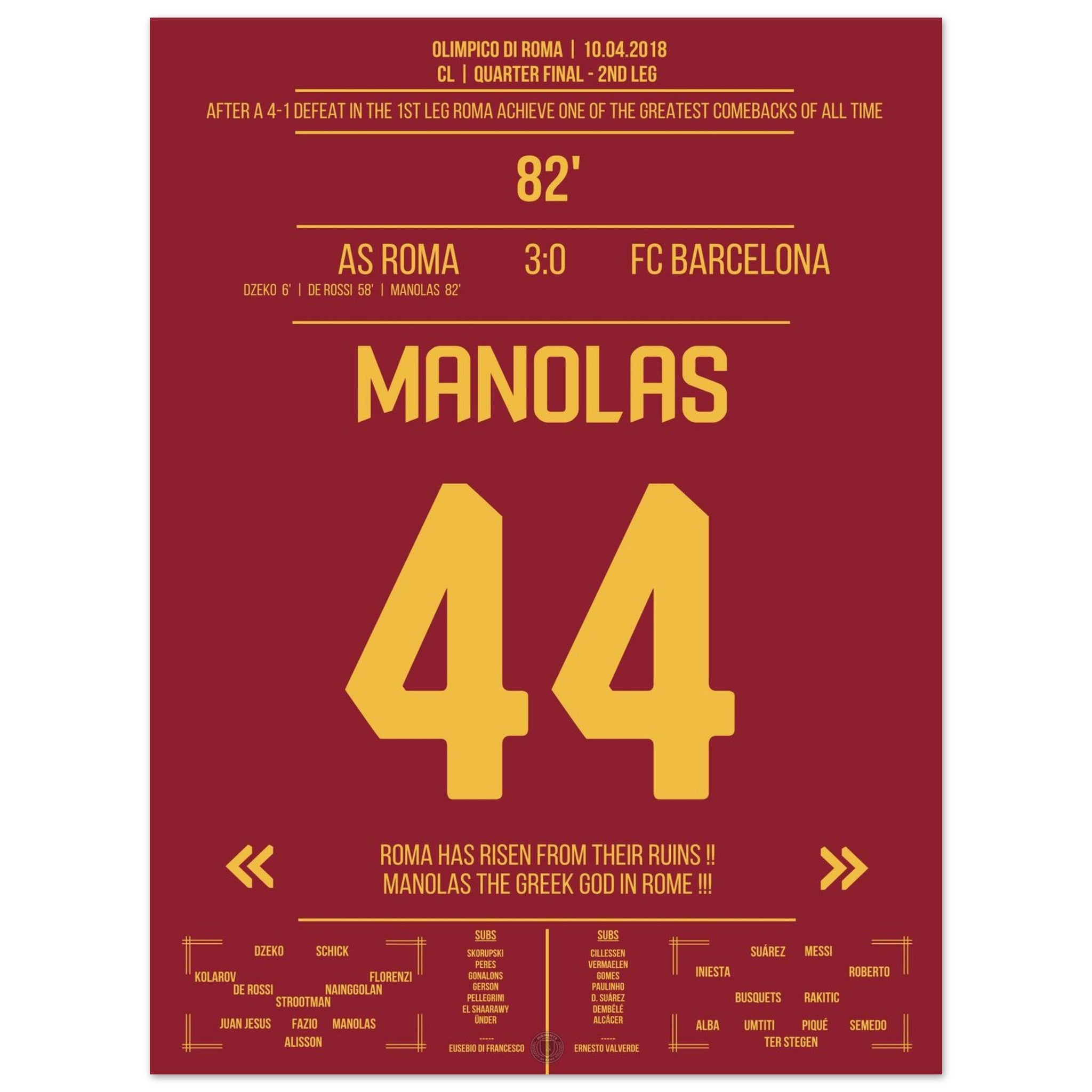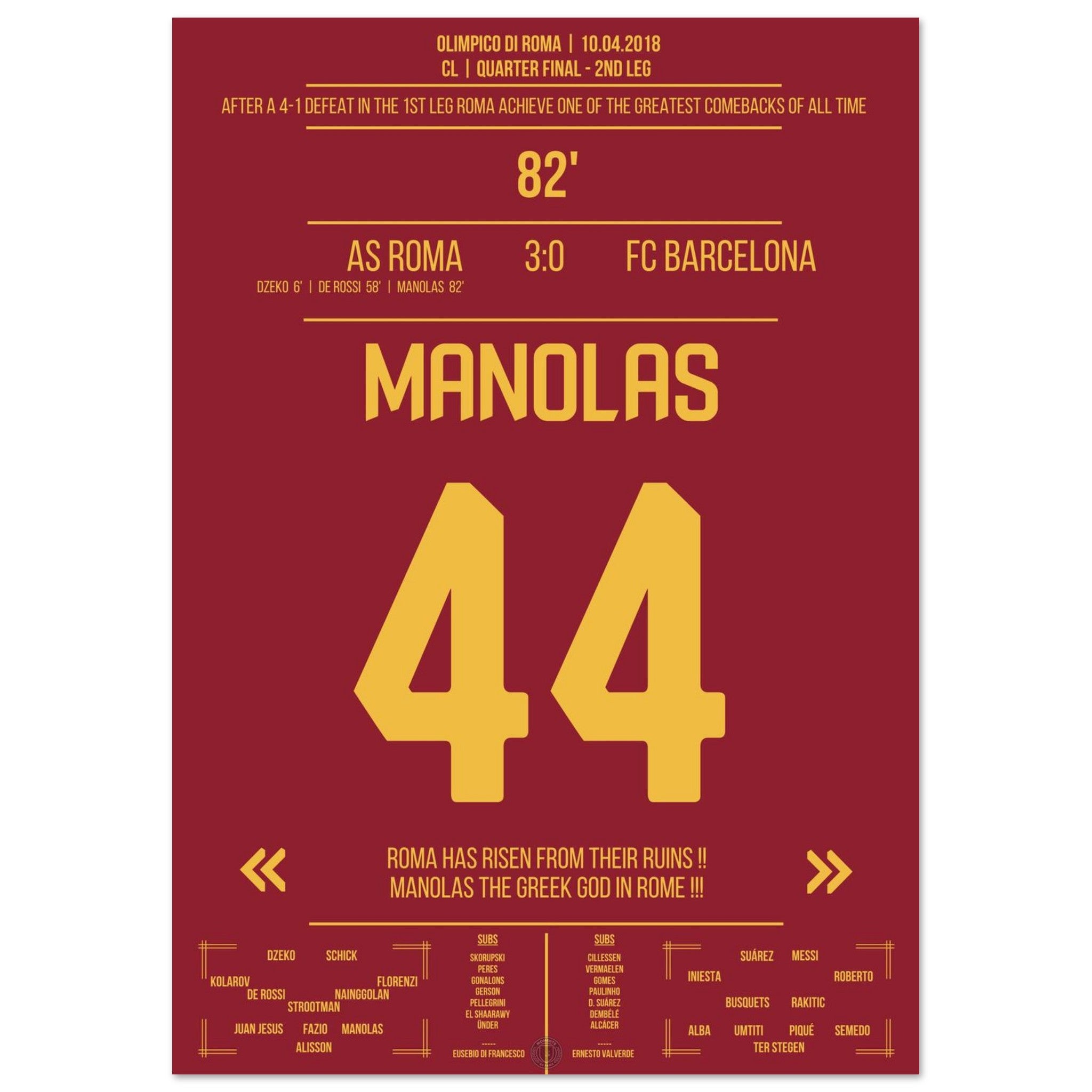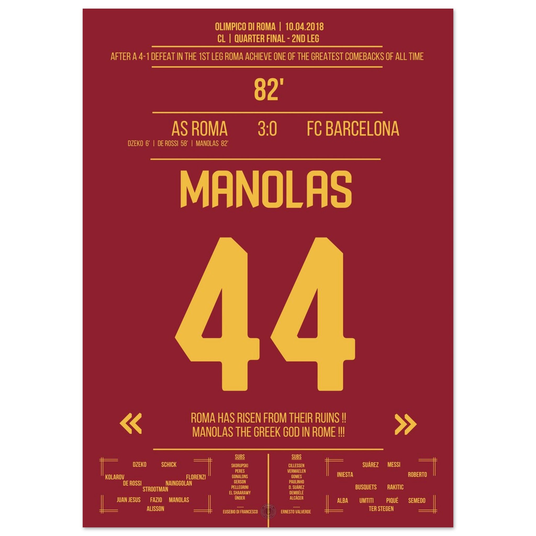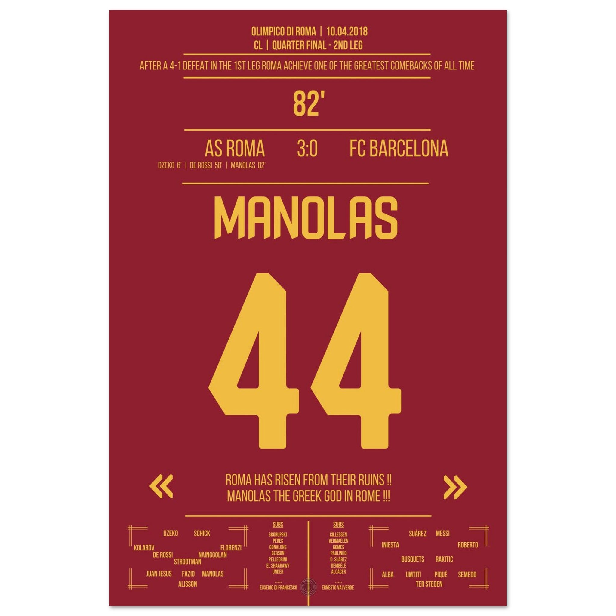 Roma achieves the miracle against Barcelona - Manolas' header goal into the semifinals.