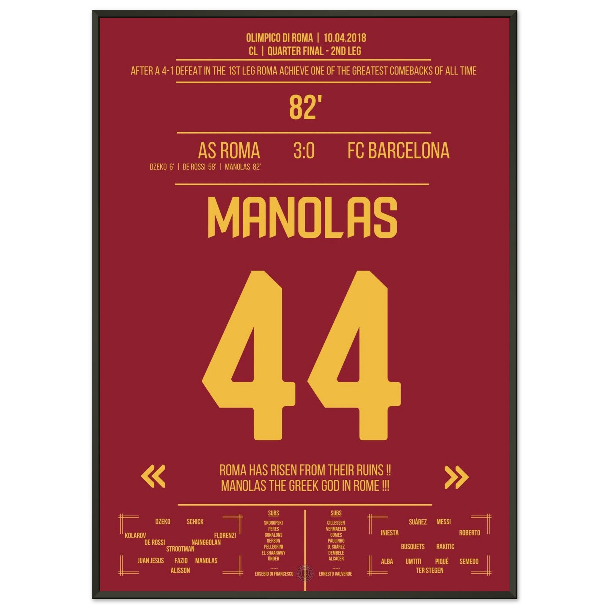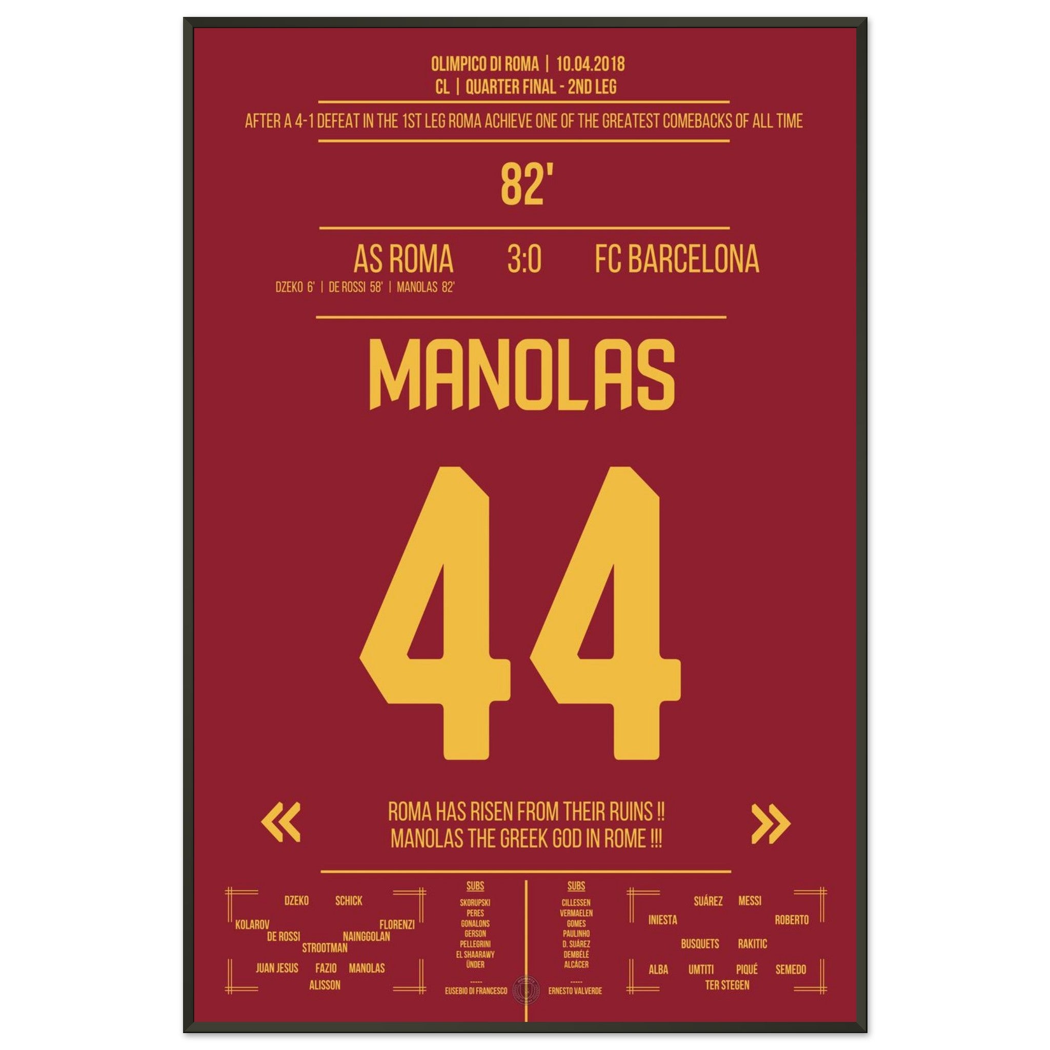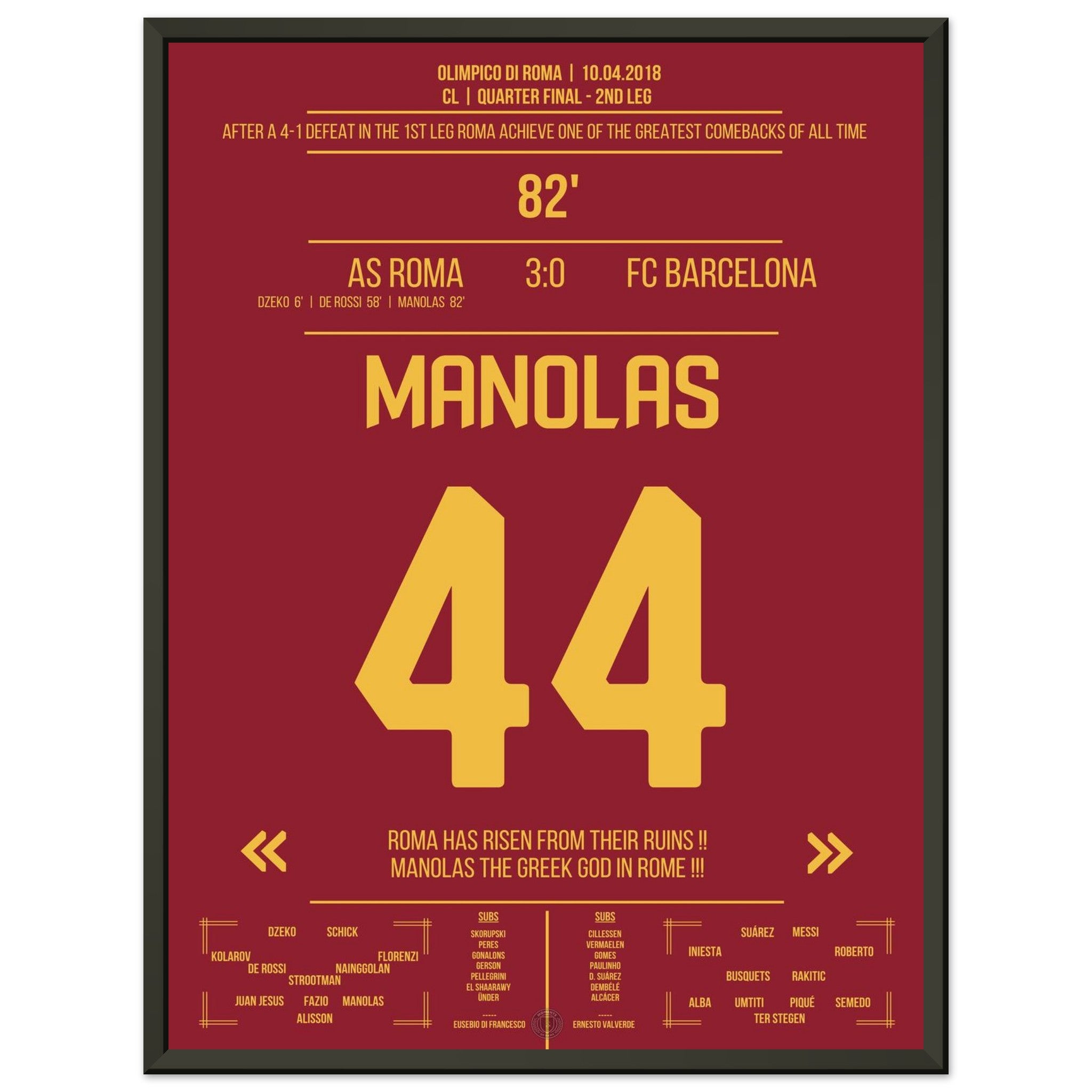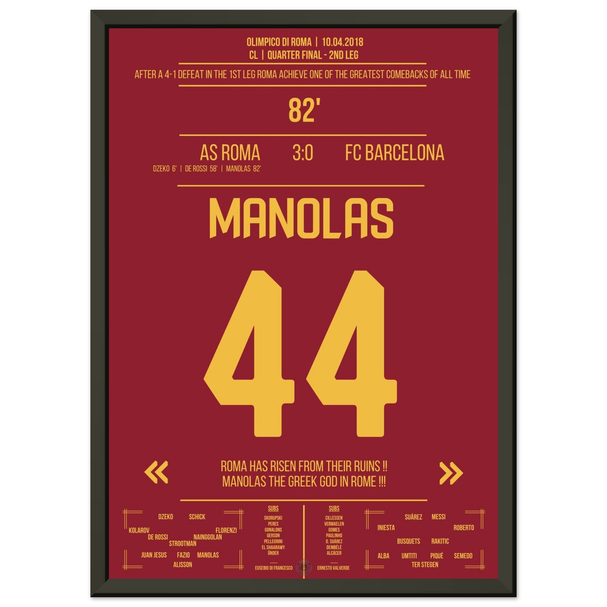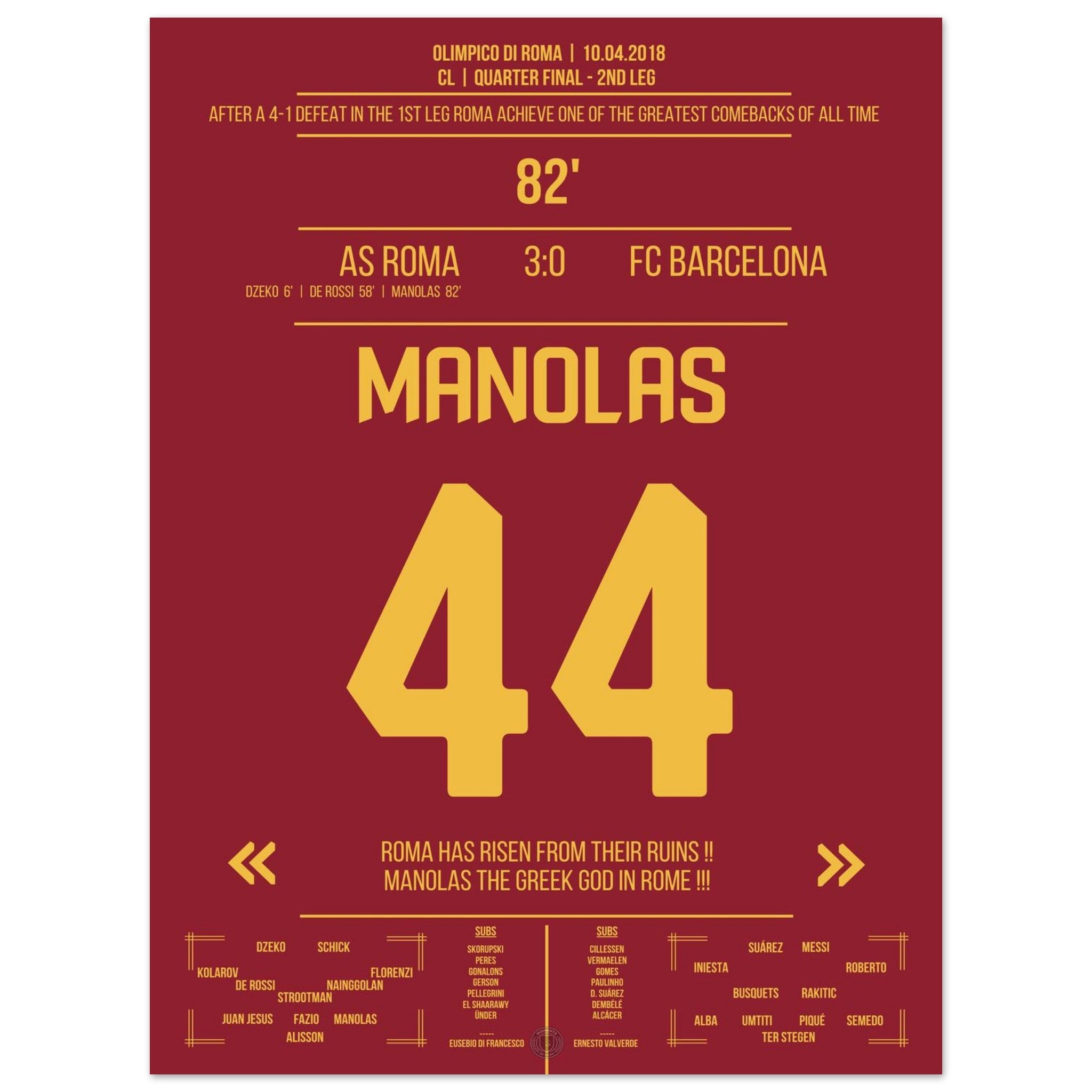 Roma achieves the miracle against Barcelona - Manolas' header goal into the semifinals.