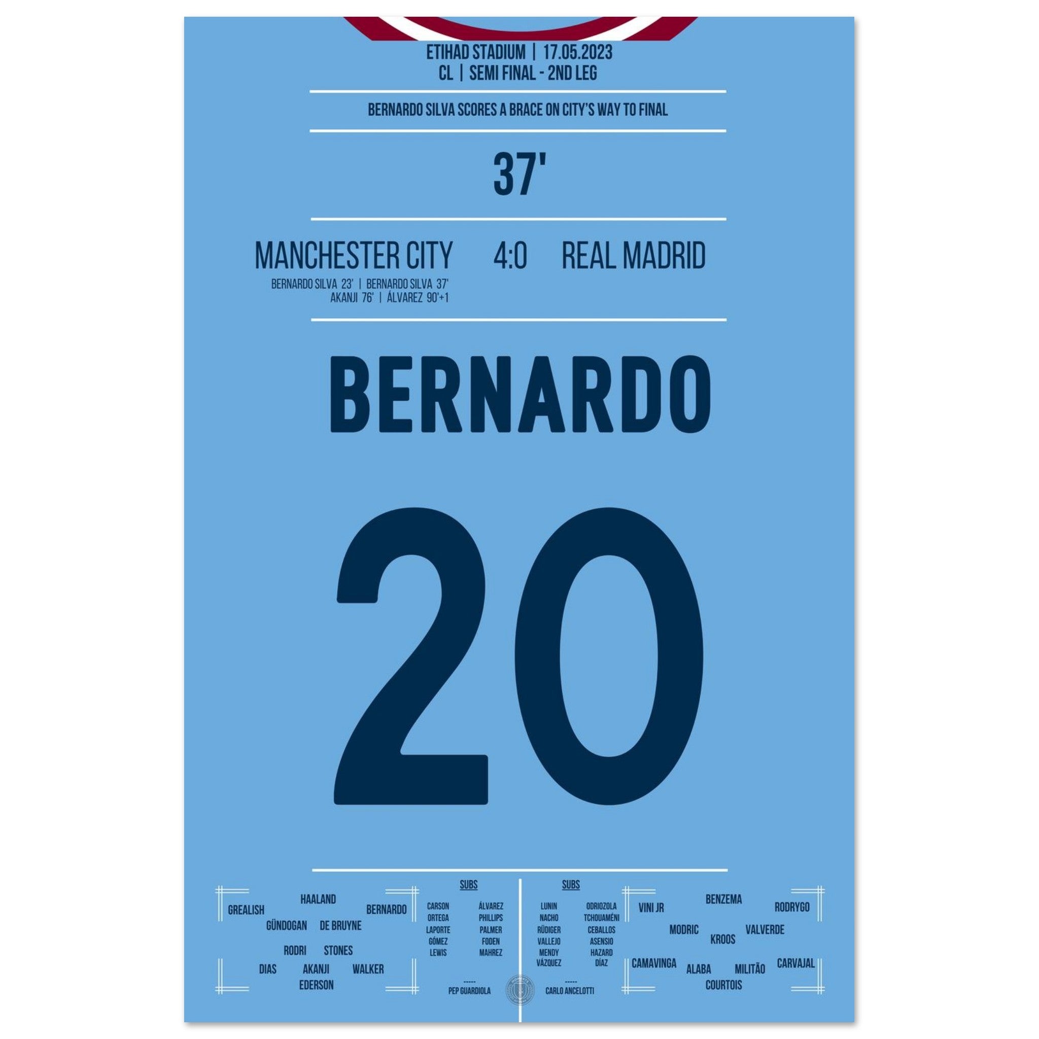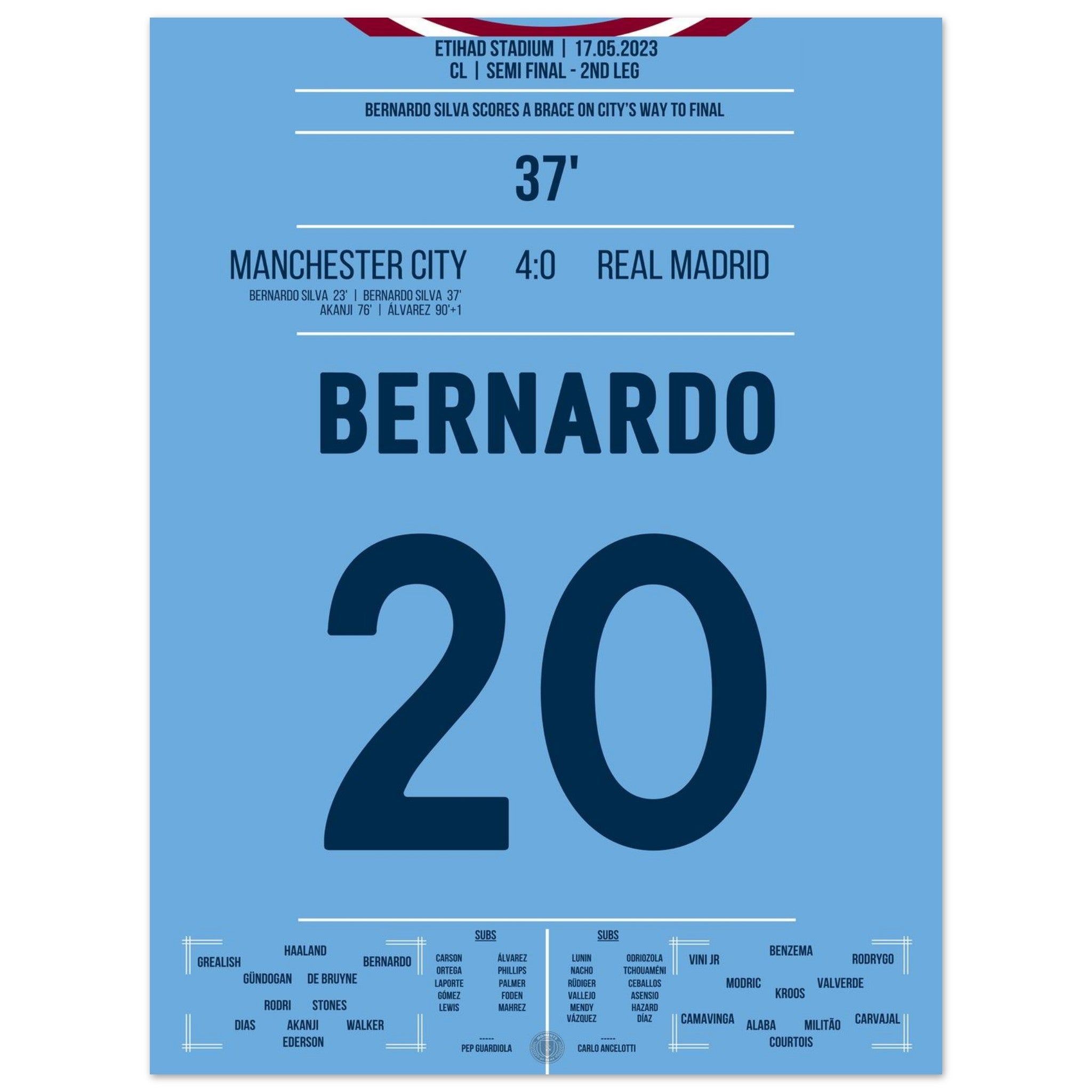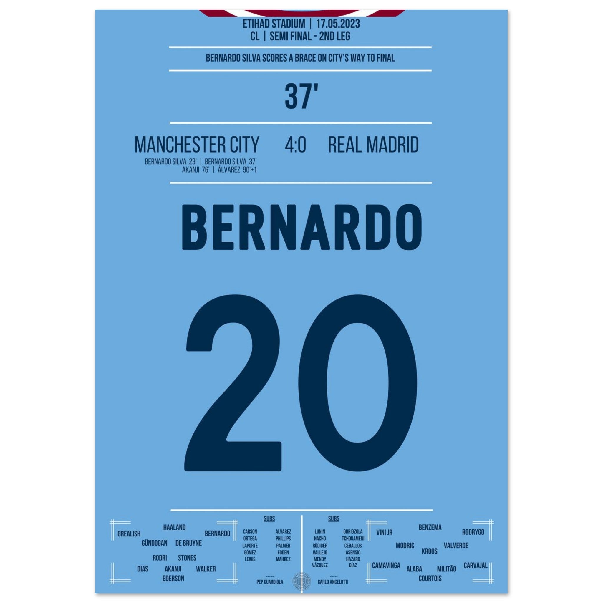 Bernardo scores a double to propel City towards the CL final.