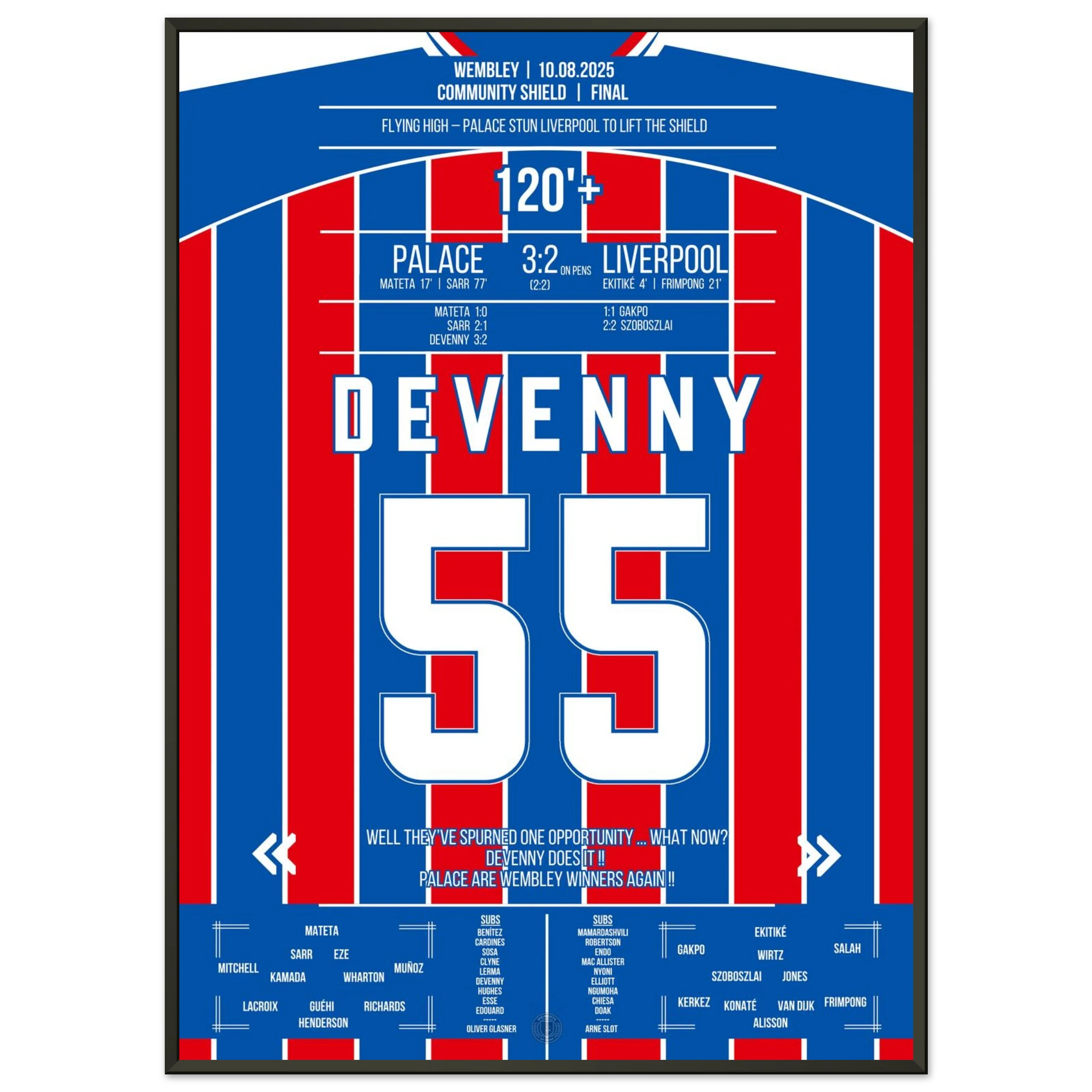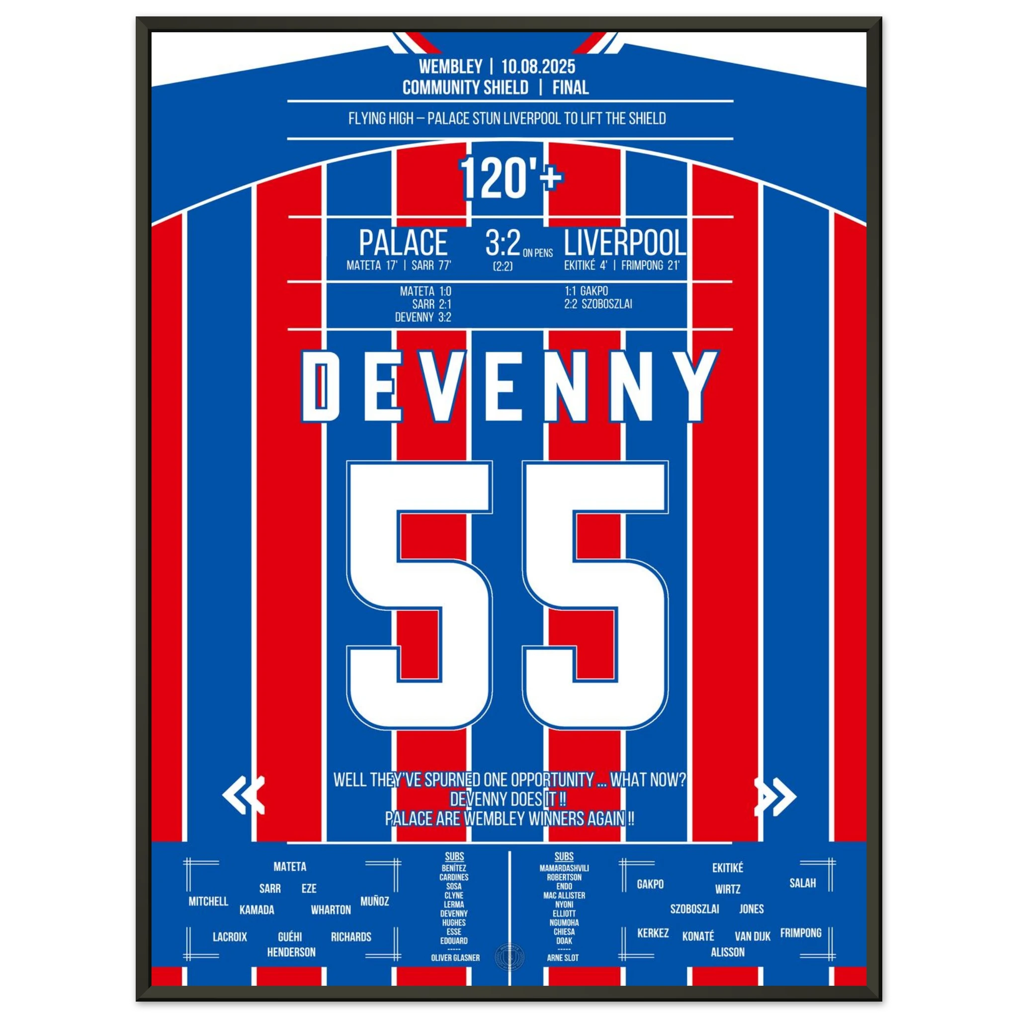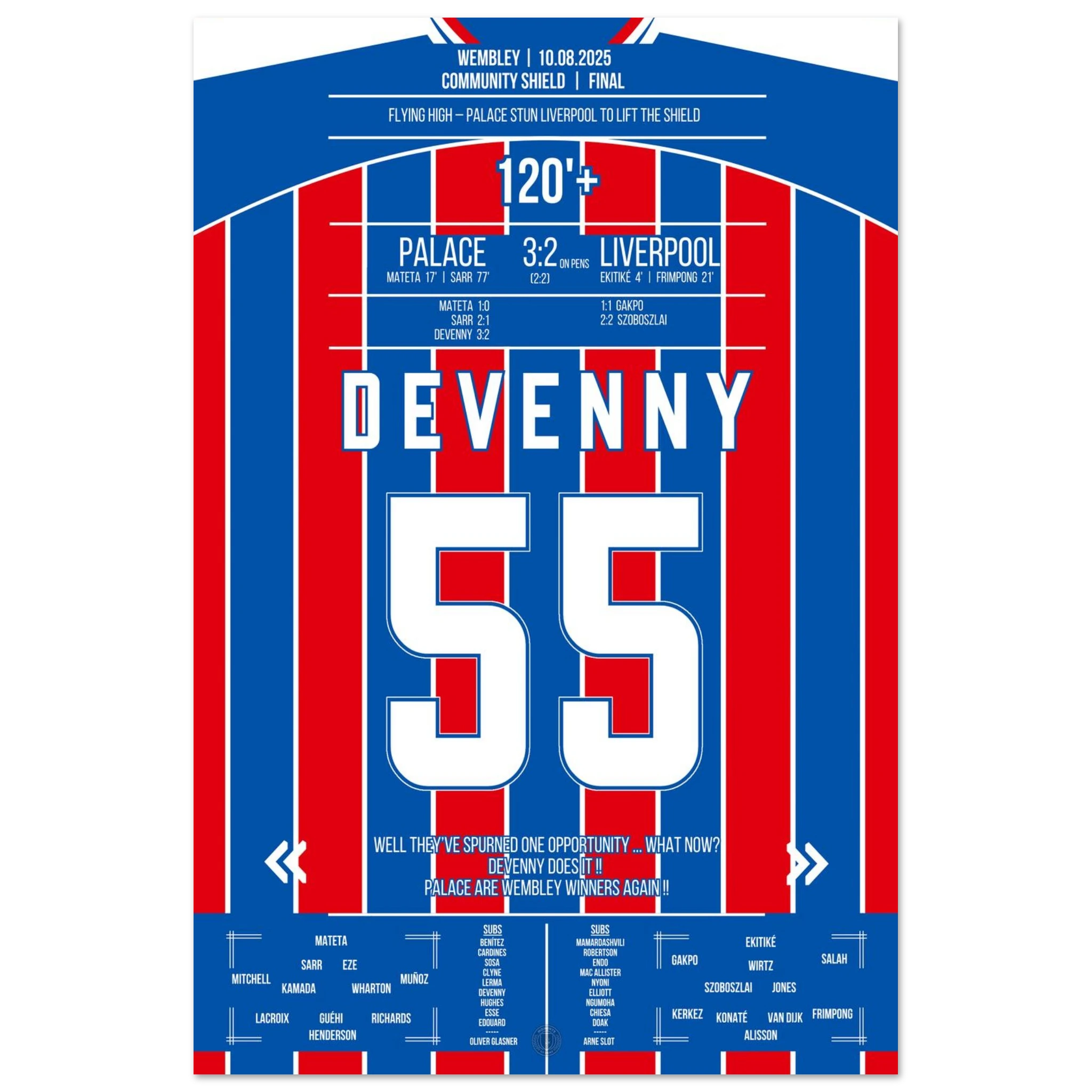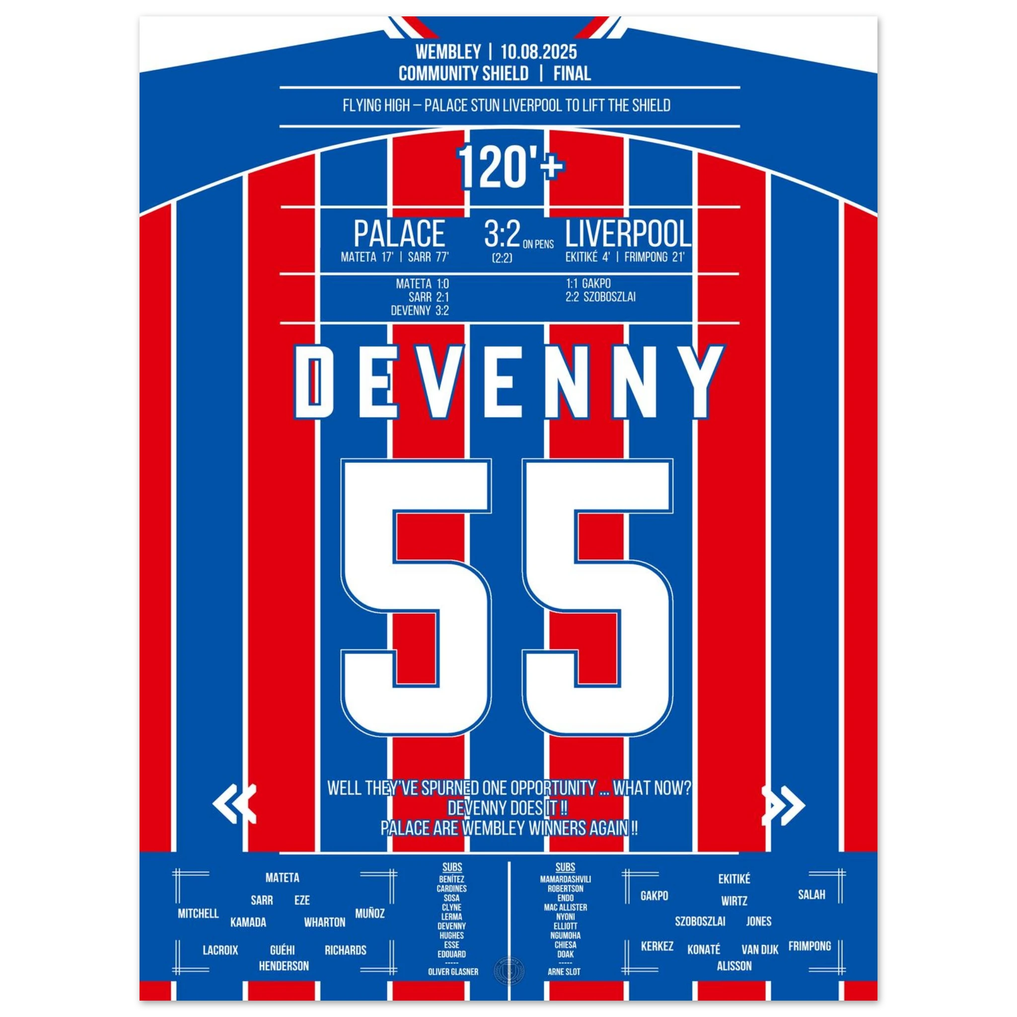 August 10, 2025 – Devenny ice-cold: Palace clinches the Shield from the spot