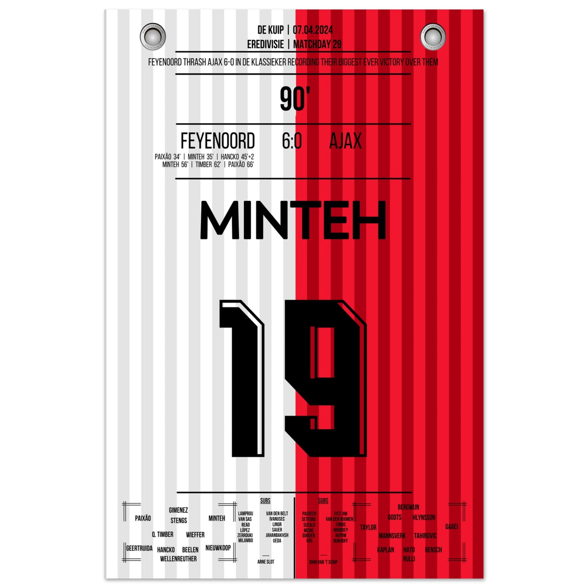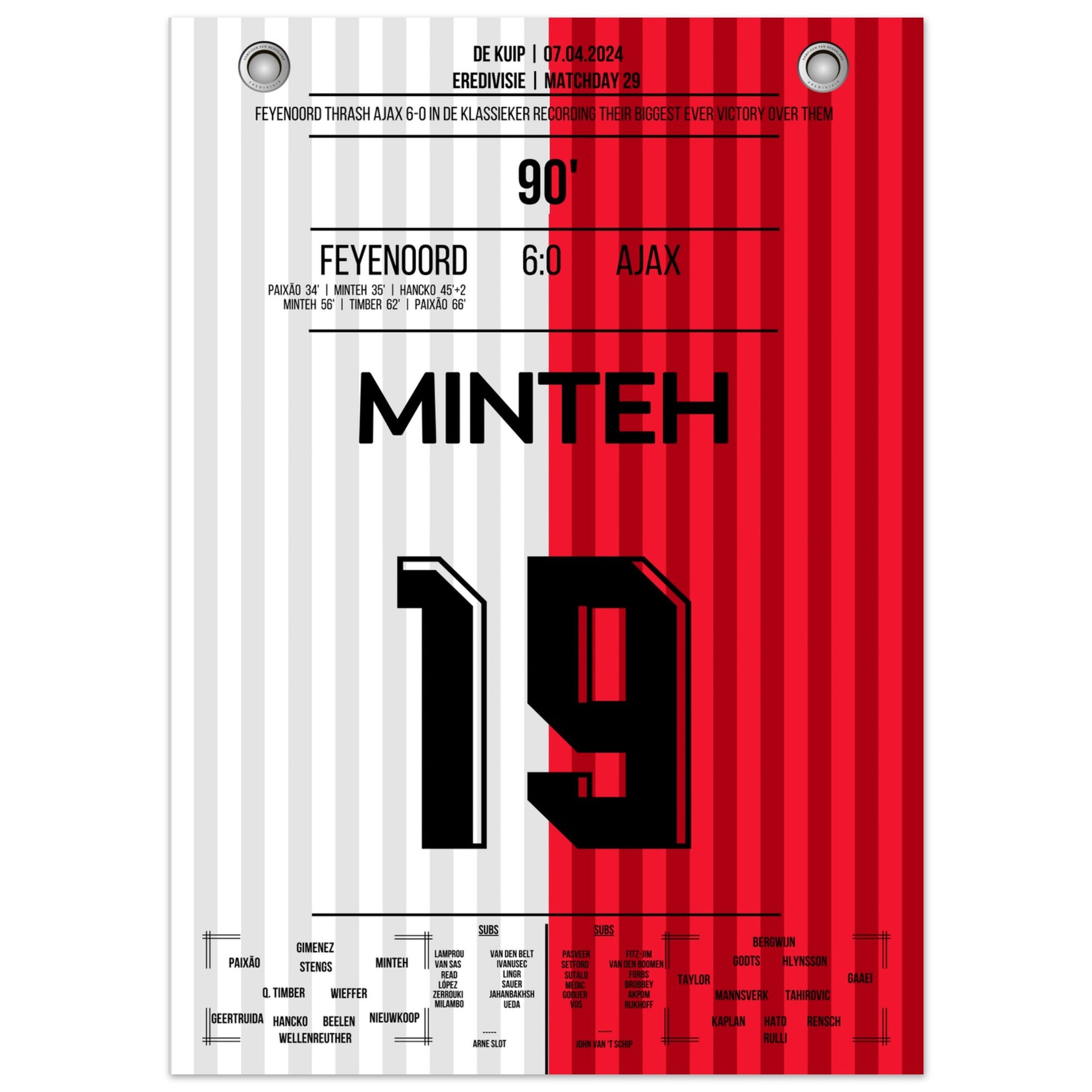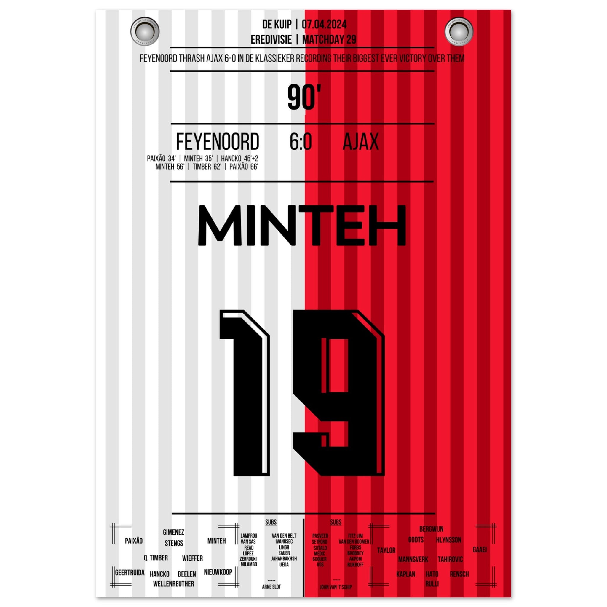 Feyenoord dismantles Ajax in the highest Klassieker victory in history.