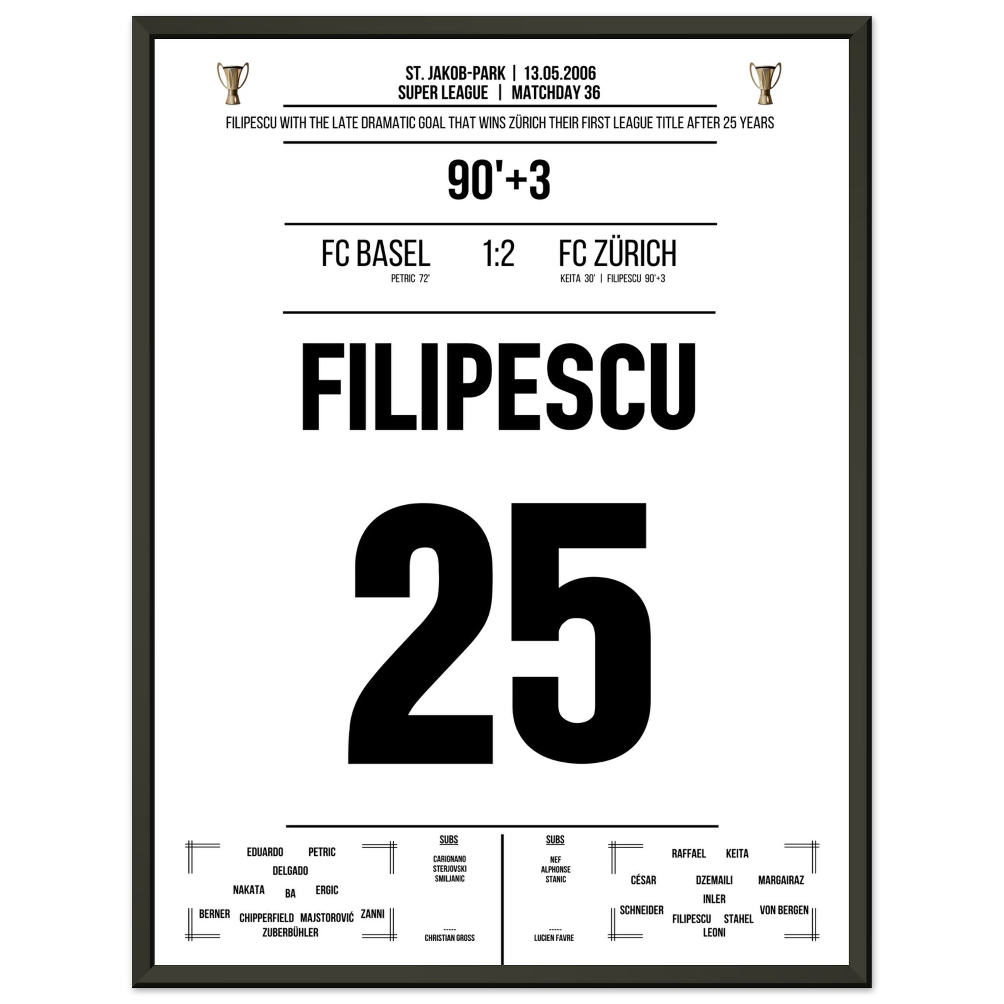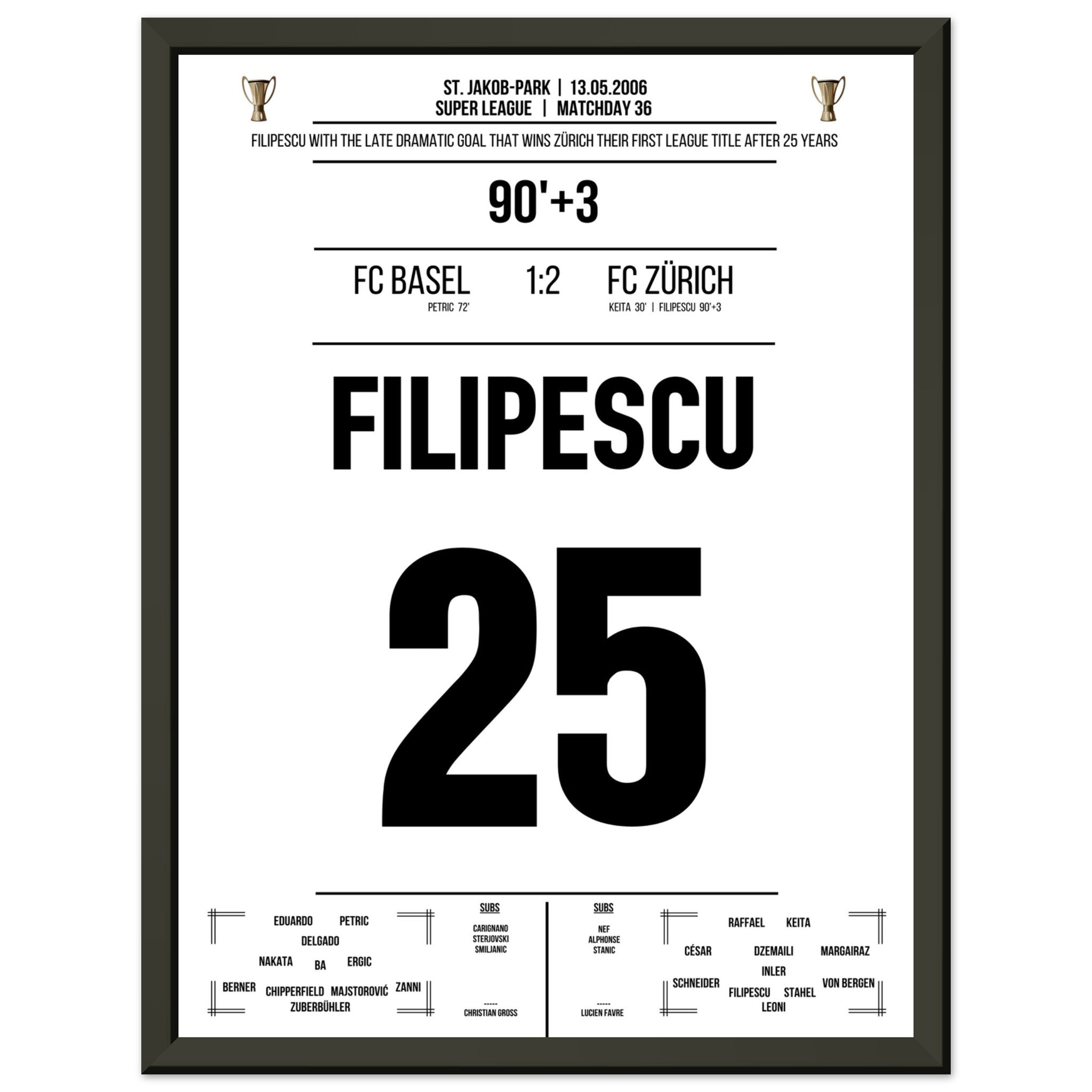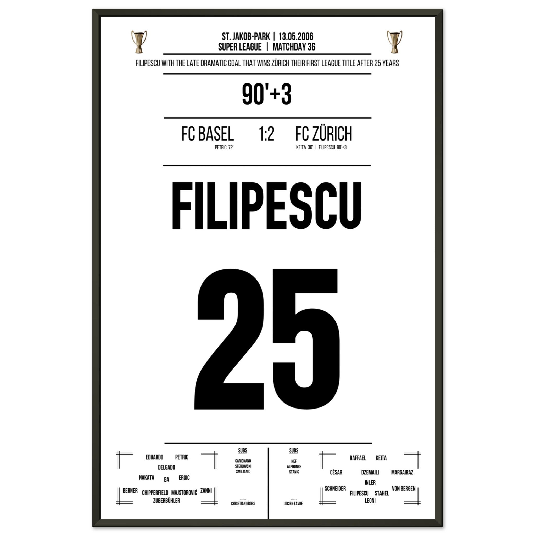 Filipescu scores the FC Zurich's first championship after 25 years.