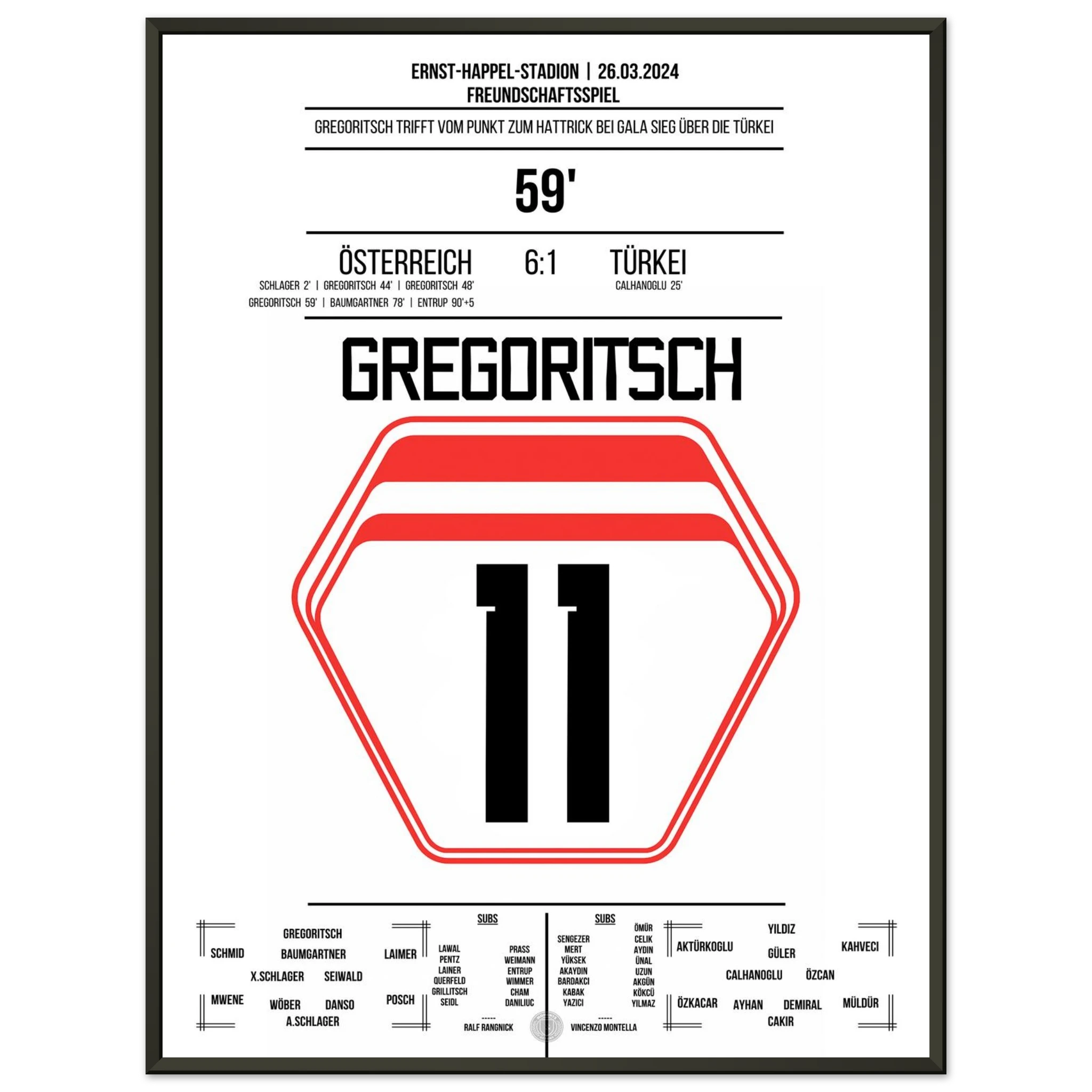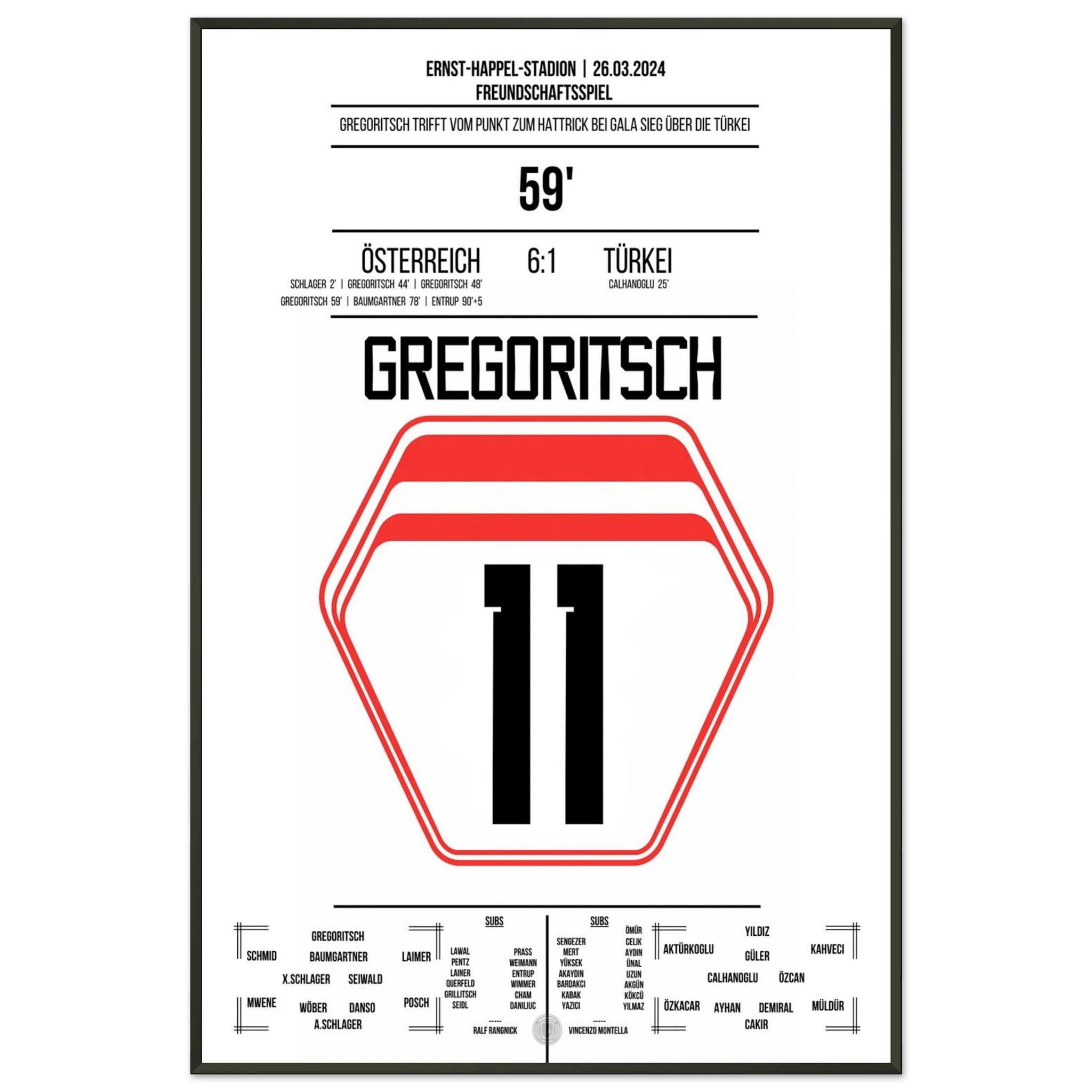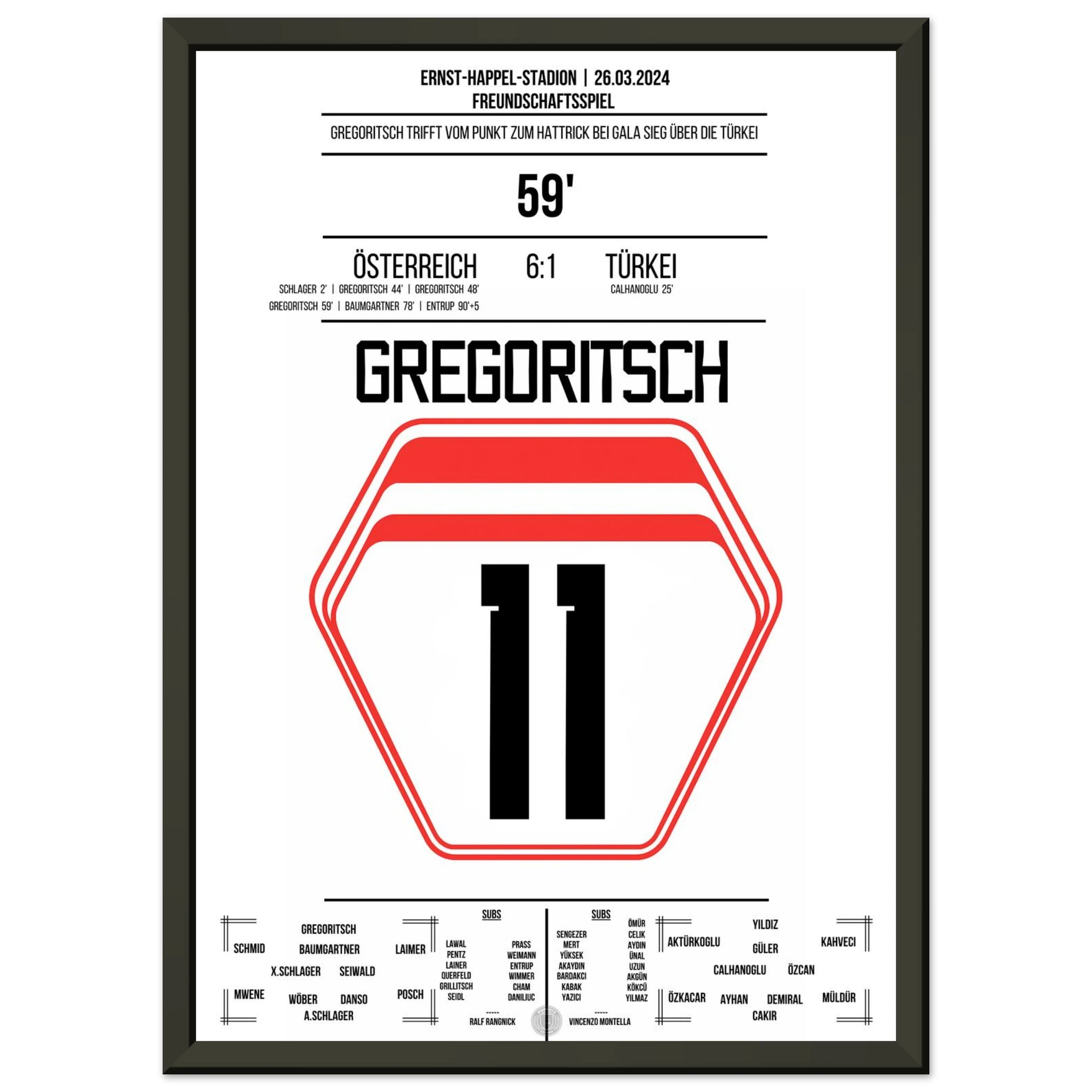<tc>Gregoritsch's hat trick in the 6-1 victory against Turkey </tc>