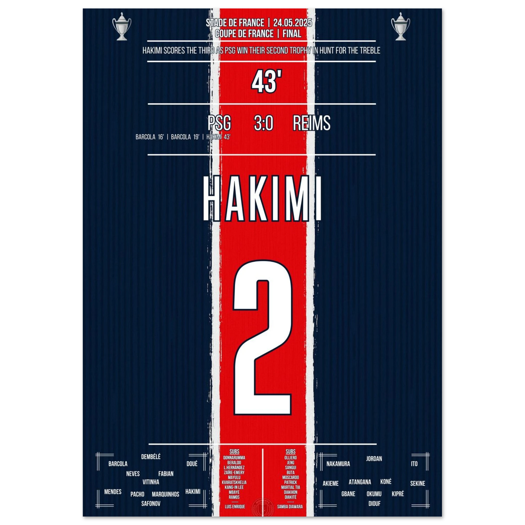 Paris krönt seine Saison mit einem dominanten 3:0-Sieg über Reims im französischen Pokalfinale – und sichert sich damit den nächsten Titel für die Vitrine im Prinzenpark.