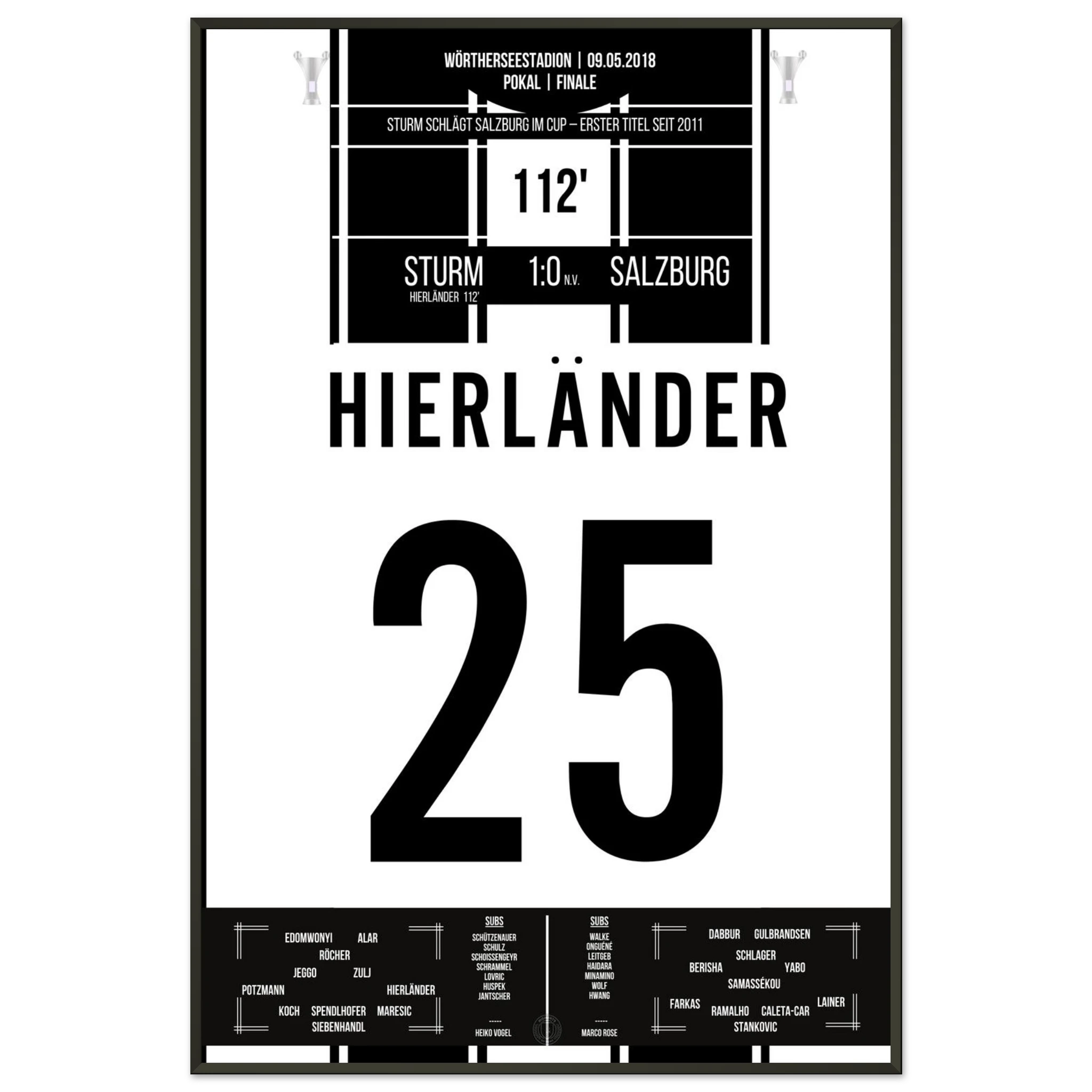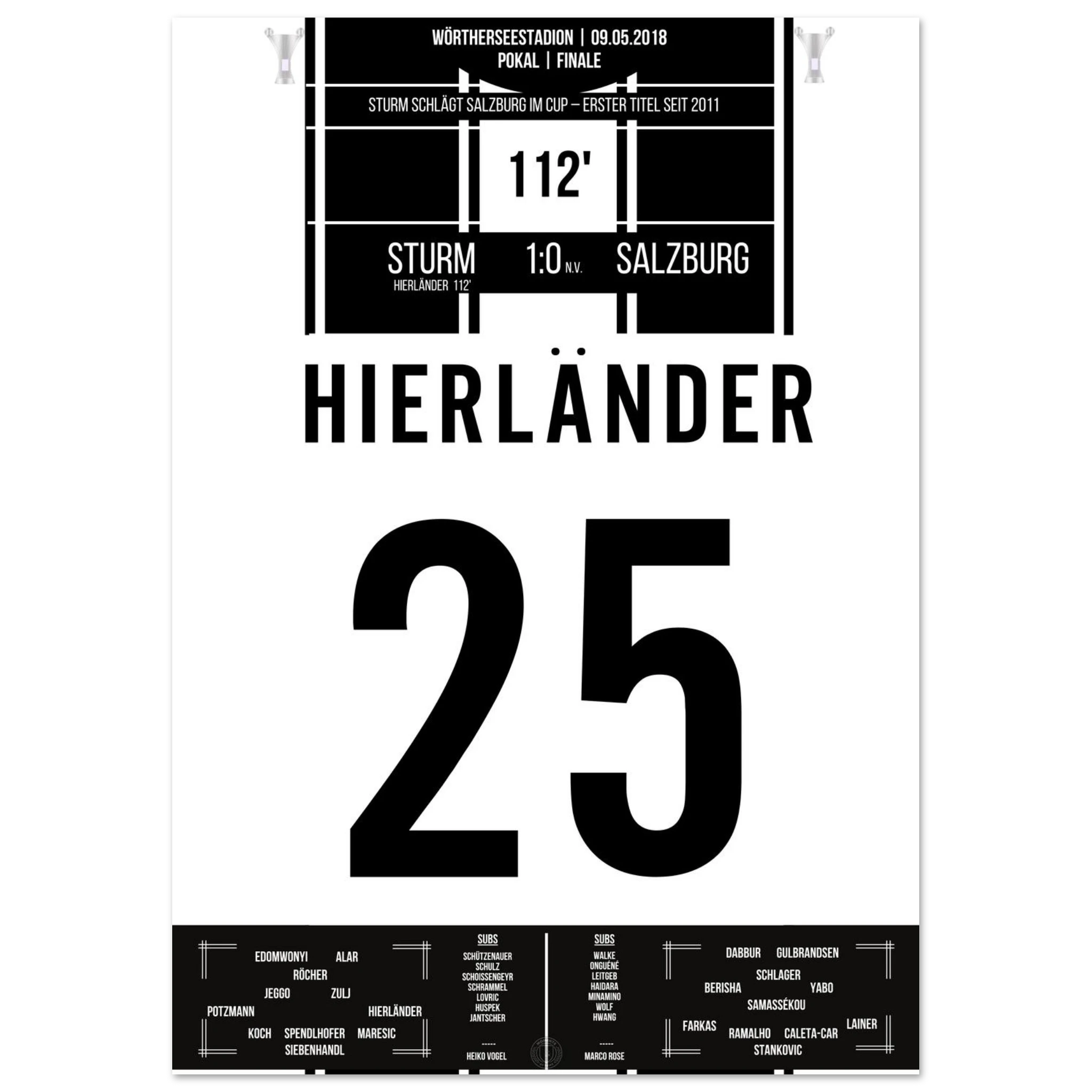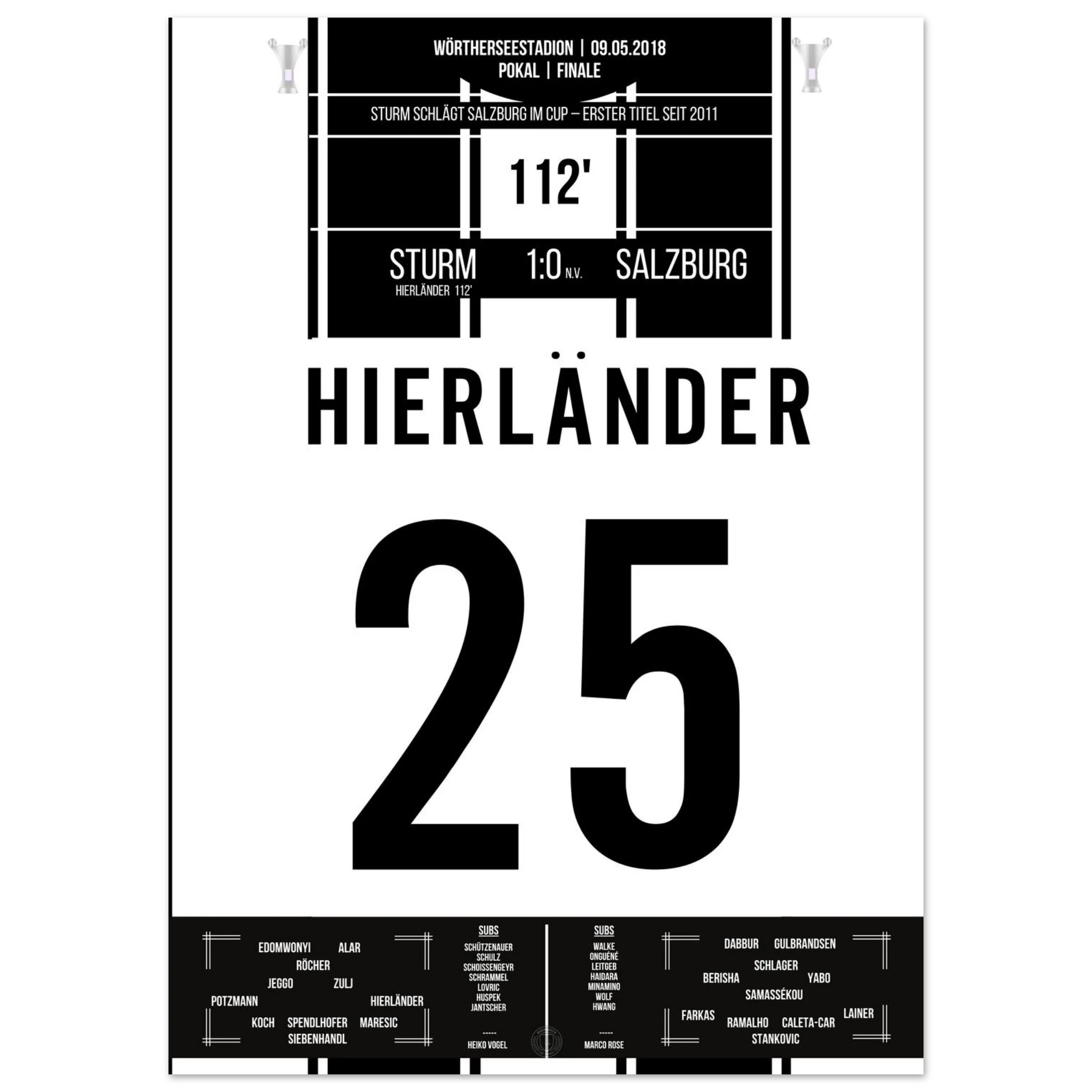 Im Cupfinale gegen Serienmeister Salzburg wächst Sturm über sich hinaus. In der Verlängerung ist es Stefan Hierländer, der mit einem wuchtigen Kopfball das 1:0 markiert – und Sturm damit zum ersten Cupsieg seit 2010 führt. Ein Abend für die Vereinsgeschichte.