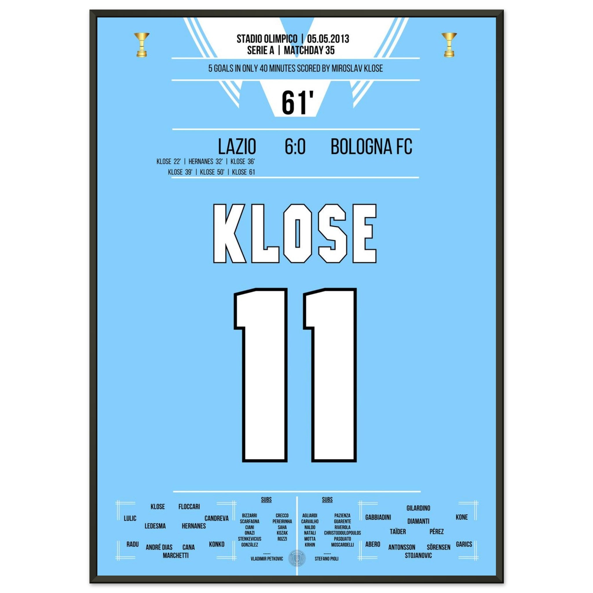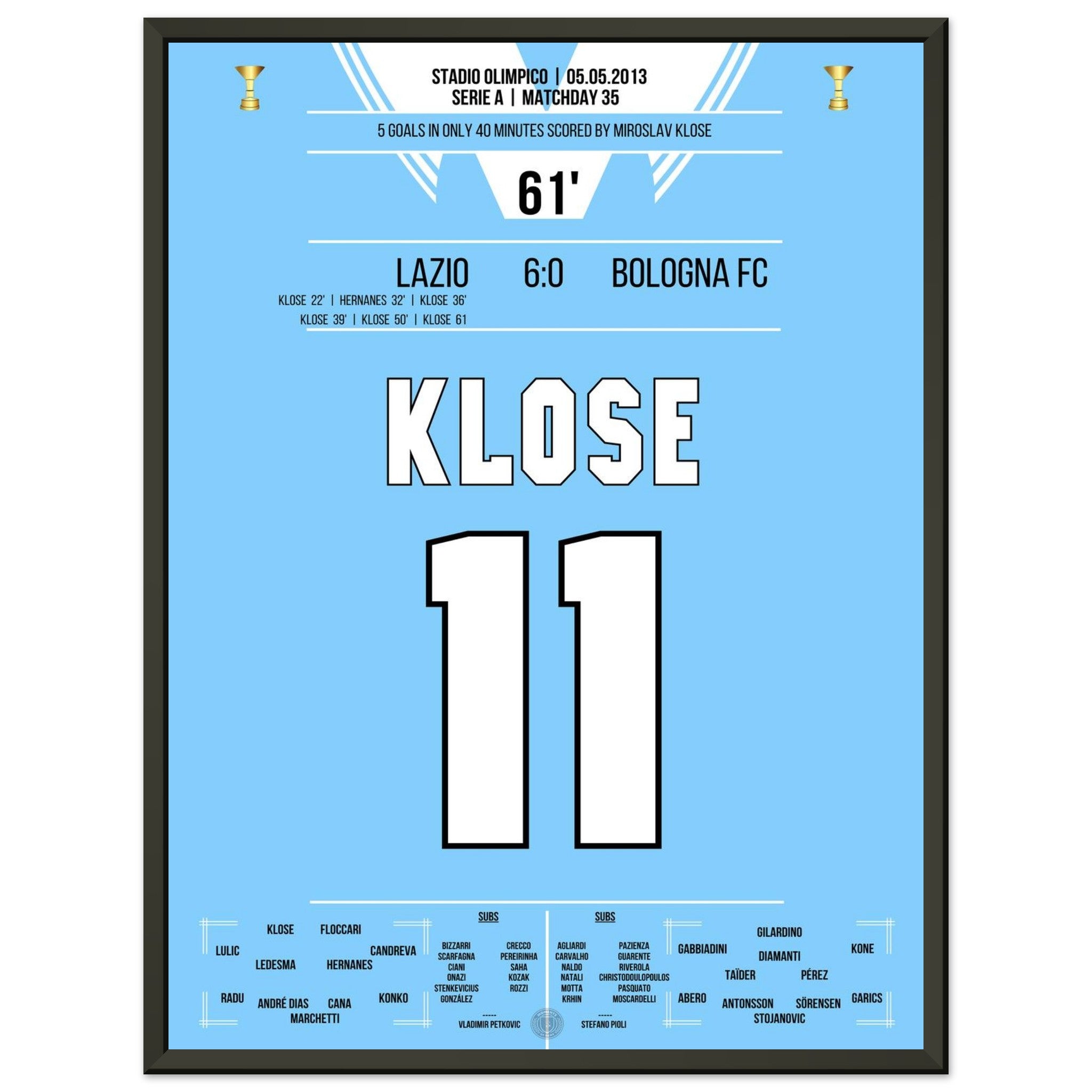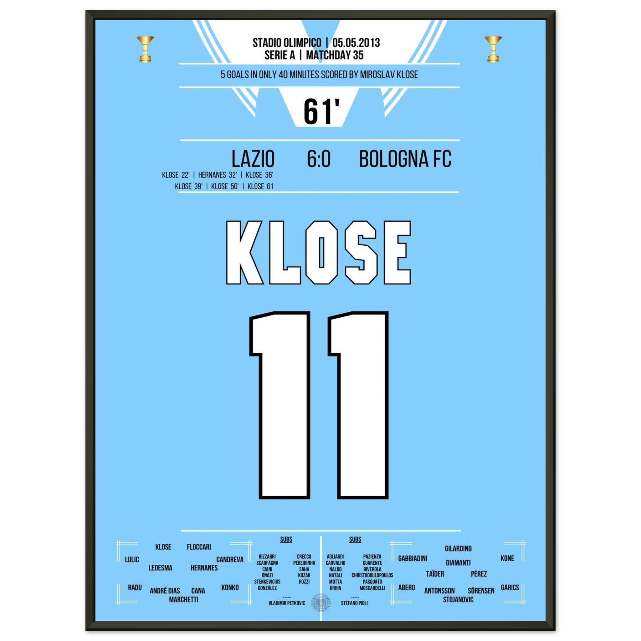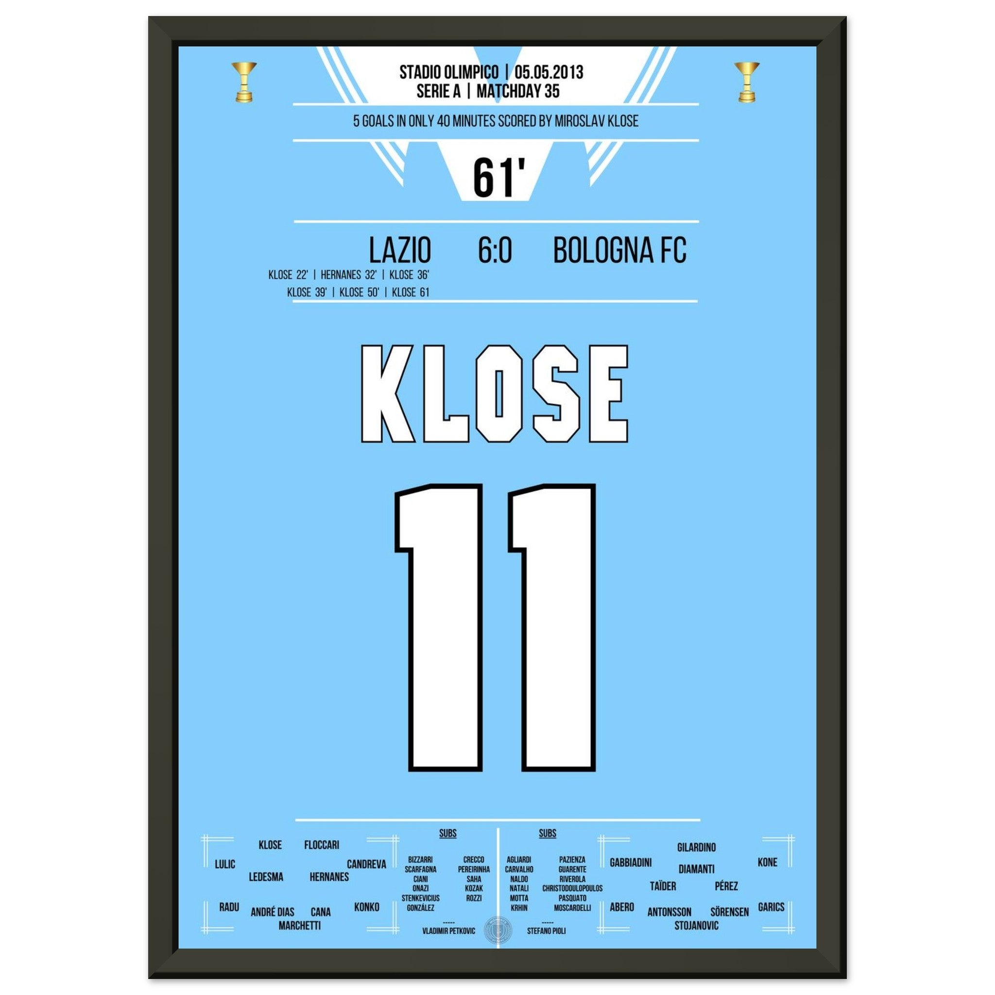 Klose scores a historic five-goal haul against Bologna single-handedly.